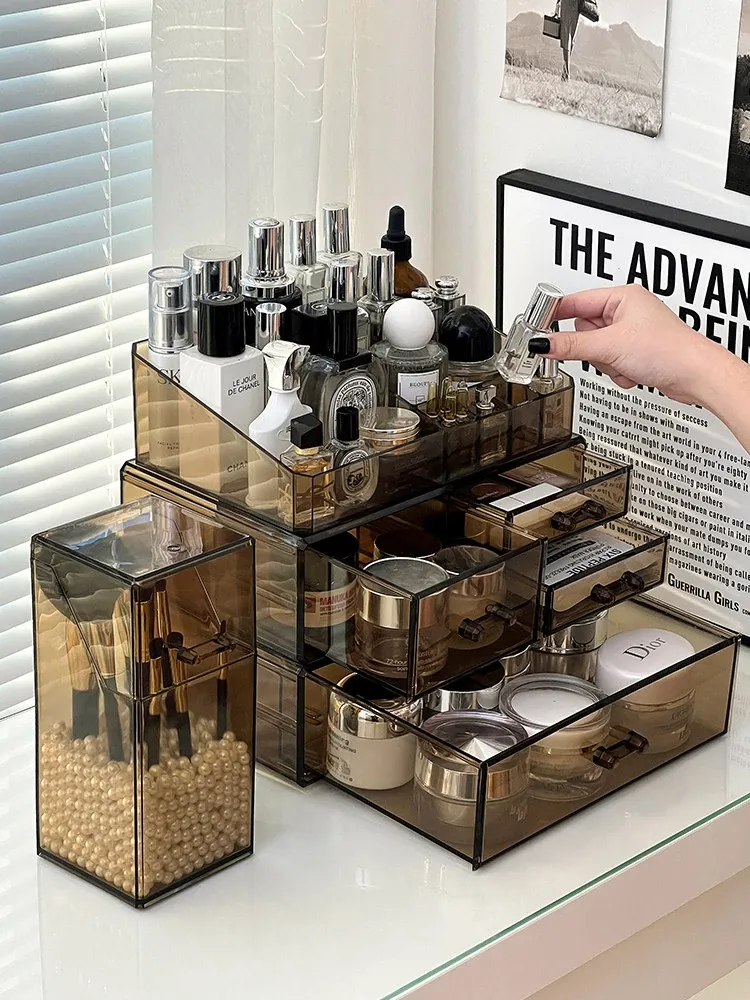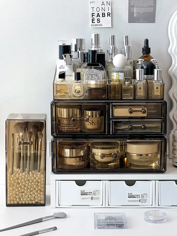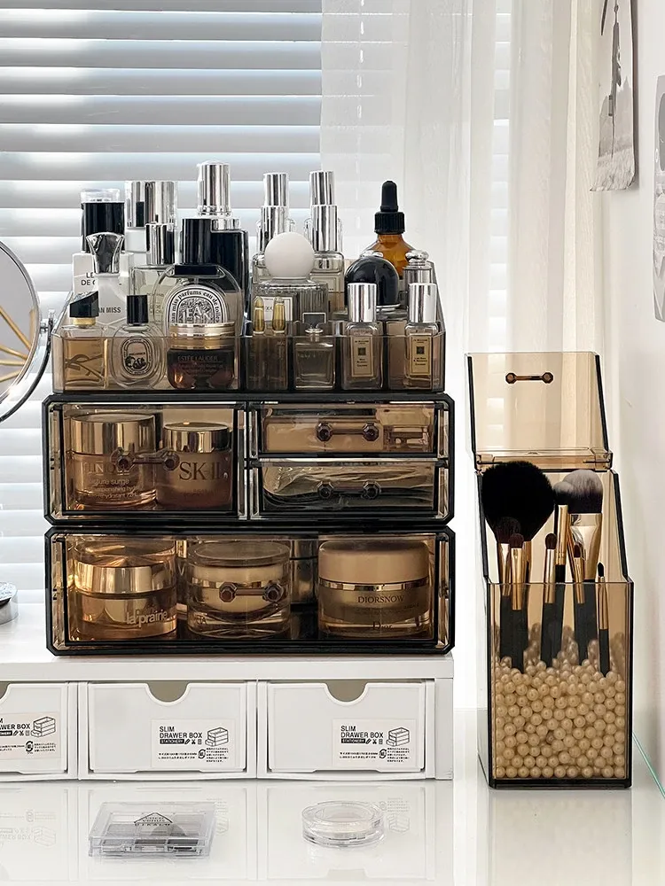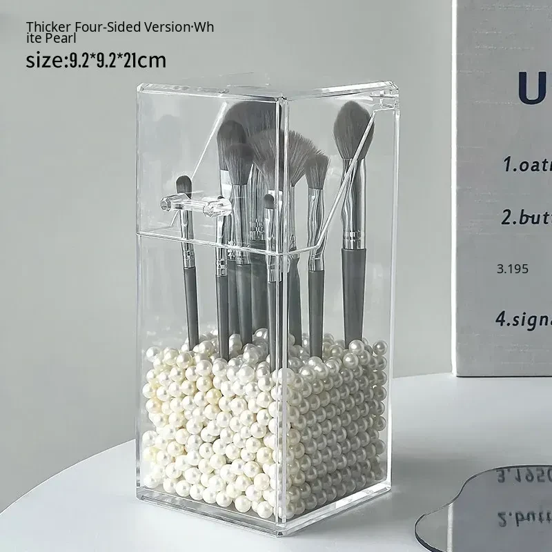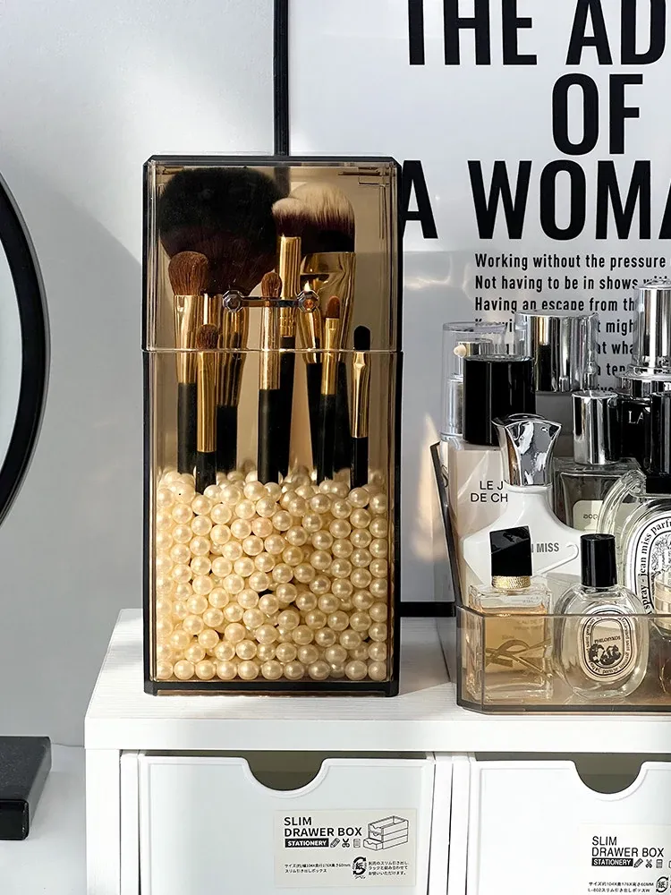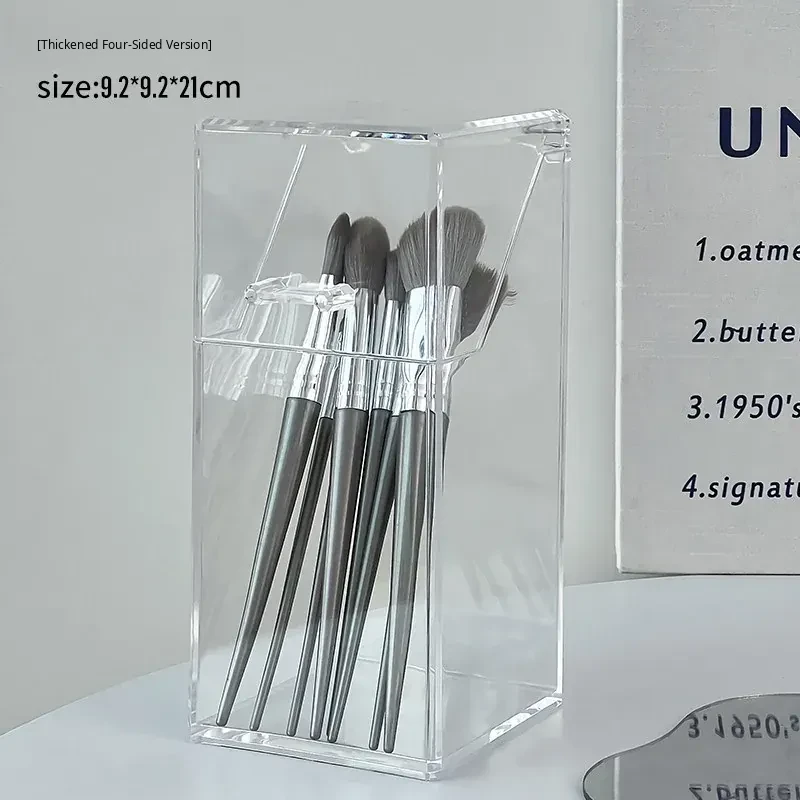 Elegant Desktop Brush Holder - Premium Cosmetic Organizer Box with Lid, Dustproof Makeup Storage for Lipsticks, Lip Glaze, and Eyebrow Pencils - Perfect Vanity Accessory!