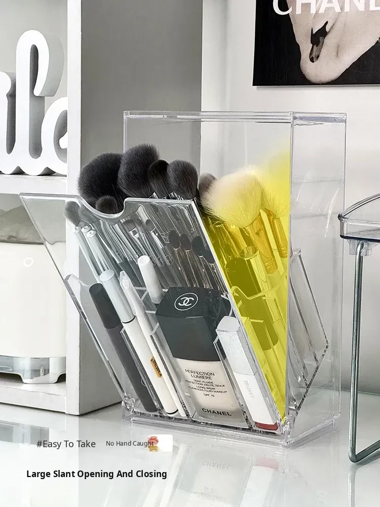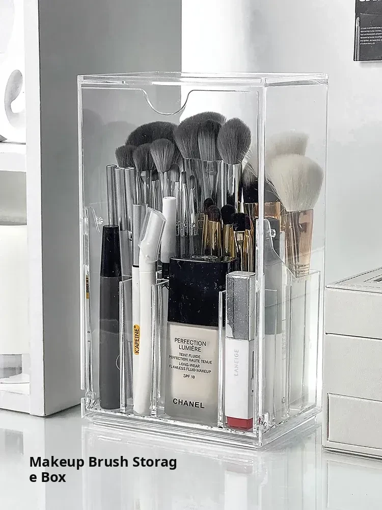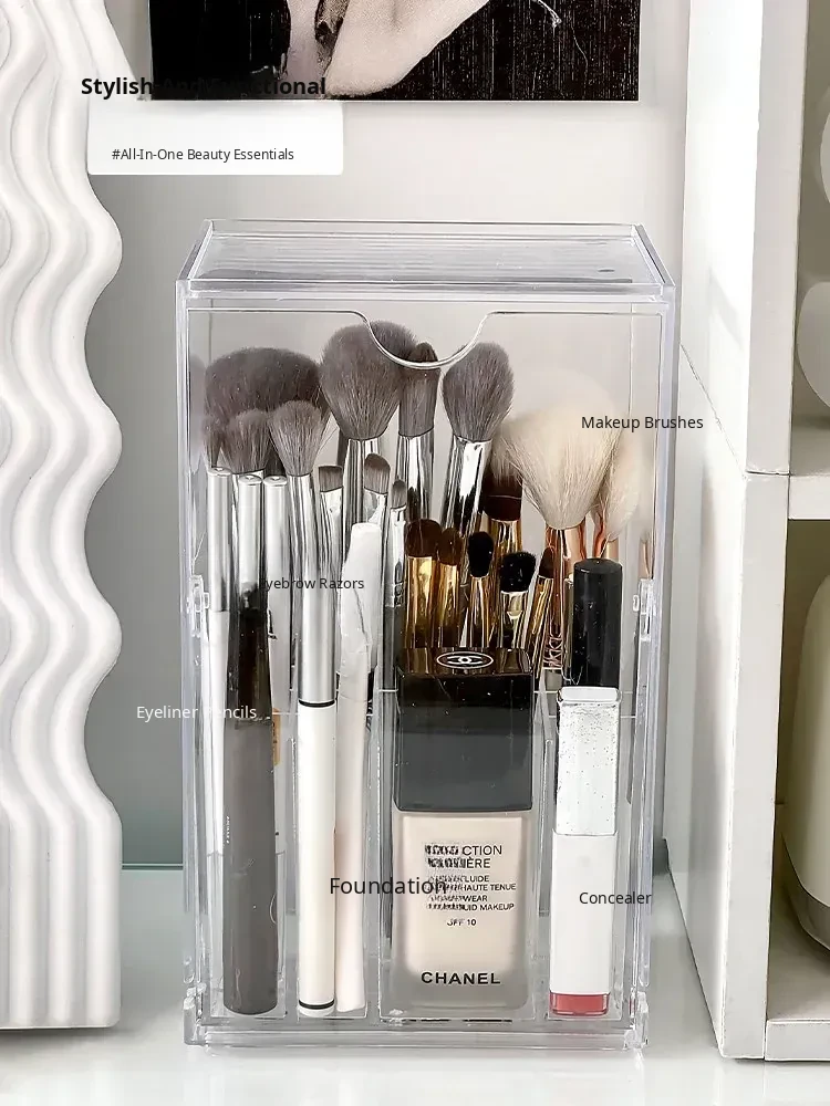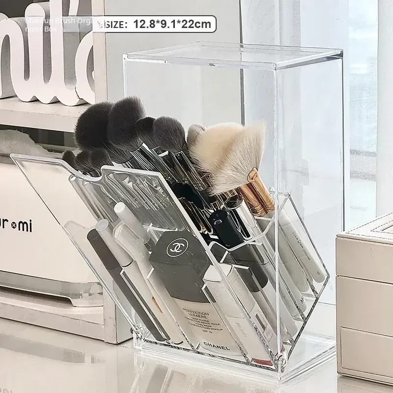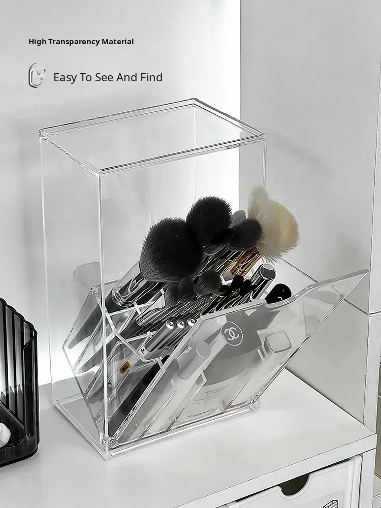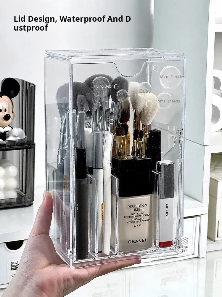 Elegant Desktop Makeup Brush Organizer - Dustproof Cosmetic Storage Box with Dividers for Lipsticks and Eyeliners - Perfect Vanity Brush Holder