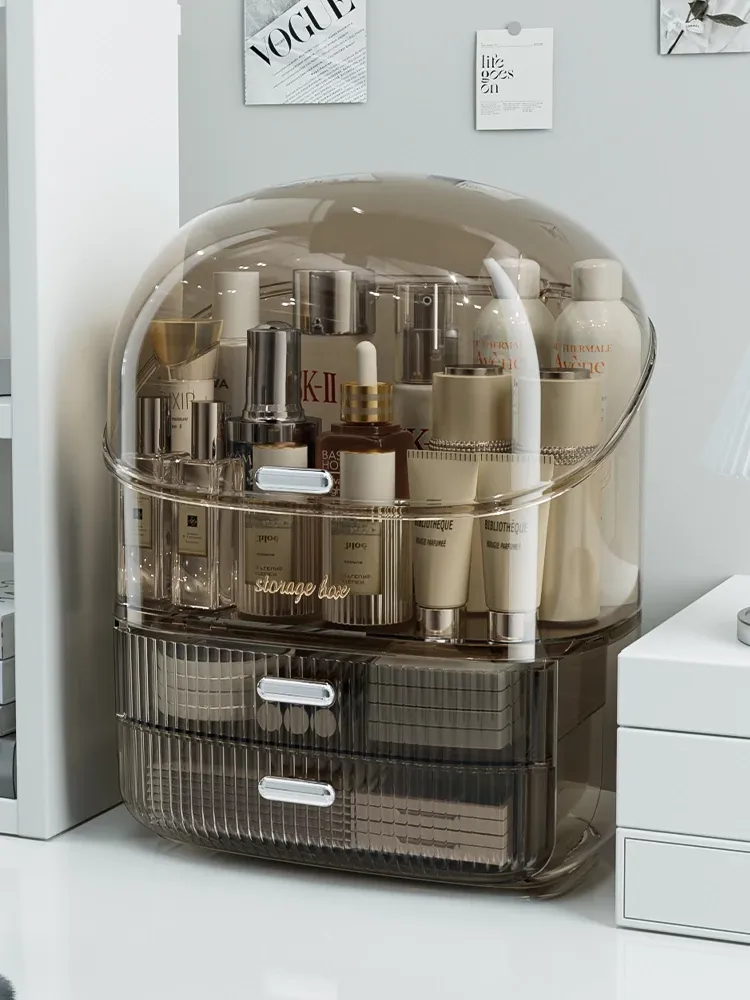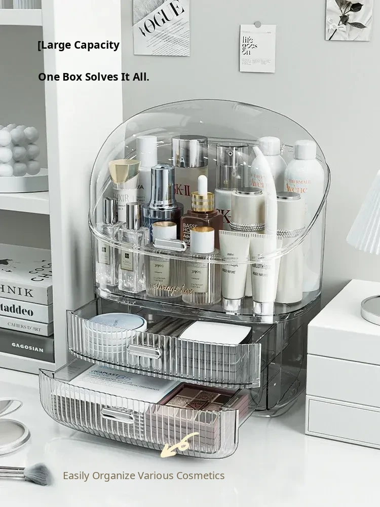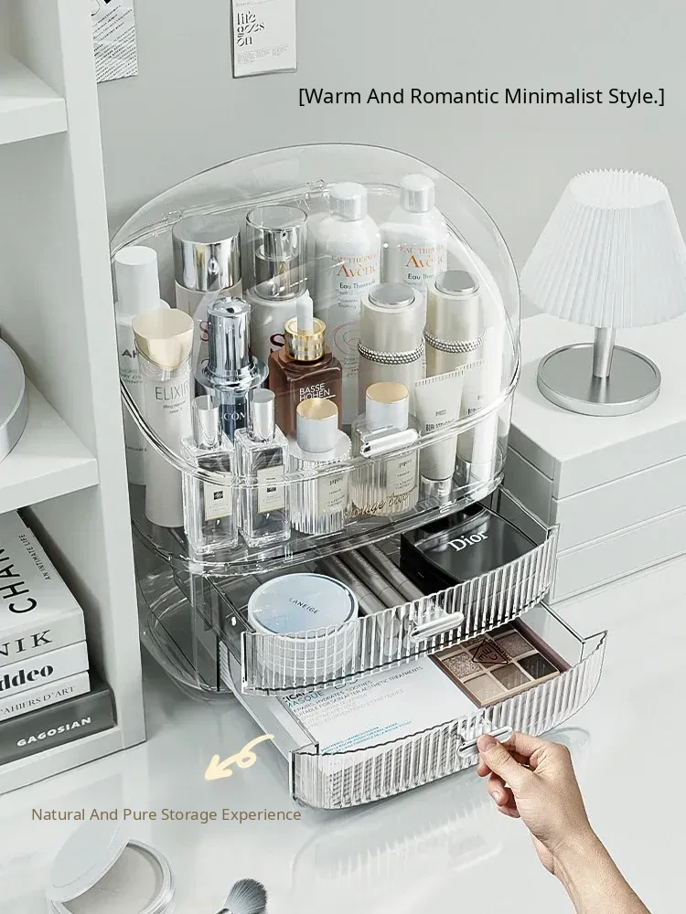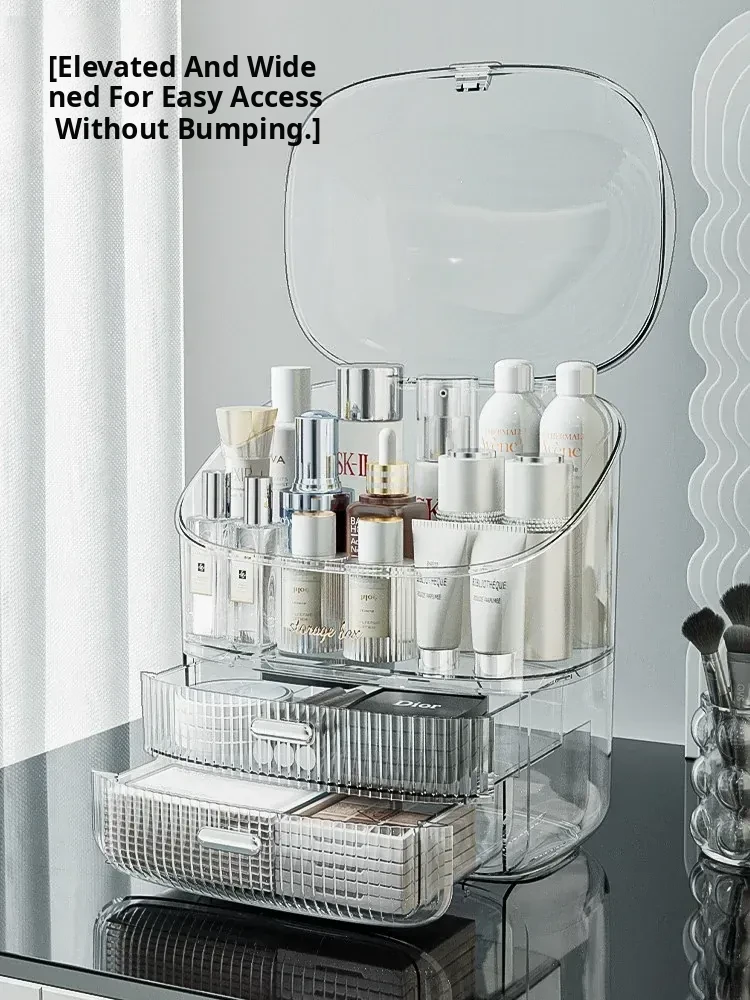 Elegant Desktop Makeup Organizer – Premium Acrylic Vanity Storage Box for Skincare, Lipsticks, and Masks – Dustproof Cosmetic Display Stand