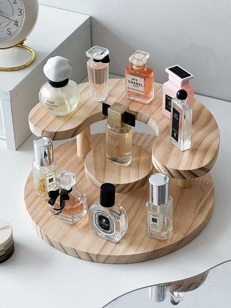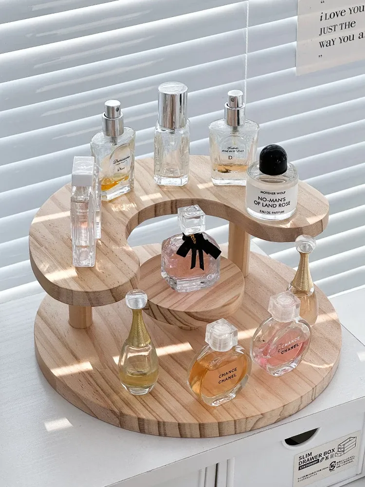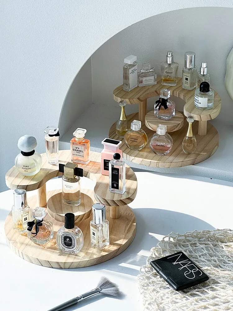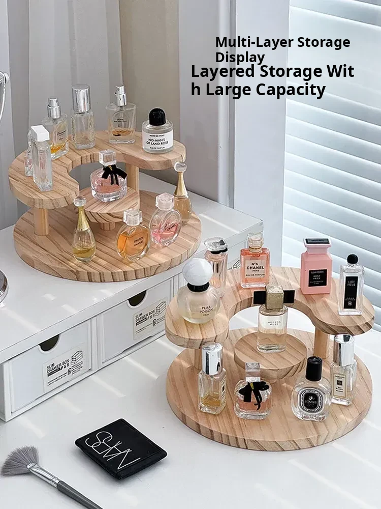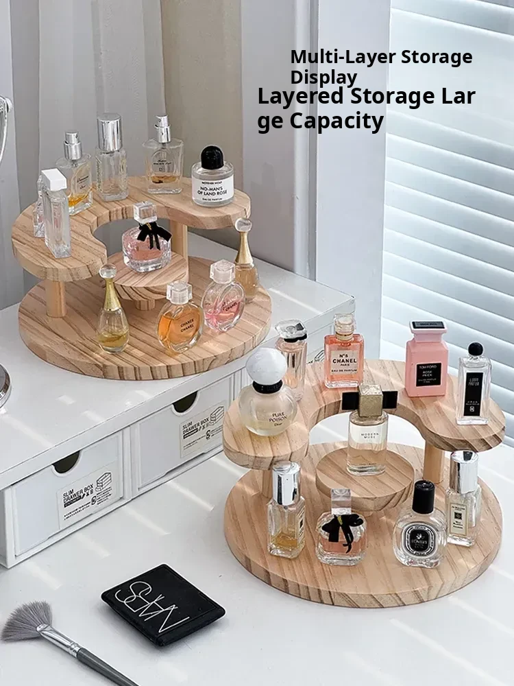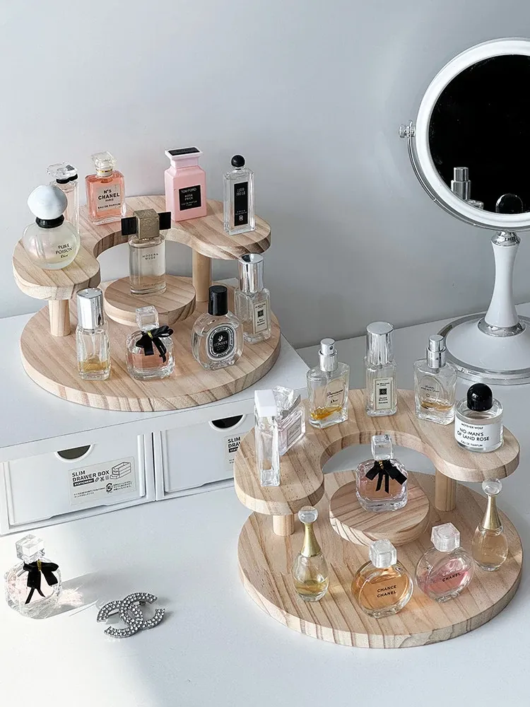 Elegant Desktop Perfume Organizer - Tiered Makeup Storage Tray for Home Use, Stylish Vanity Display for Skincare Products and Cosmetics