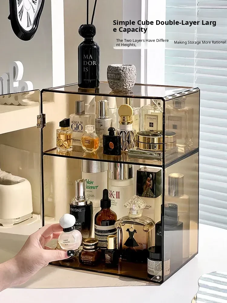 Elegant Dustproof Perfume Storage Box - Large Capacity Acrylic Makeup Organizer for Your Vanity - Stylish and Functional Desktop Solution