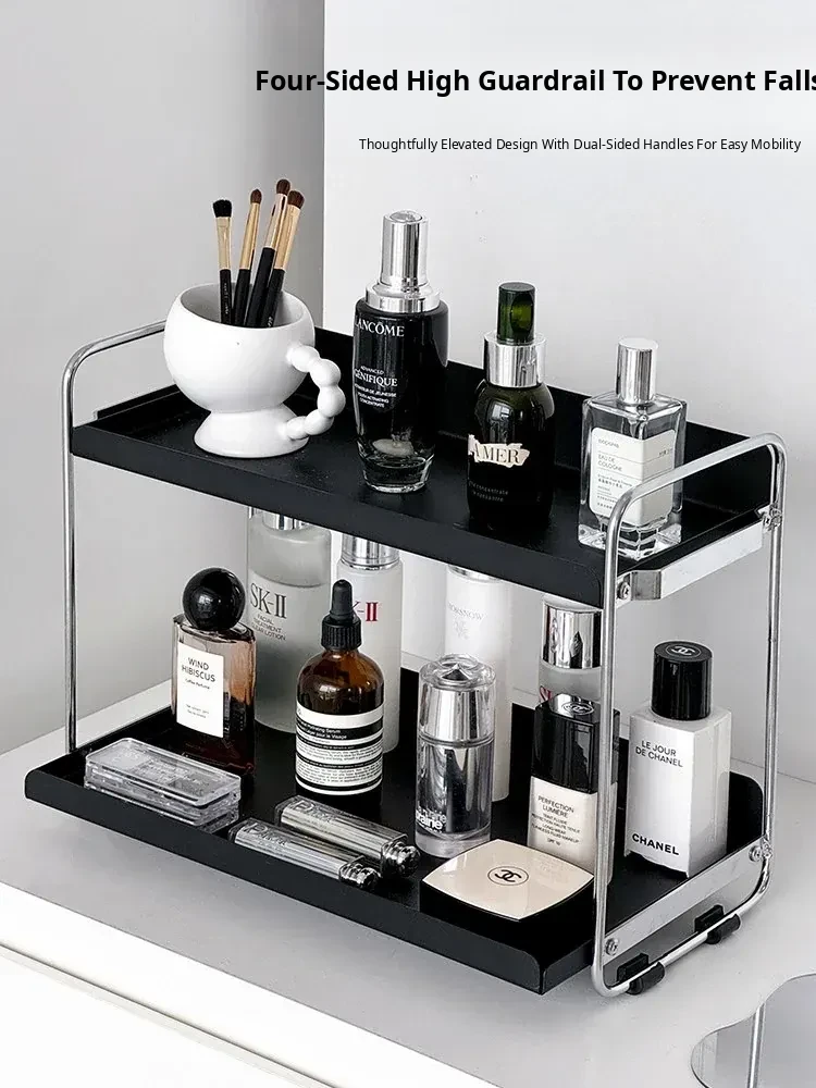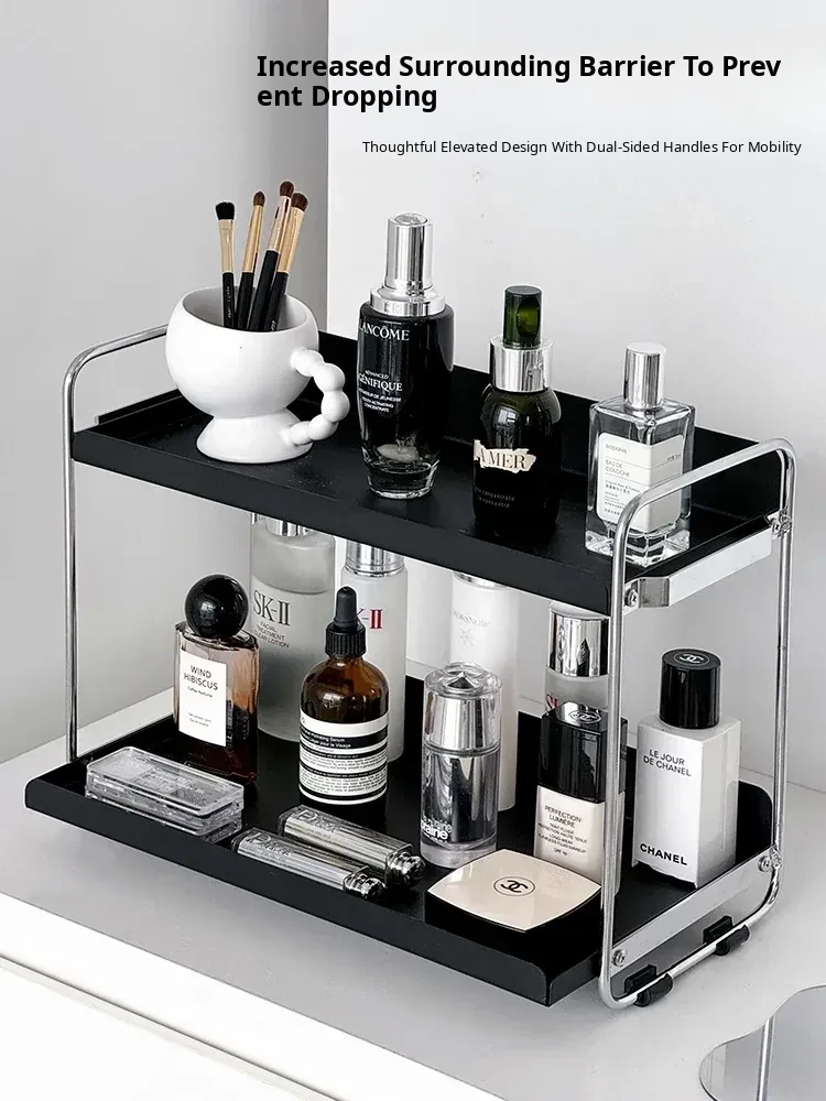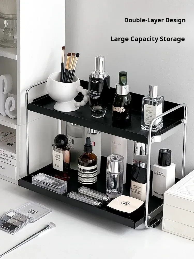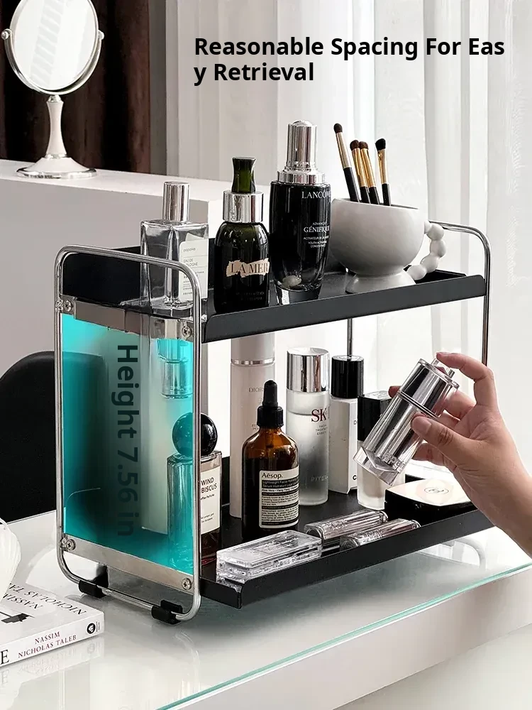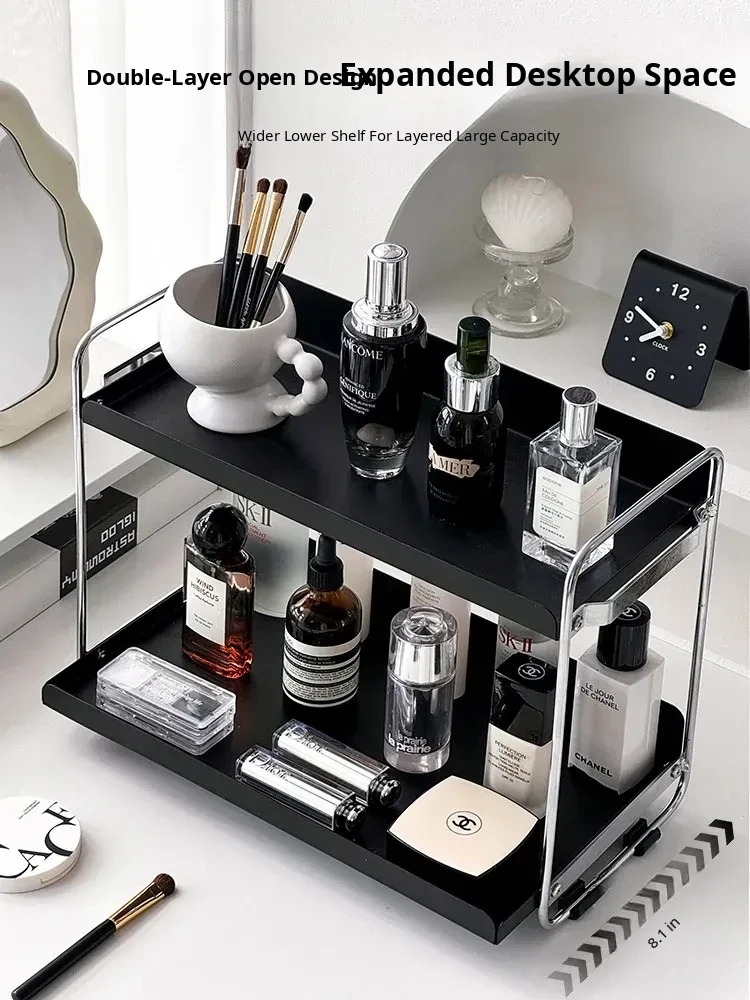 Elegant Iron Makeup Organizer - Minimalist Desktop Skincare Storage Box and Stylish Display Rack for Perfume and Accessories, Perfect for Entryways