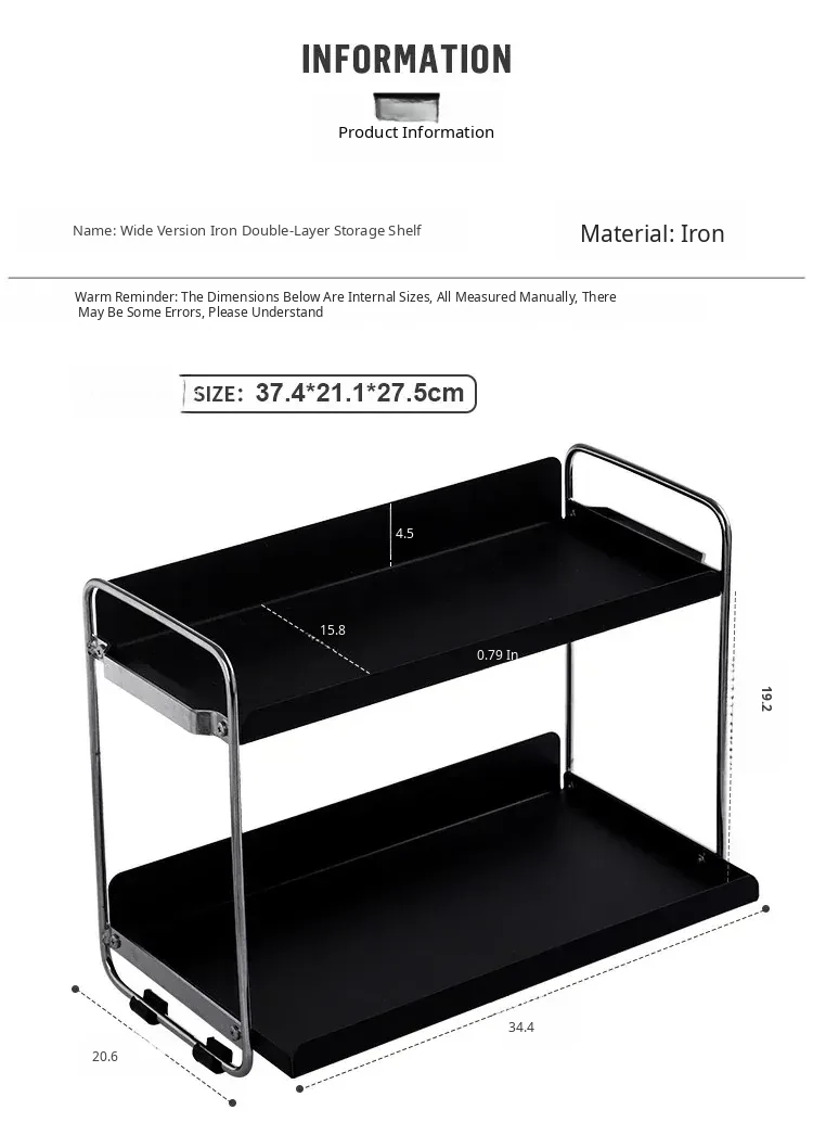 Upgraded and Widened Iron Black Double-Layer Storage Rack(Df–1348)