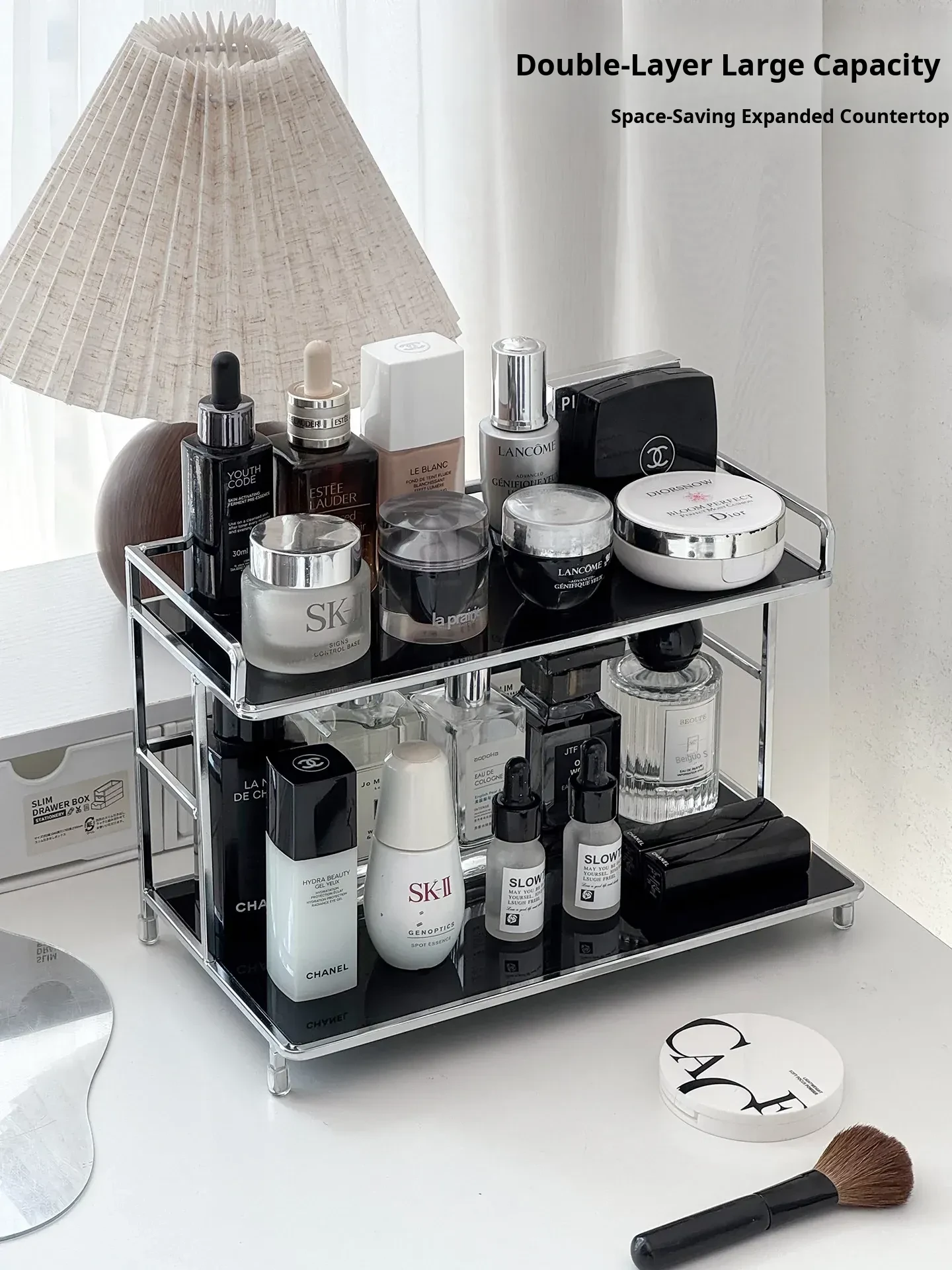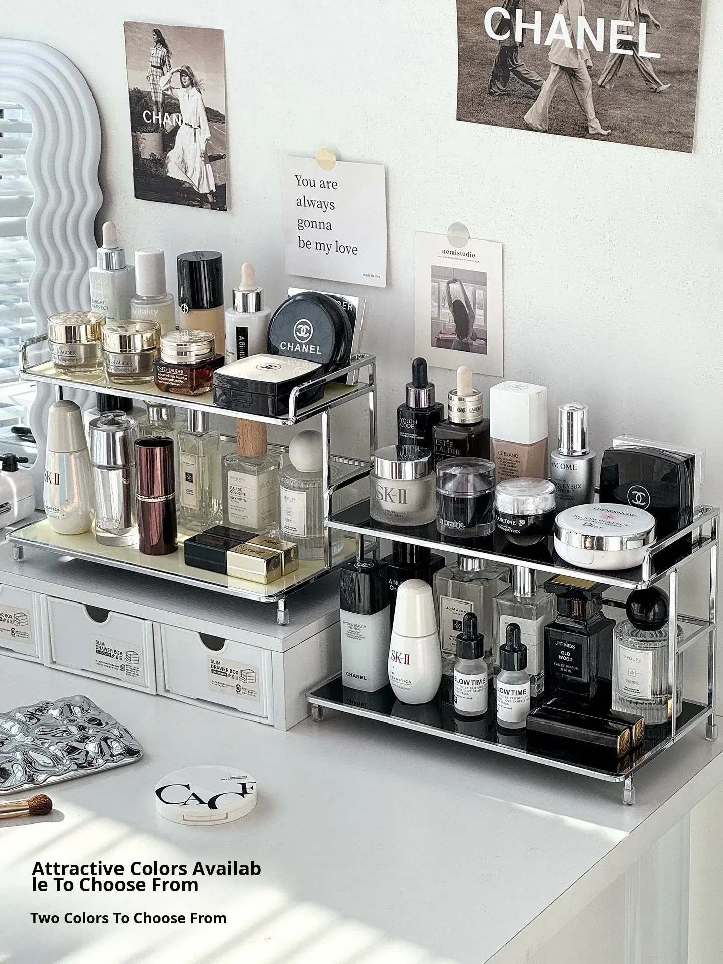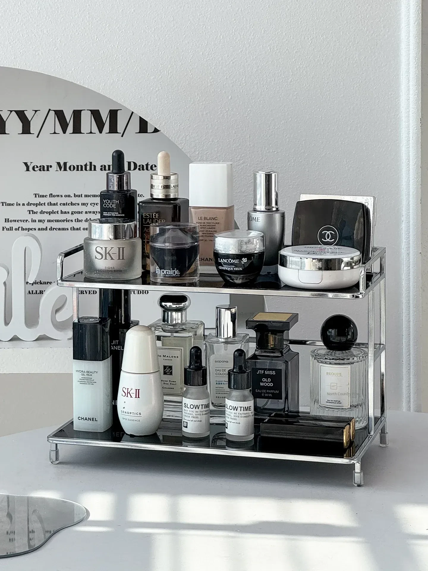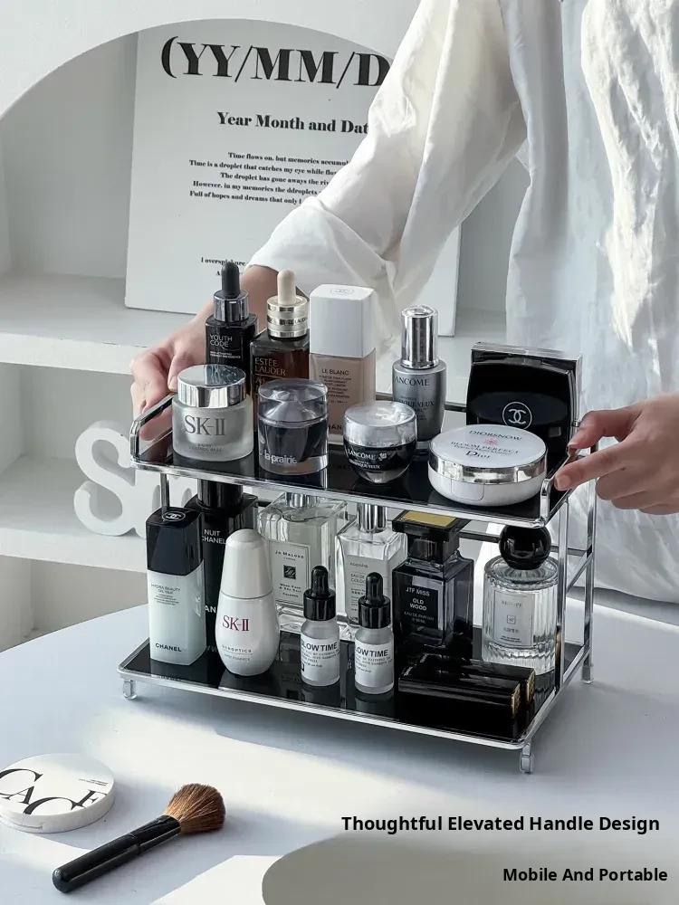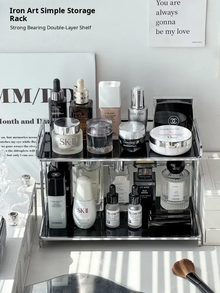 Elegant Iron Makeup Vanity Organizer - Premium Perfume Display Stand & Cosmetic Storage Box for Chic Bathroom Decor. Perfect for Stylish Grooming Stations!