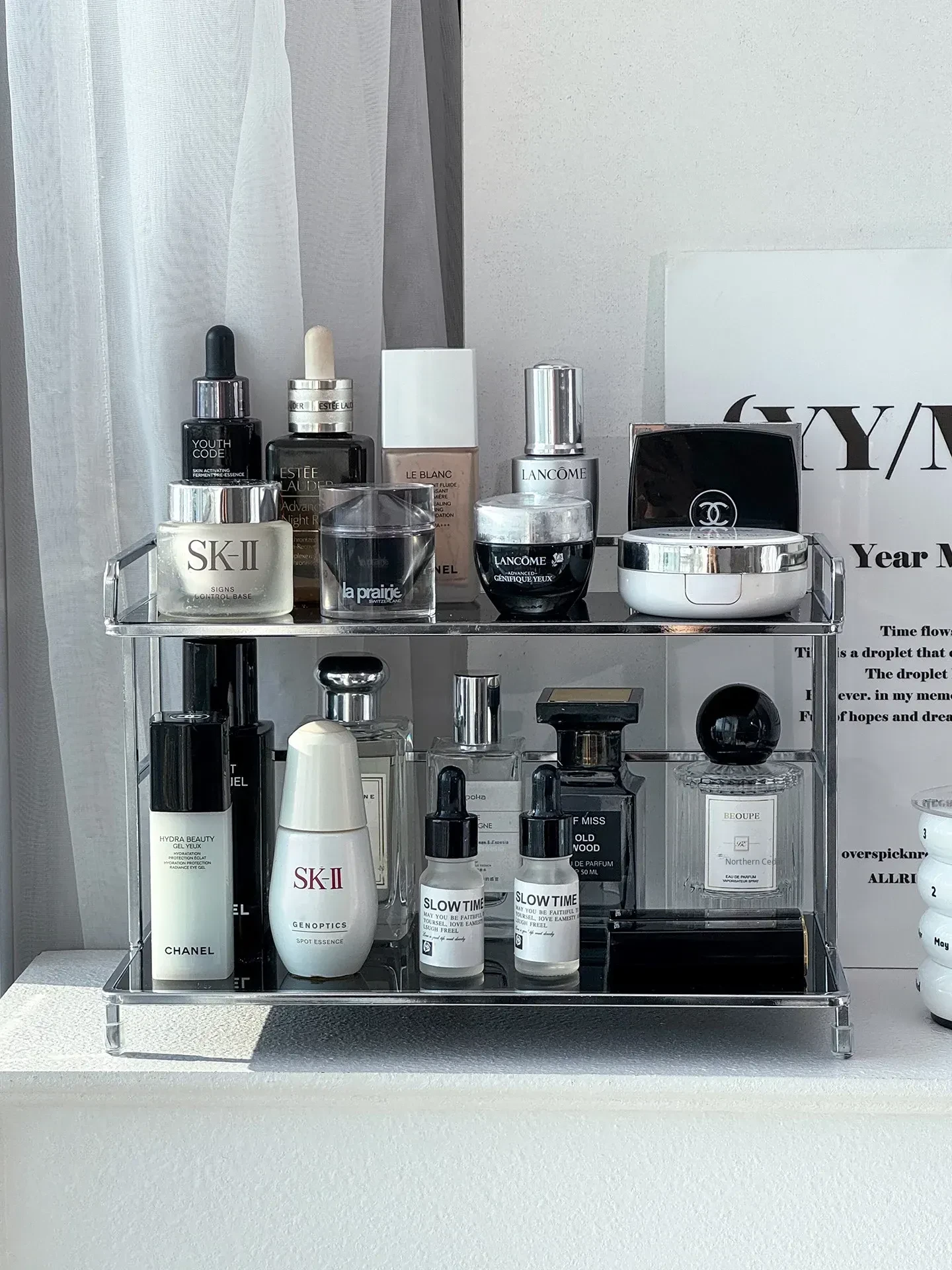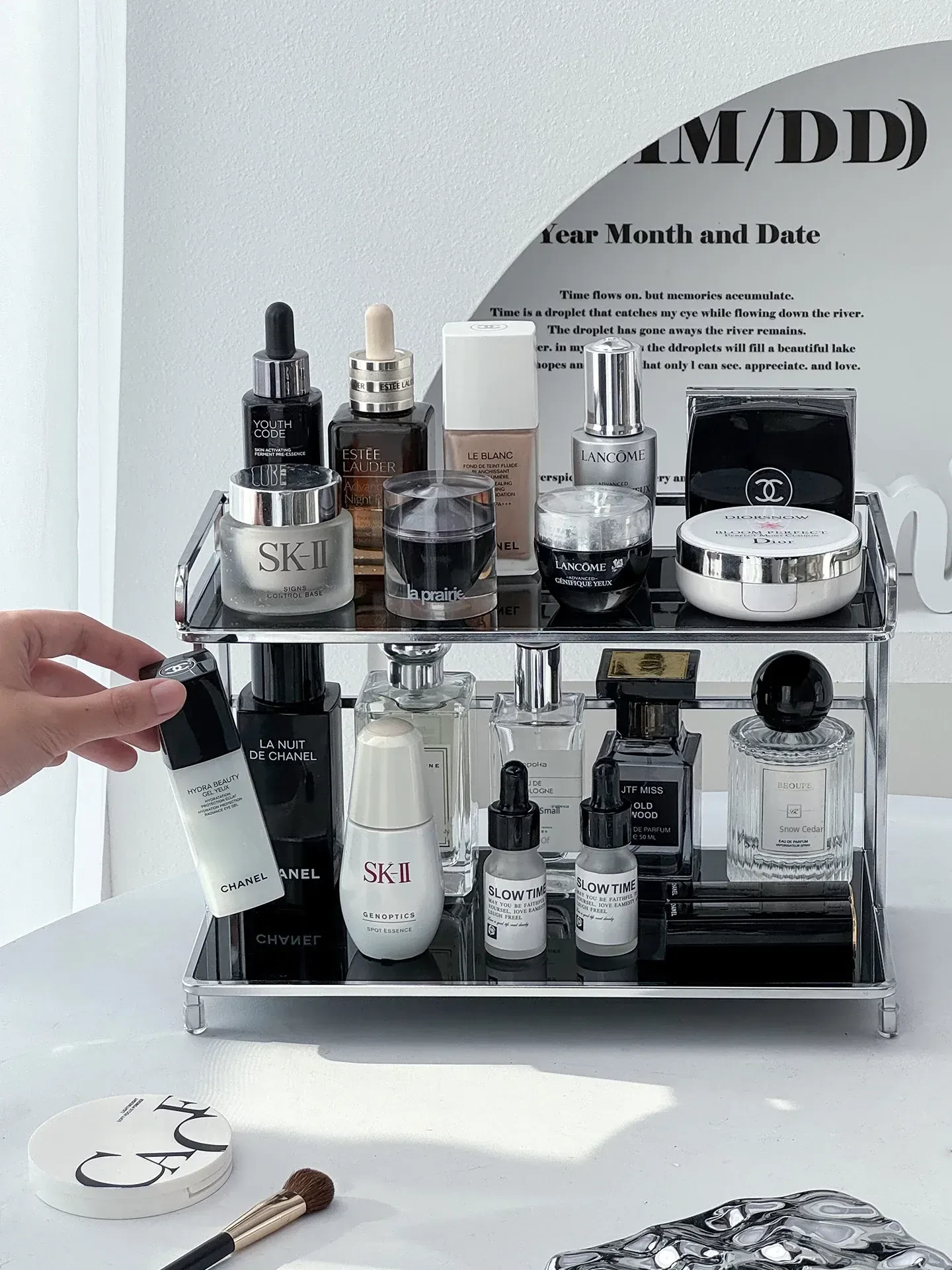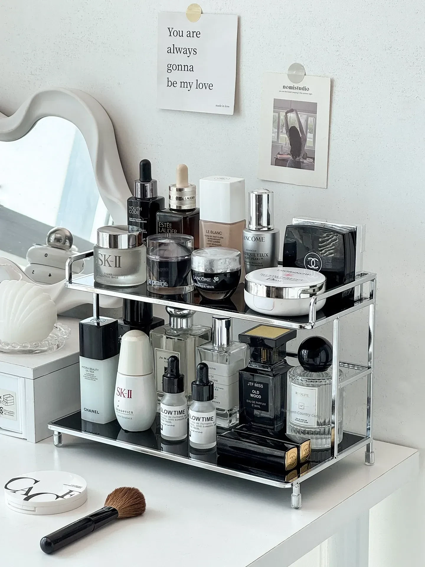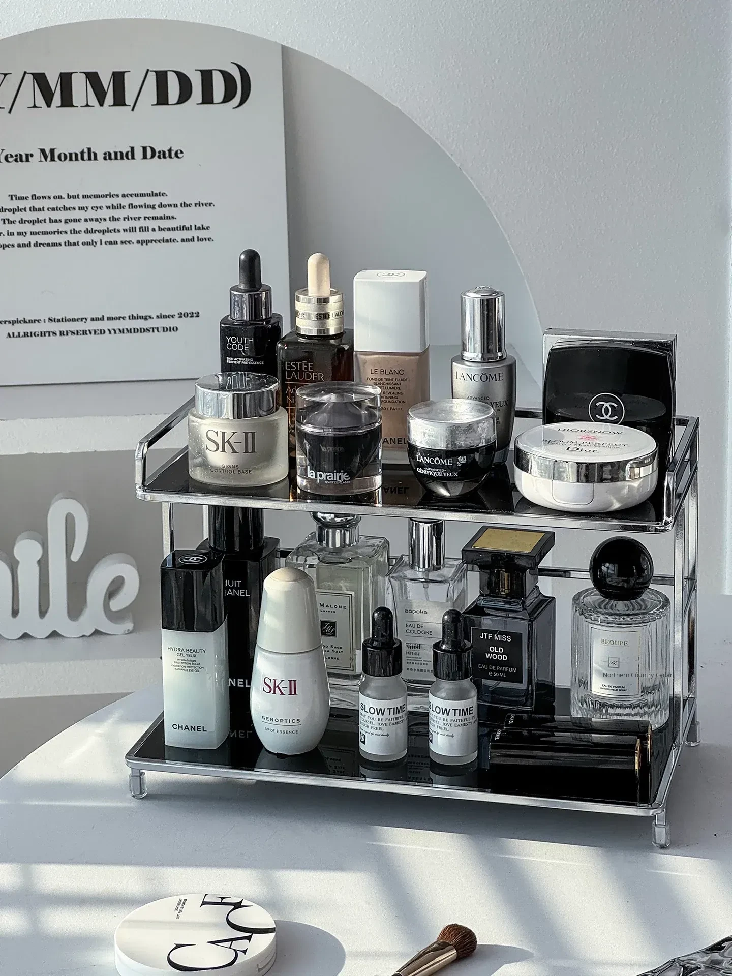 Elegant Iron Makeup Vanity Organizer - Premium Perfume Display Stand & Cosmetic Storage Box for Chic Bathroom Decor. Perfect for Stylish Grooming Stations!