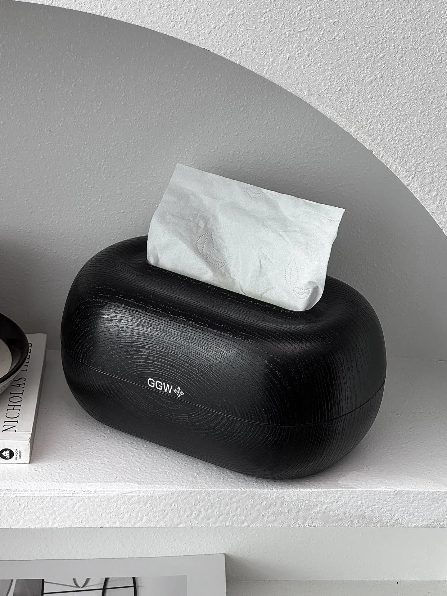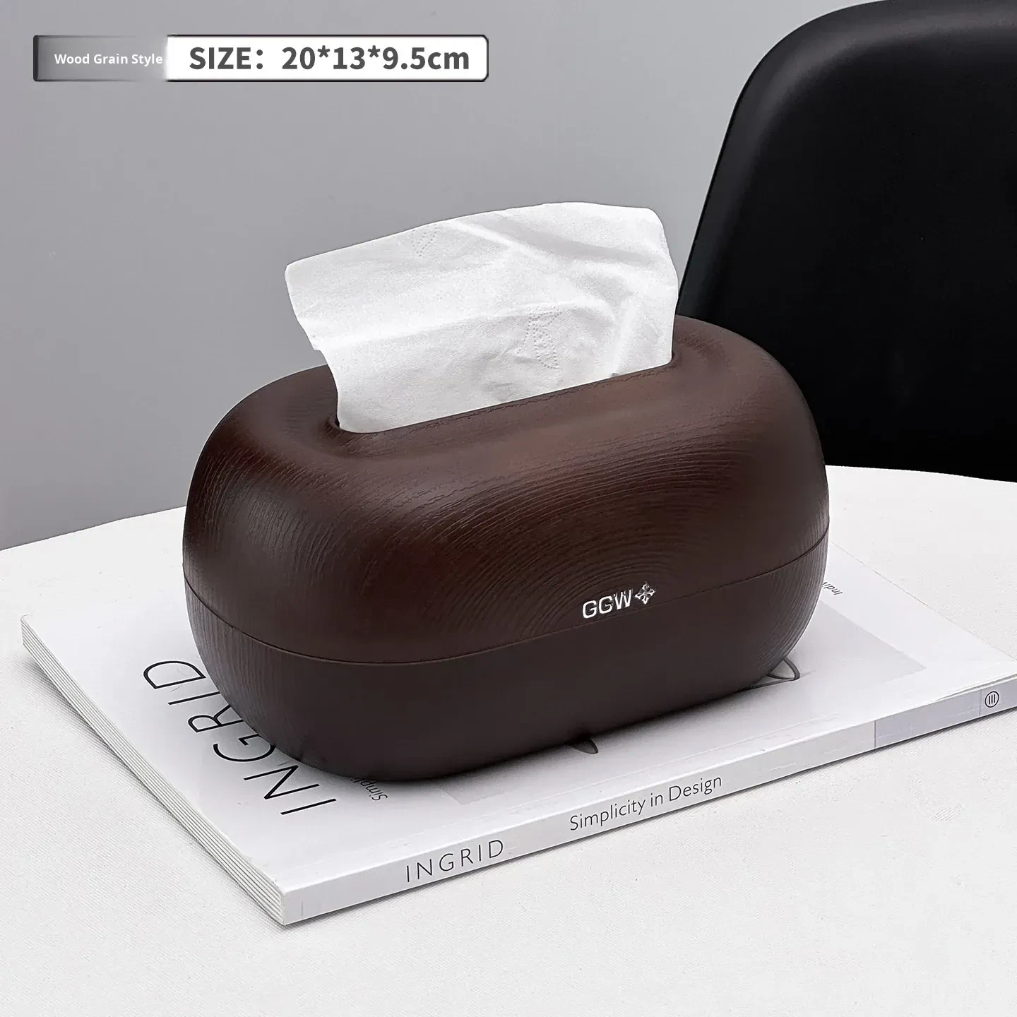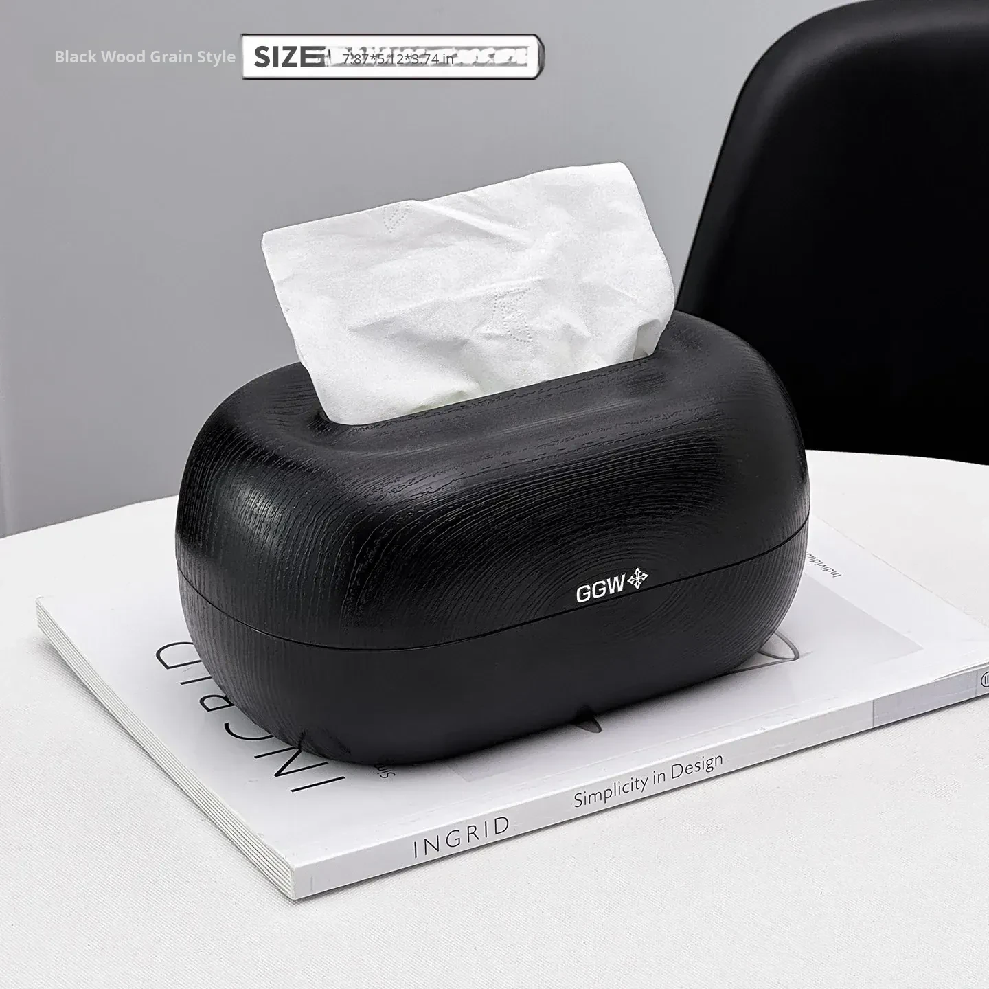 Desktop Spring Tissue Box-Black Wood Grain Style