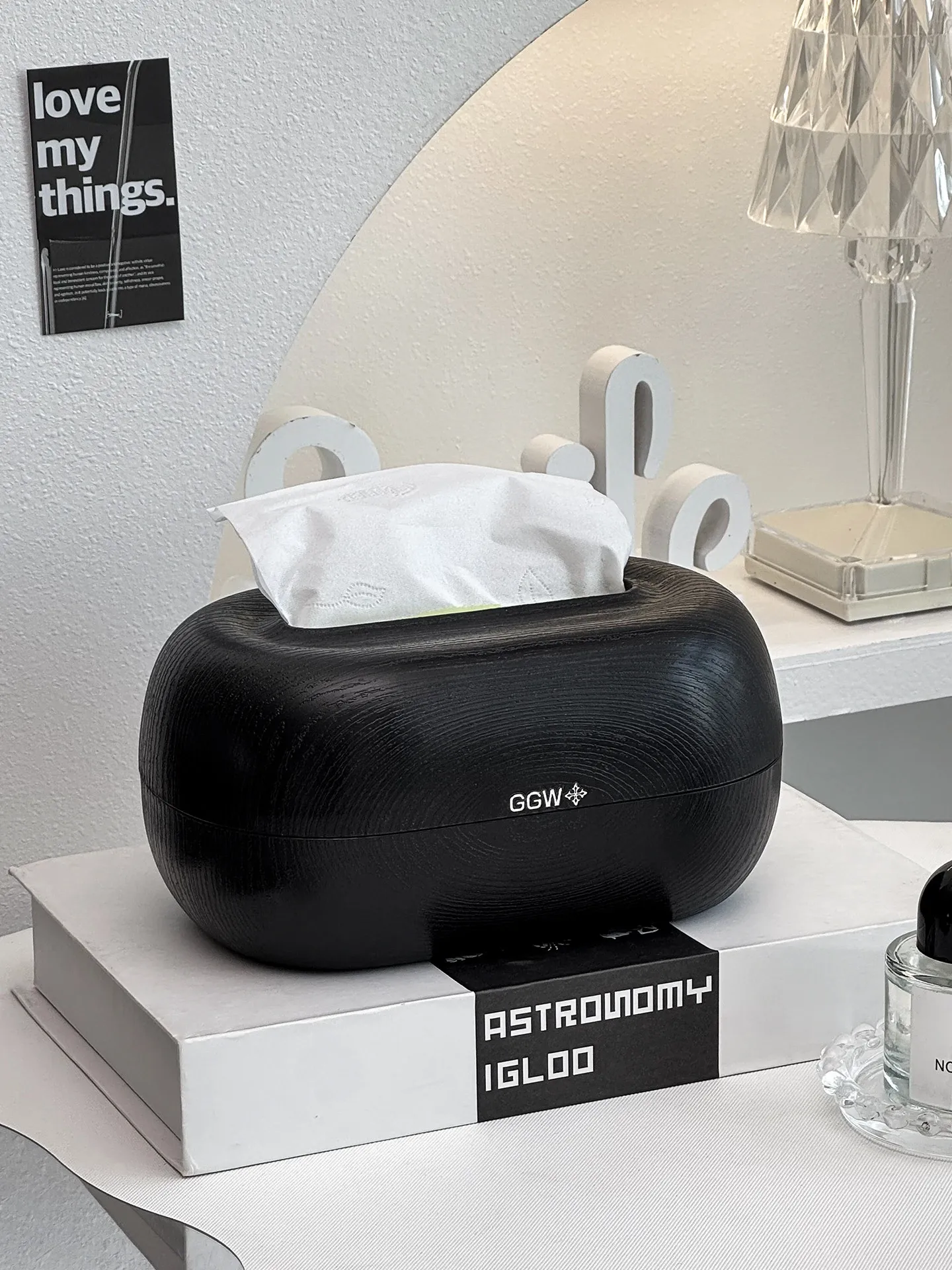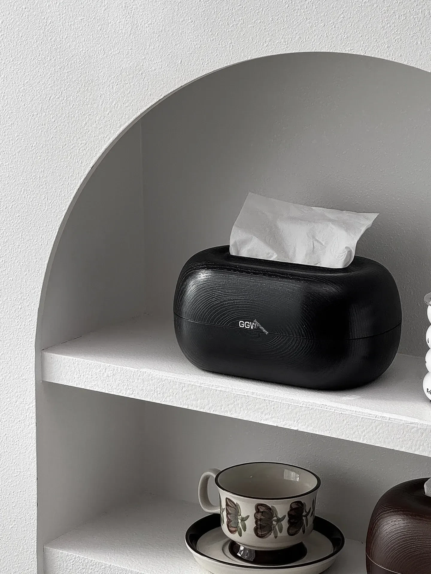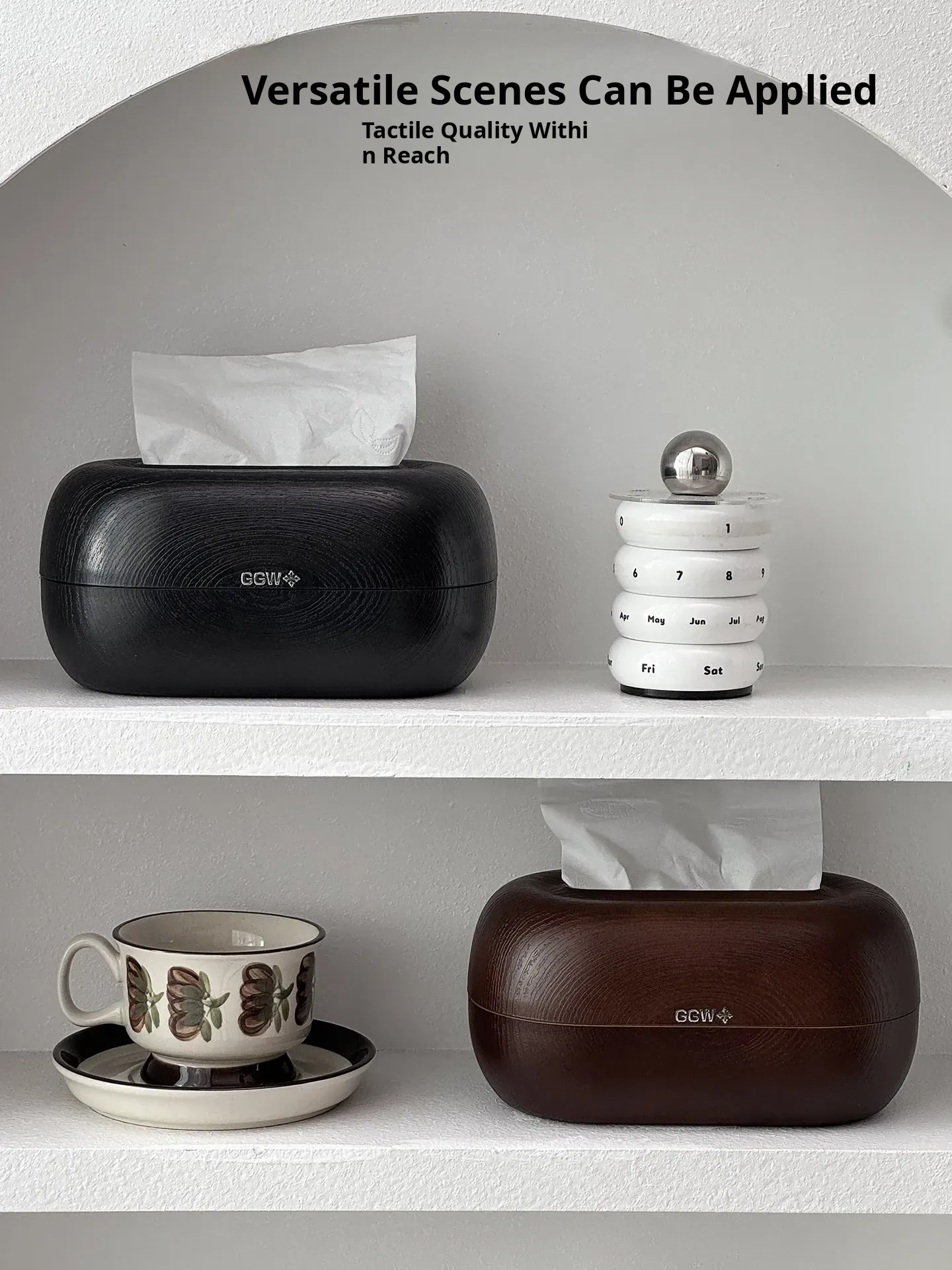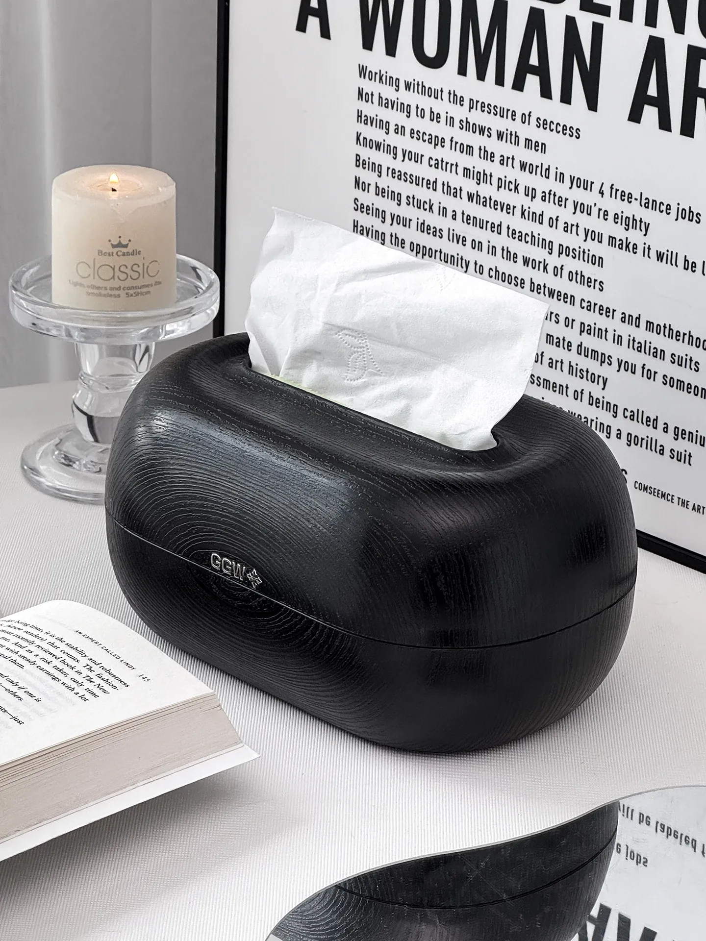 Desktop Spring Tissue Box-Black Wood Grain Style
