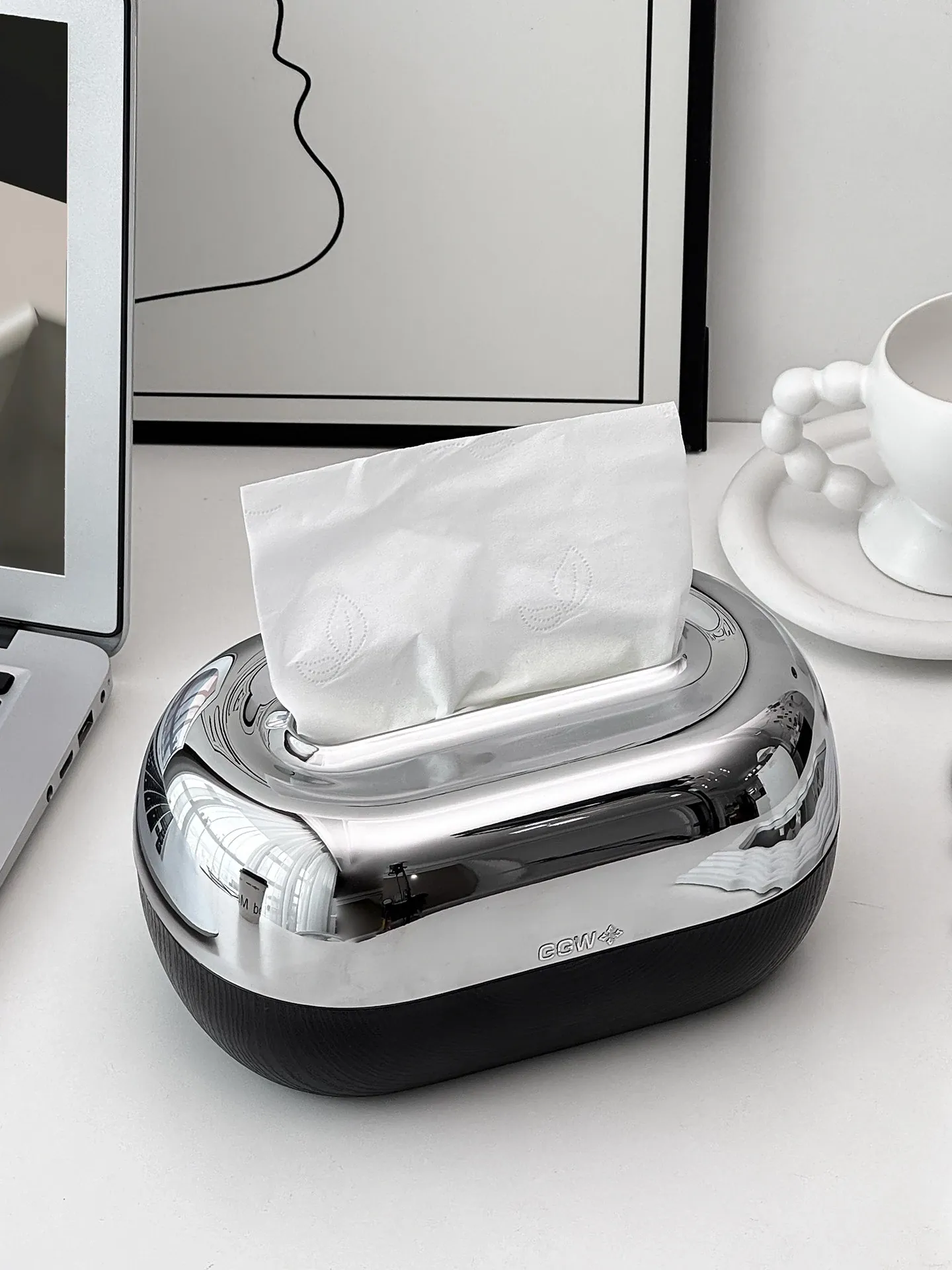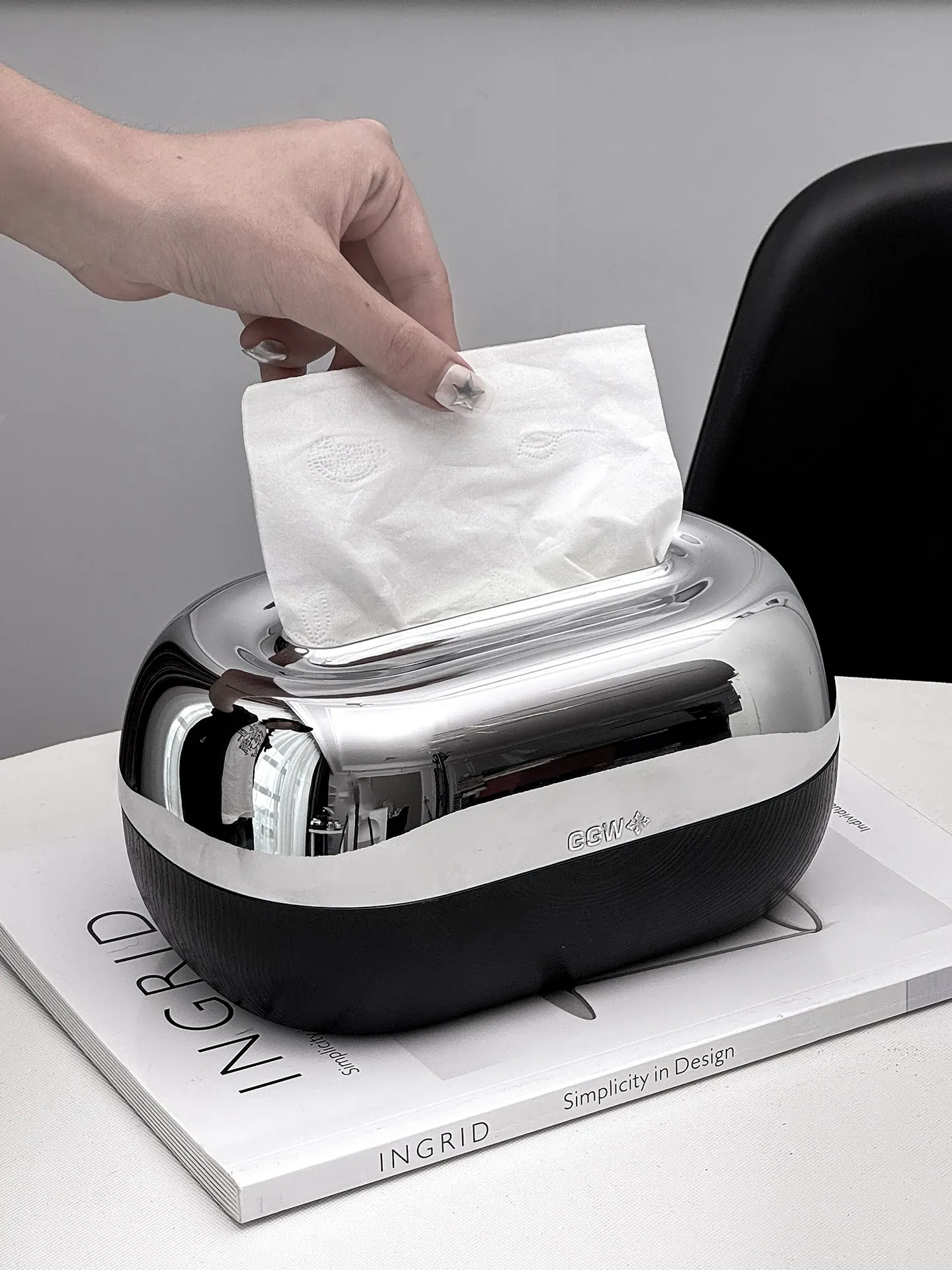 Desktop Spring Tissue Box-Black Electroplated Model