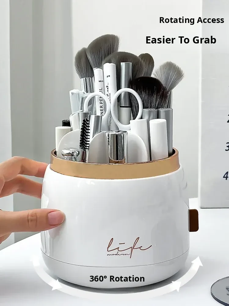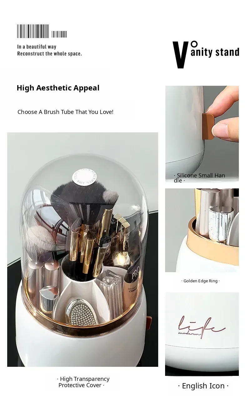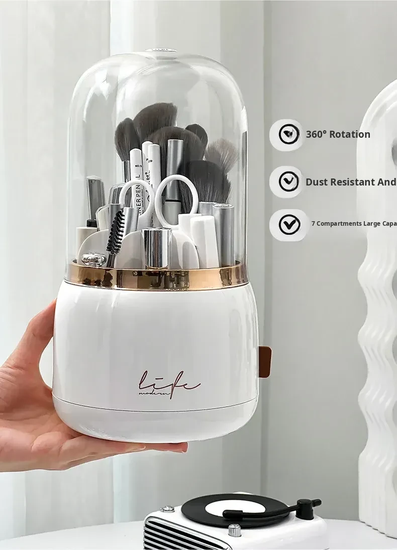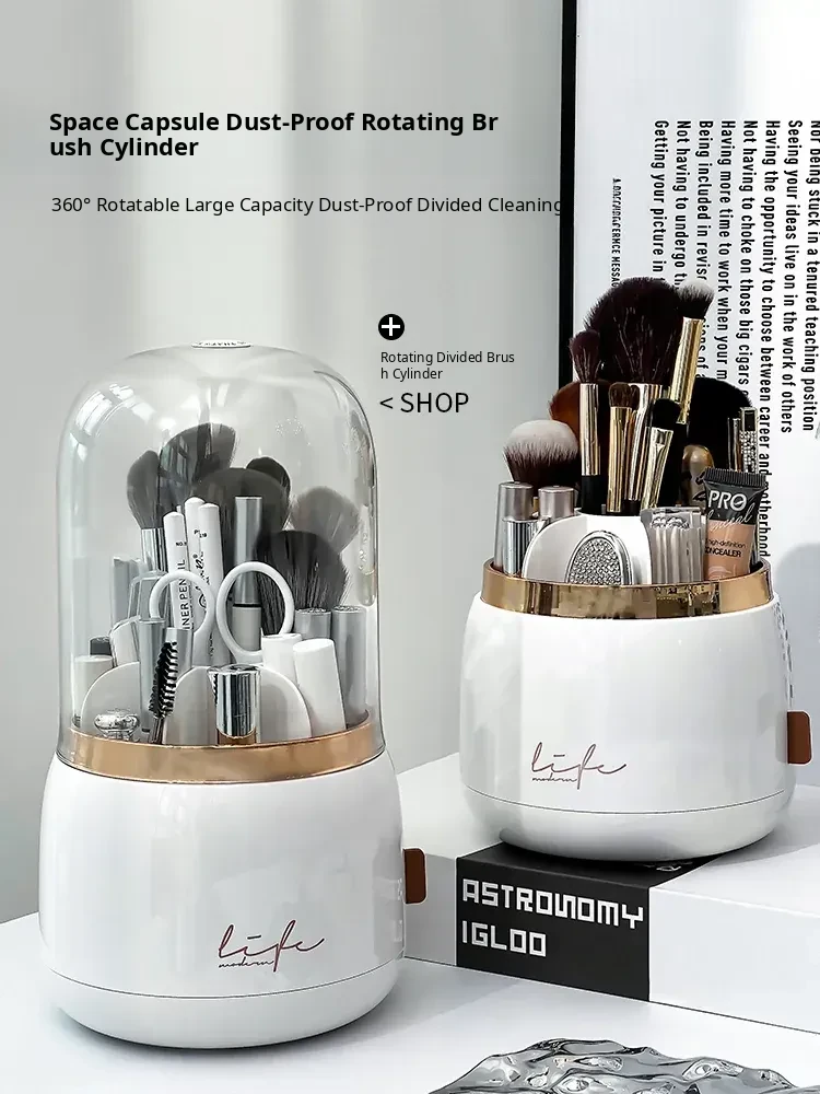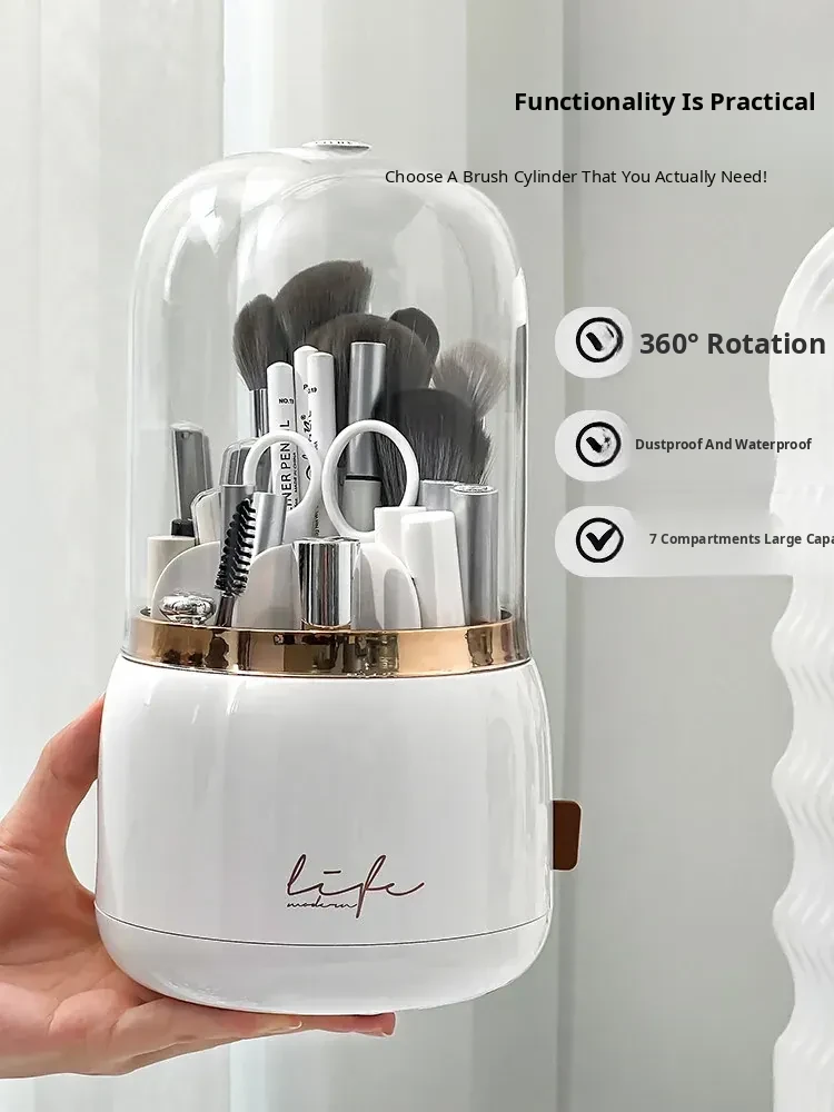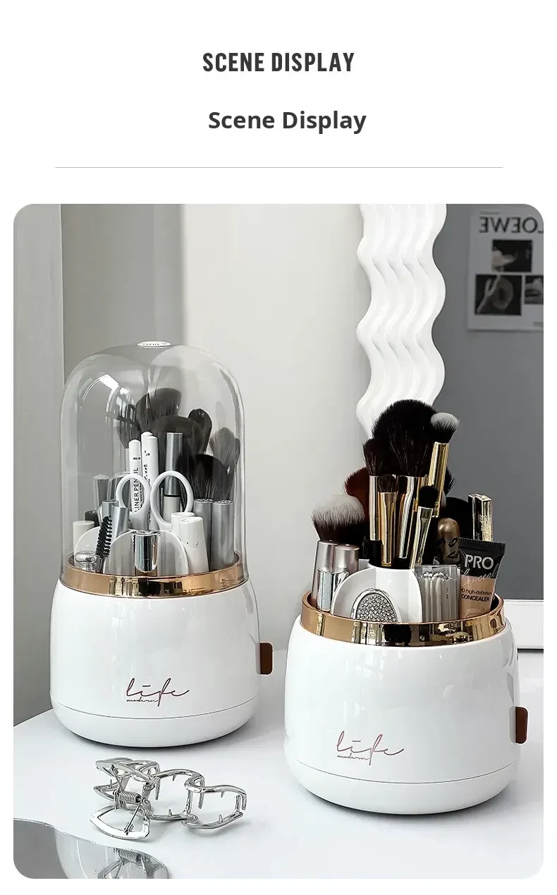 Elegant Makeup Brush Organizer with Lid - Rotating Dustproof Storage for Eyeshadow Brushes and Eyebrow Pencils, Perfect for Your Vanity Table