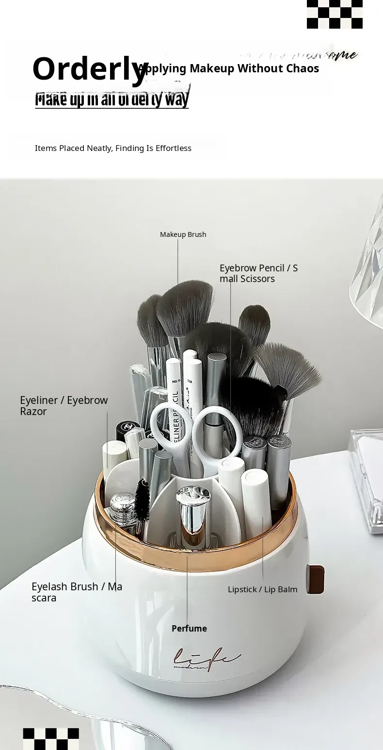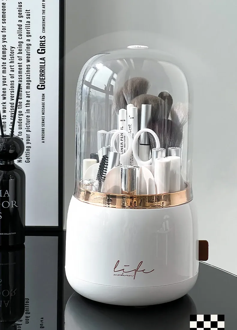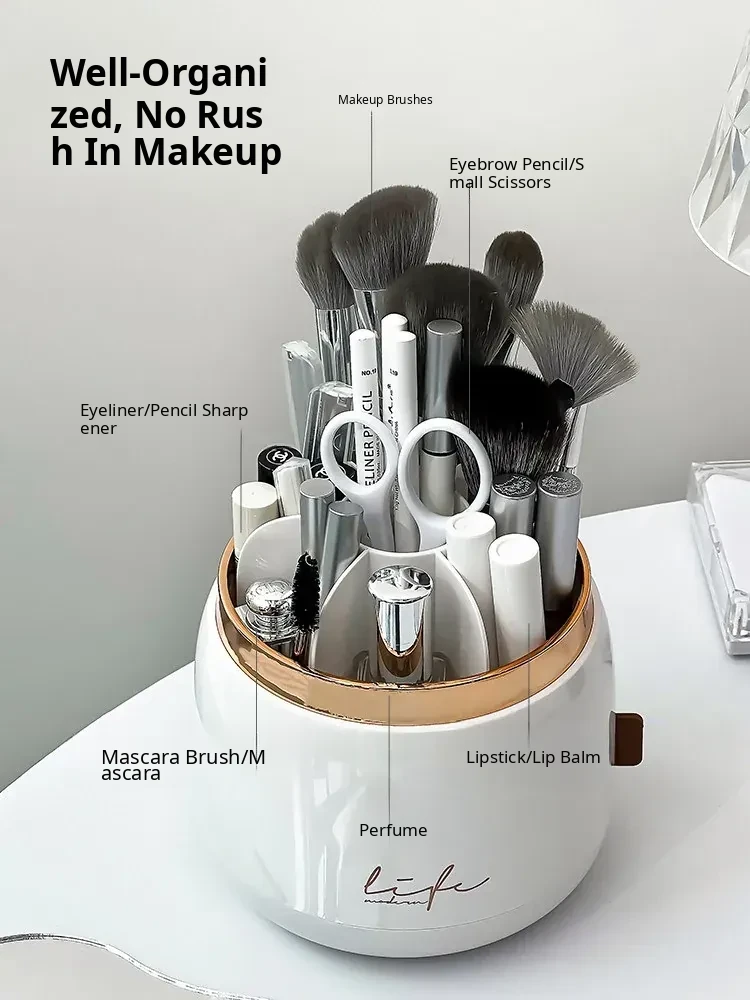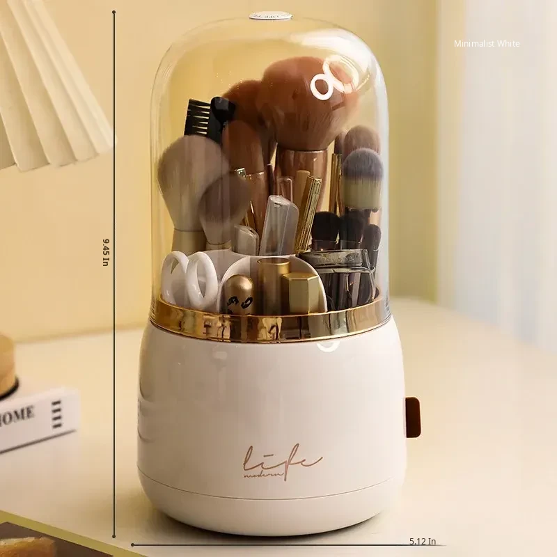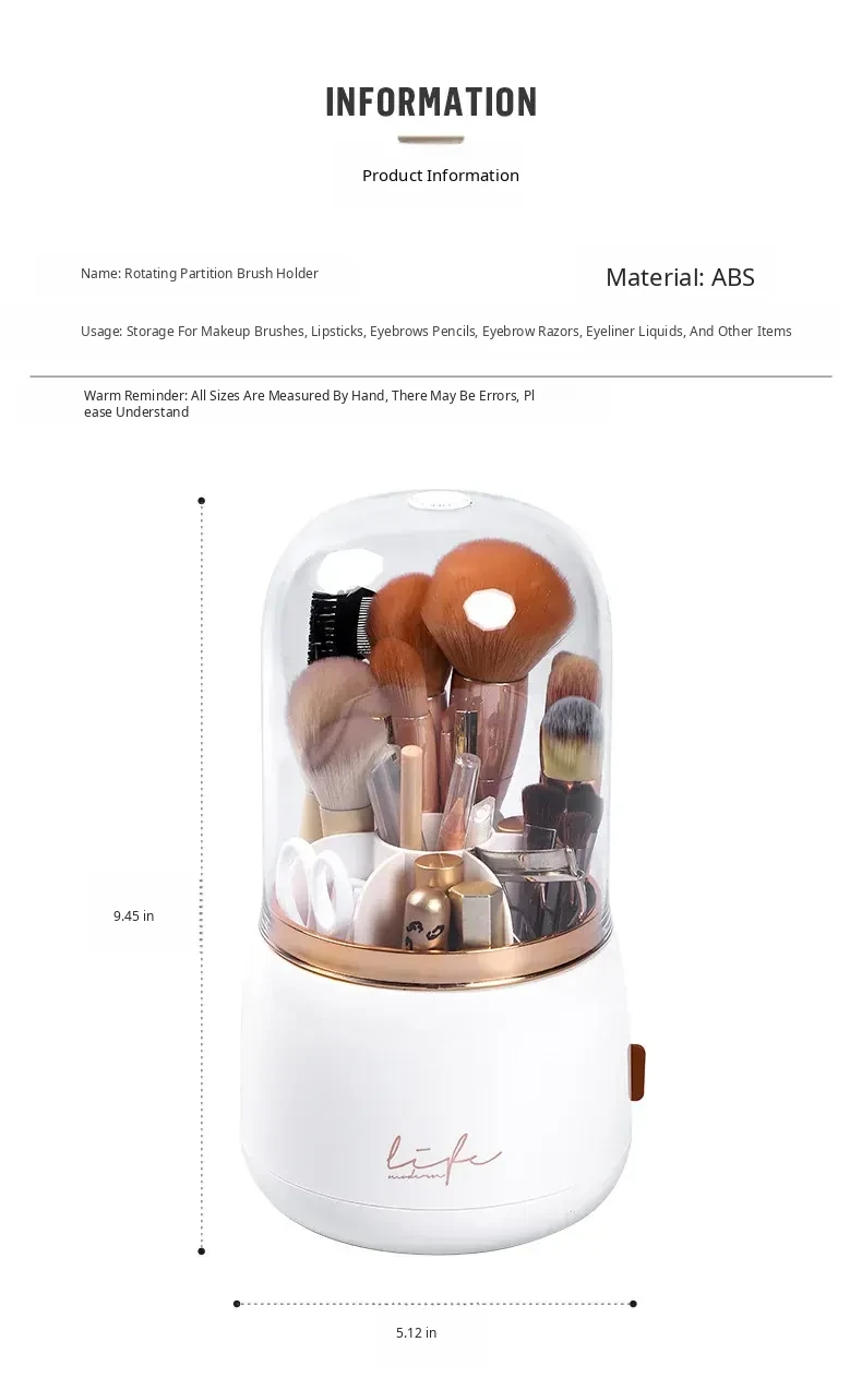 Elegant Makeup Brush Organizer with Lid - Rotating Dustproof Storage for Eyeshadow Brushes and Eyebrow Pencils, Perfect for Your Vanity Table
