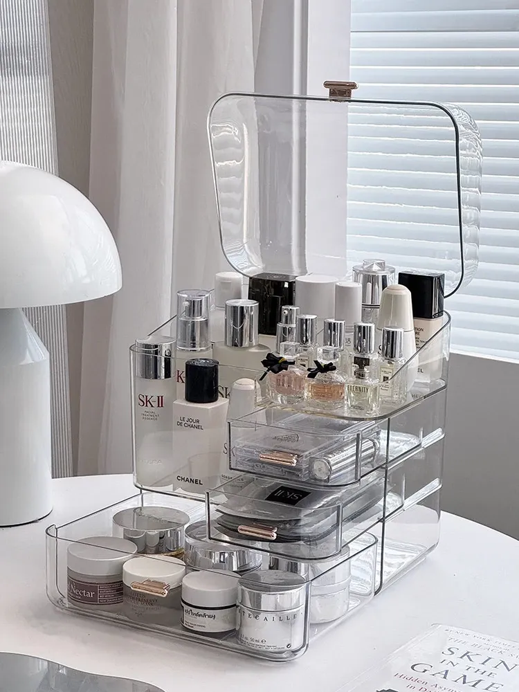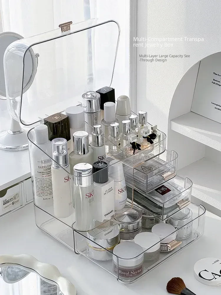 Elegant Makeup Organizer Box for Home - Stylish Vanity Storage for Skincare and Perfume, Large Capacity Desktop Organizer for a Clutter-Free Experience