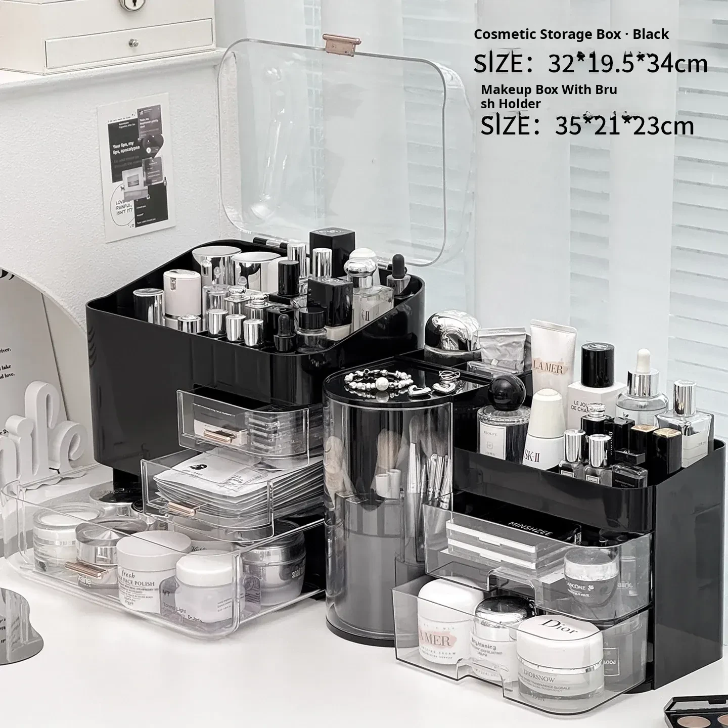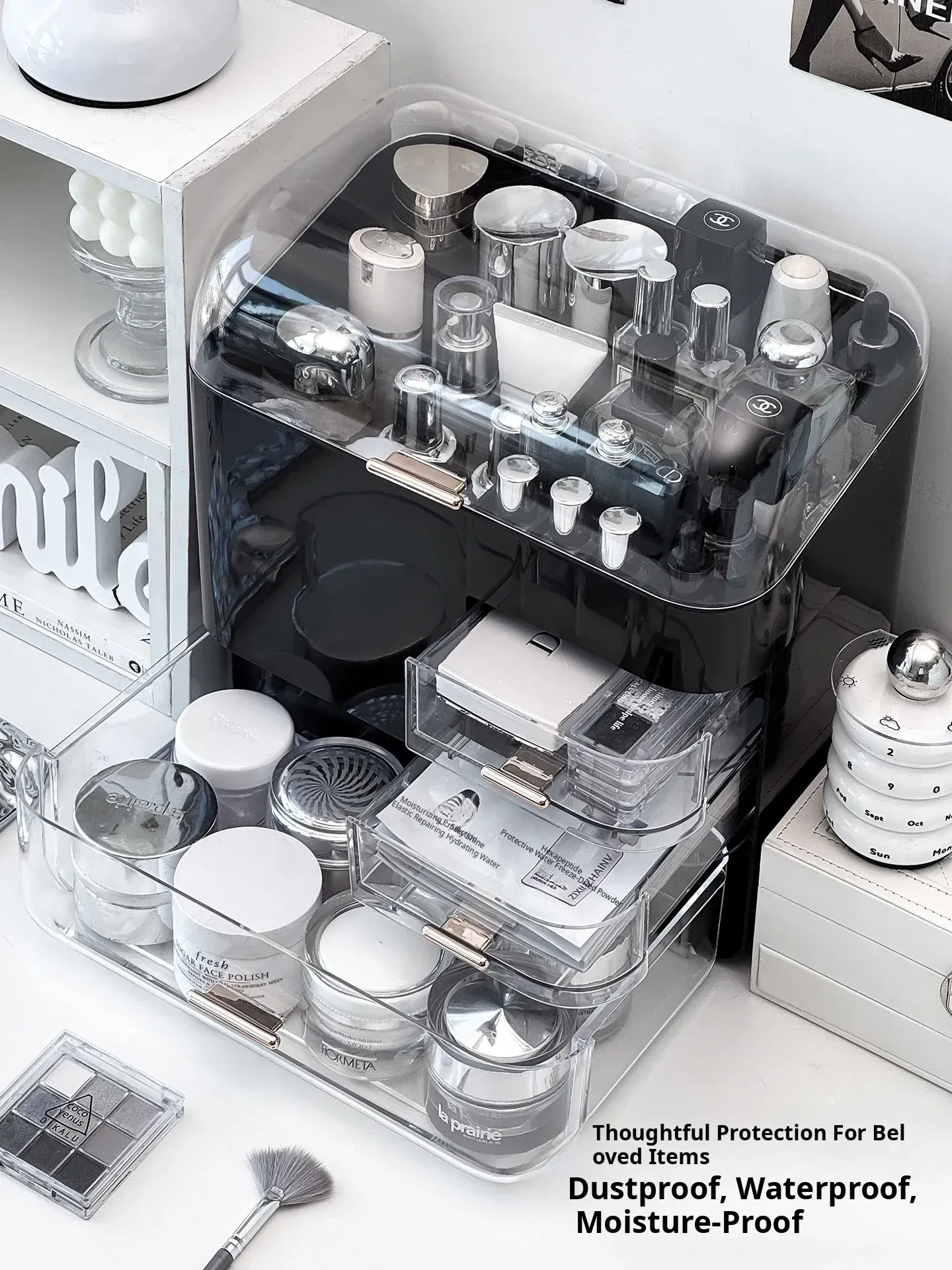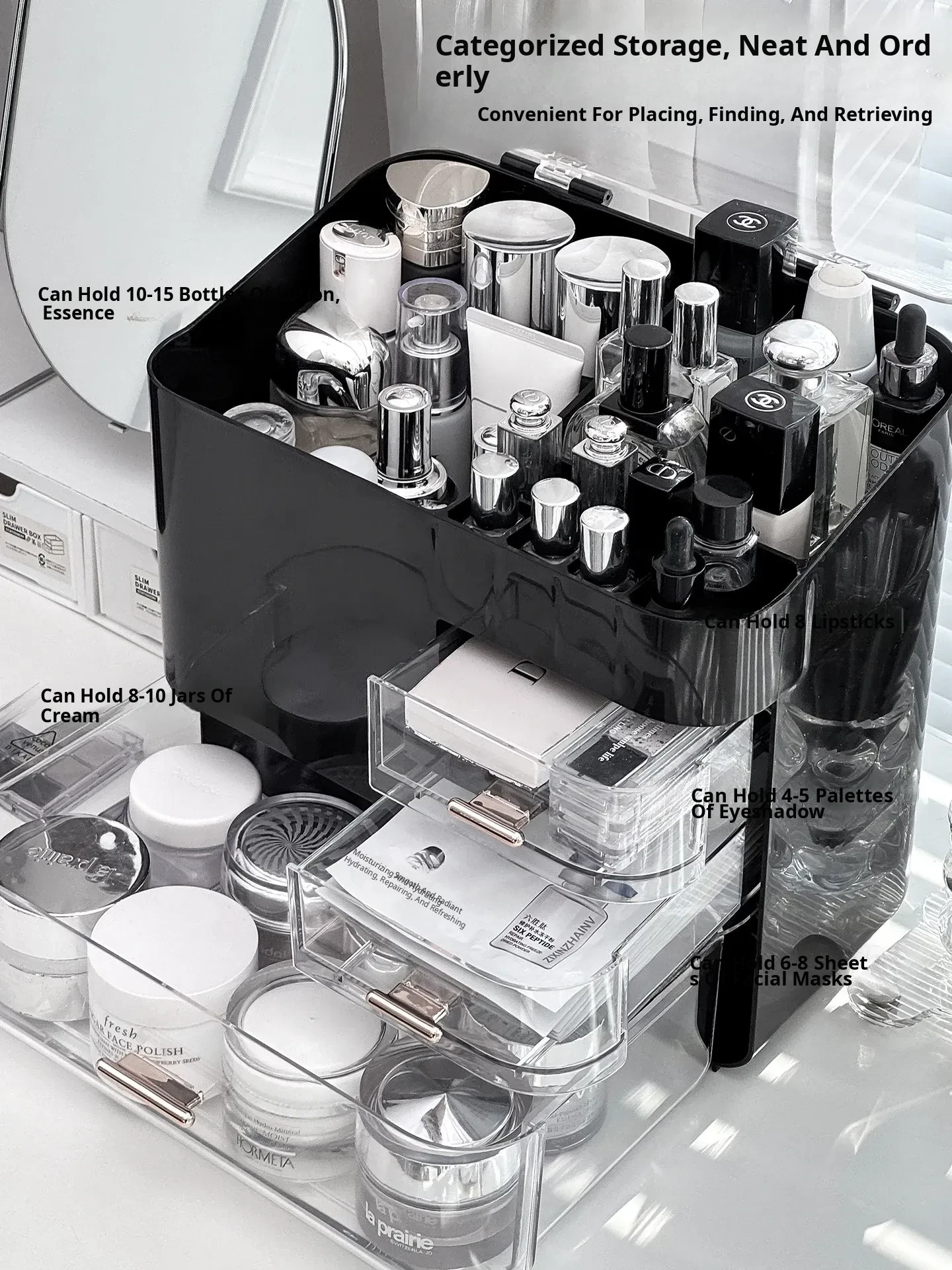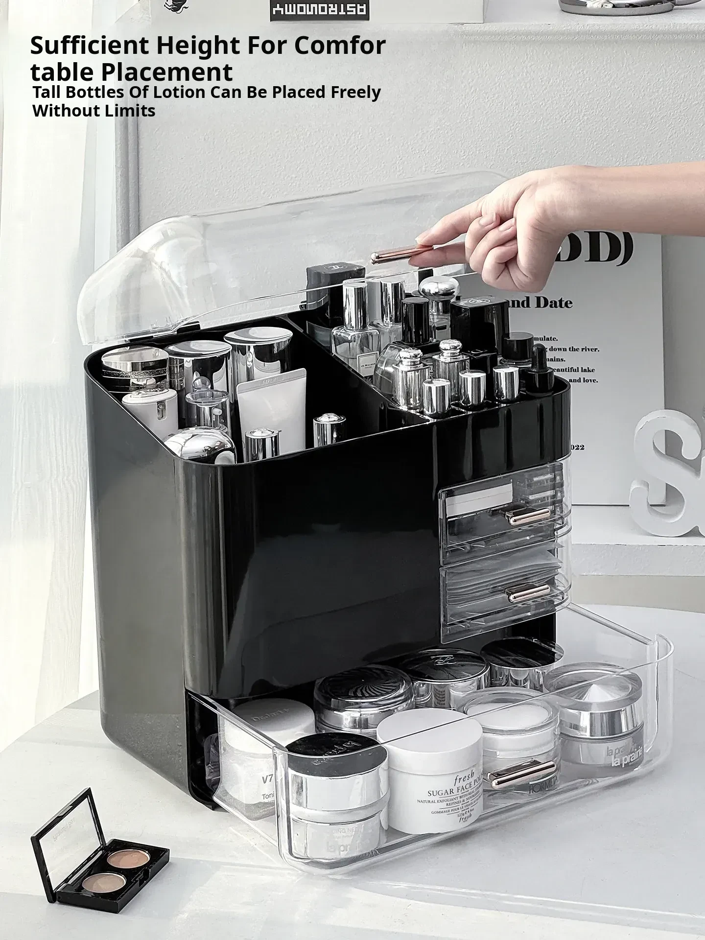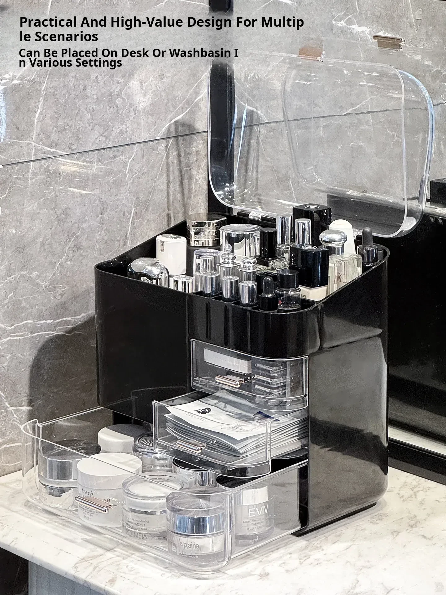 Elegant Makeup Organizer Box - Large Capacity Desktop Dustproof Storage for Skincare and Cosmetics, Ideal for Vanity and Makeup Essentials, Perfect Lipstick Organizer.