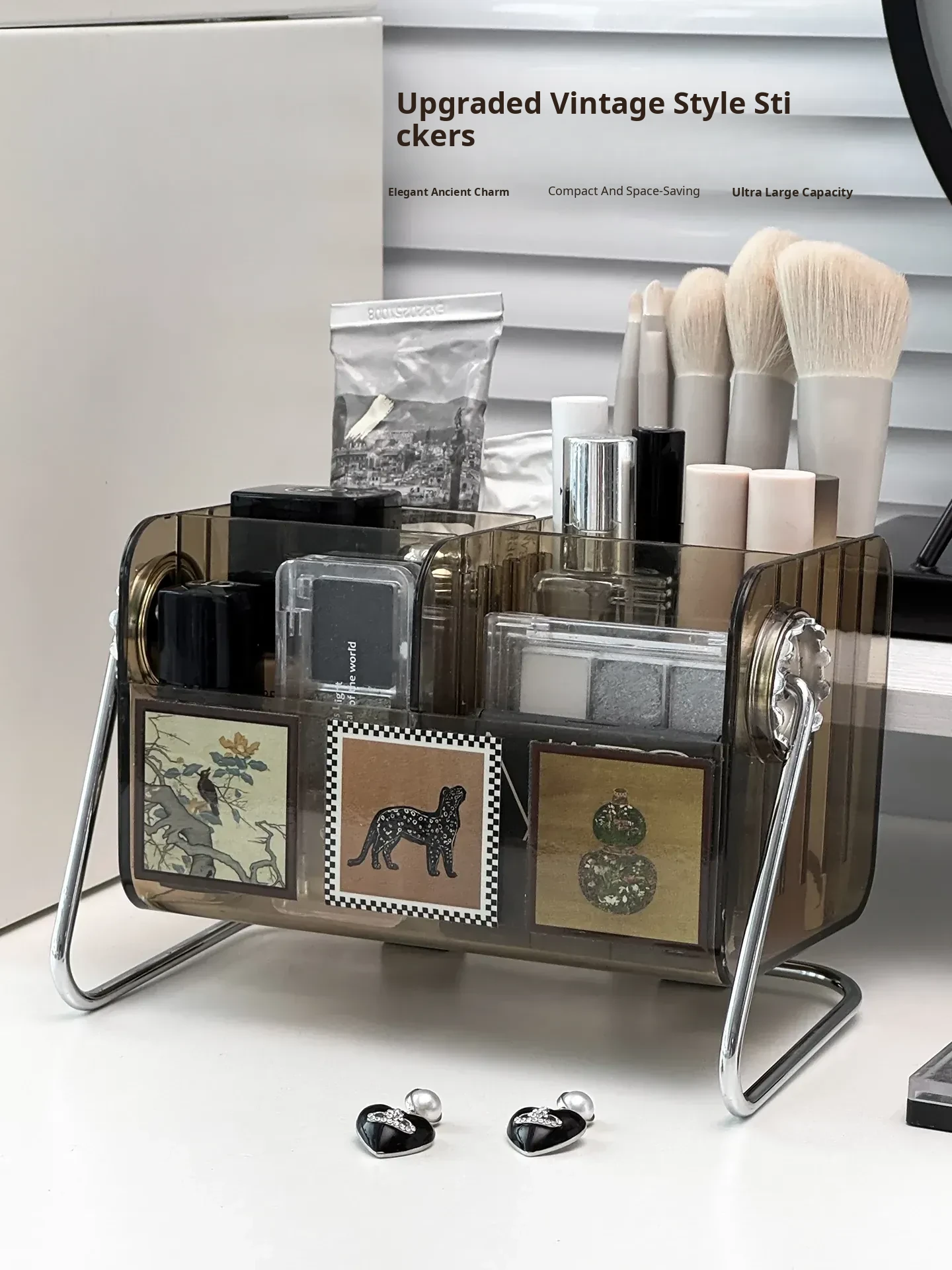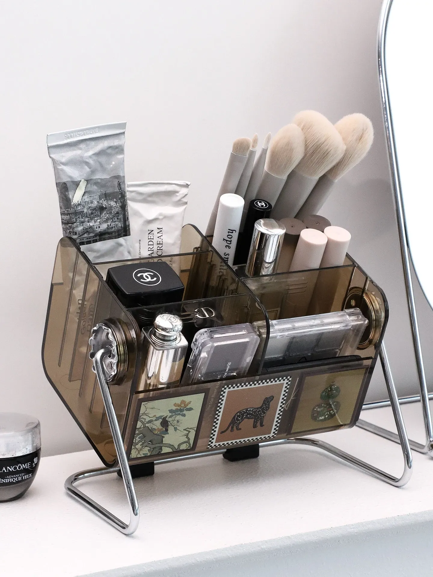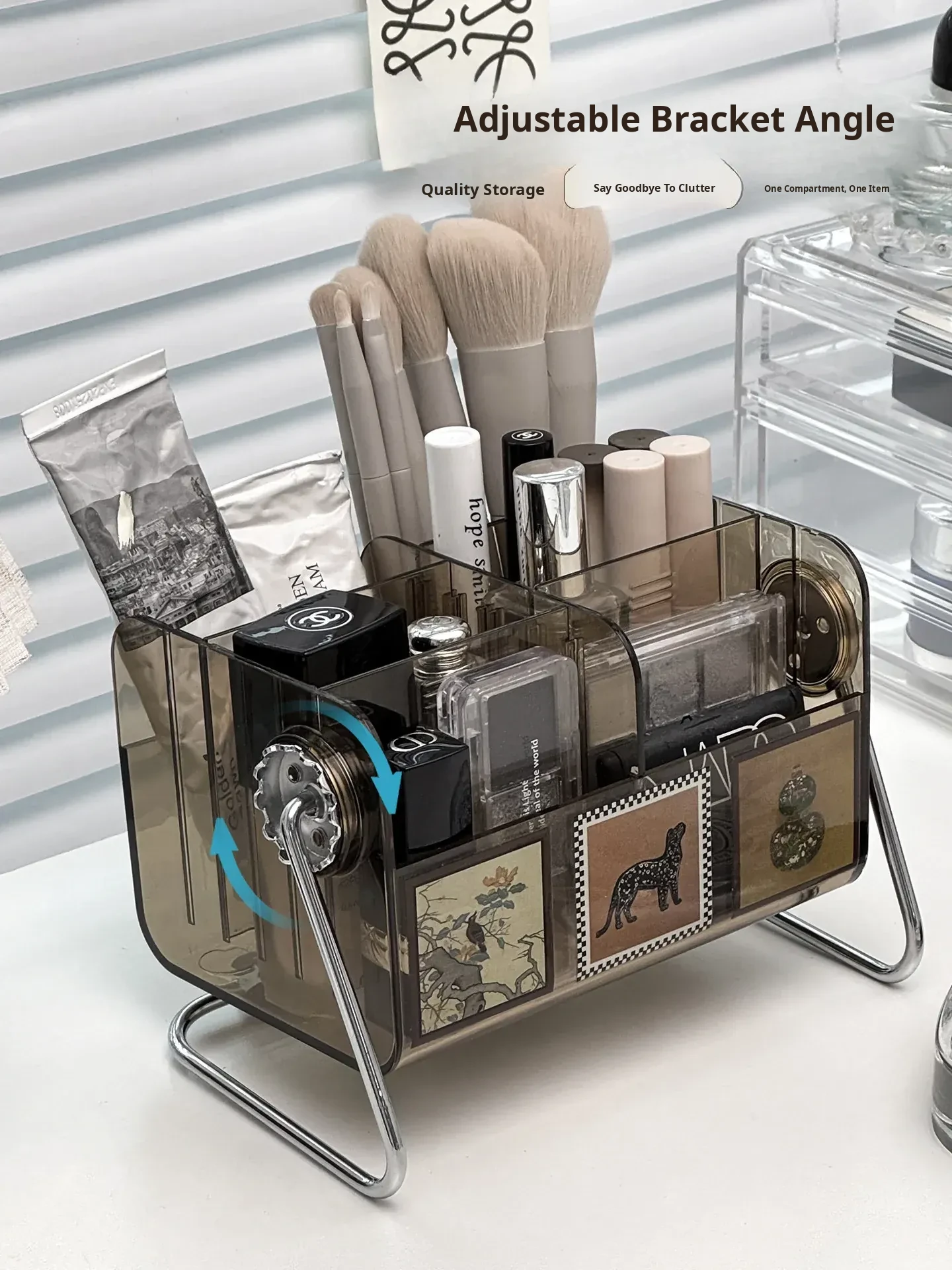Elegant Rotating Makeup Organizer - Luxury Cosmetic Storage Box with Divided Brush Holder for Desktop, Stylish Lipstick and Eyeshadow Display Rack