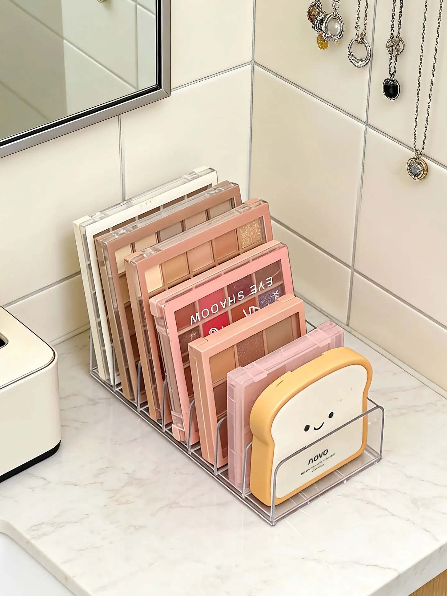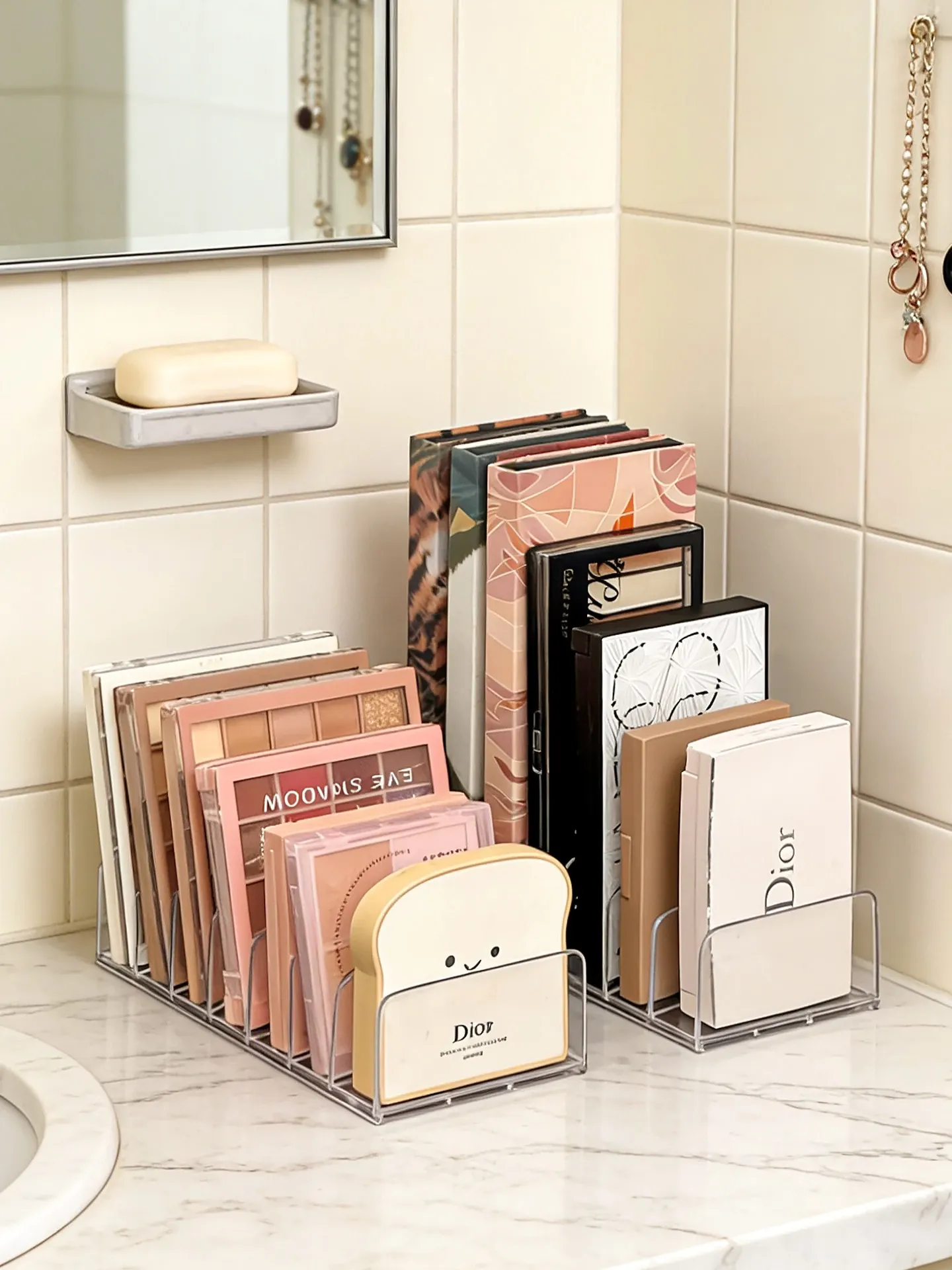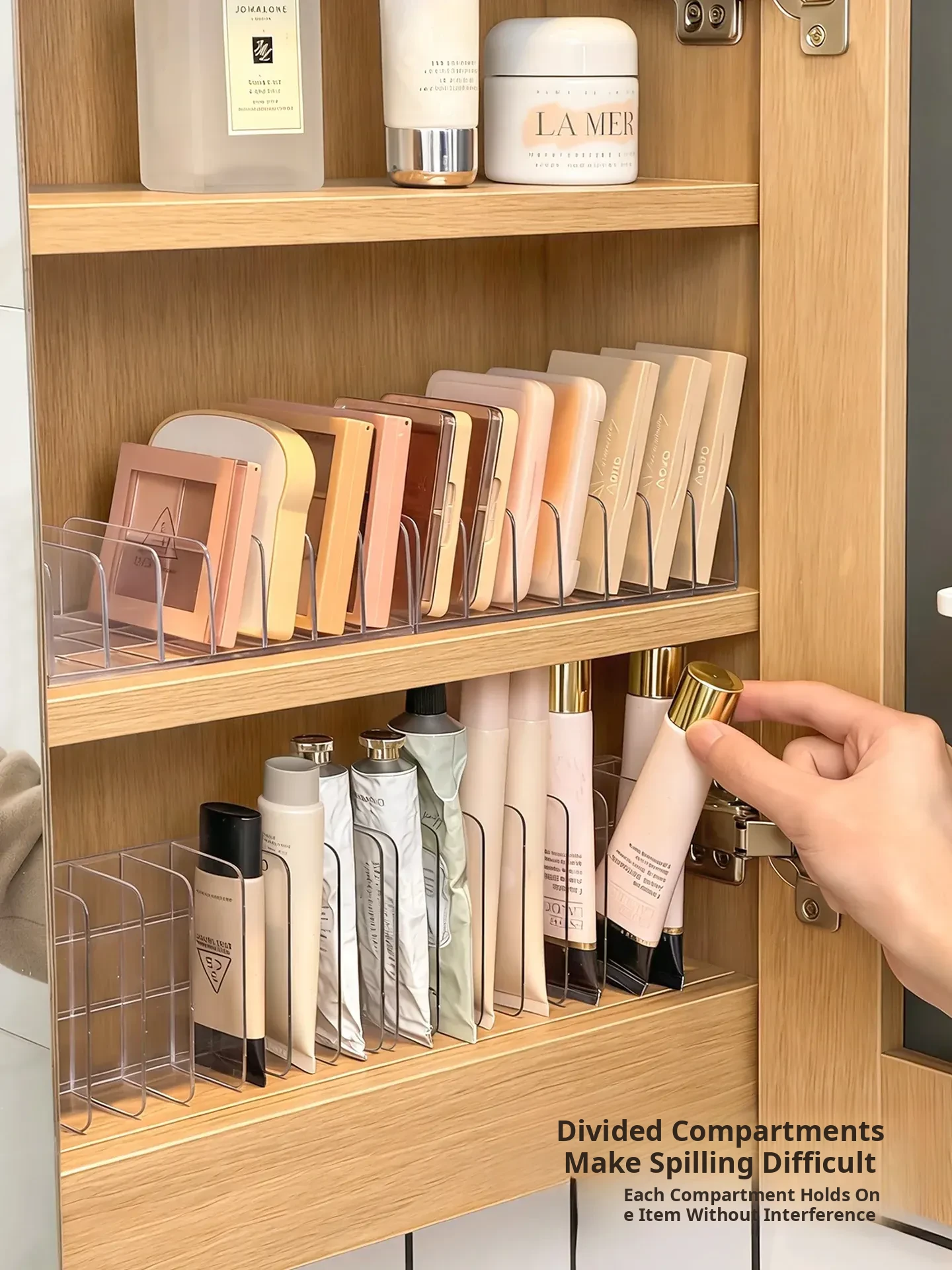 "Elegant Vanity Organizer: Multi-Compartment Makeup Storage Box for Eyeshadow, Powders, and Daily Essentials - Perfect for Keeping Your Bathroom Tidy!"