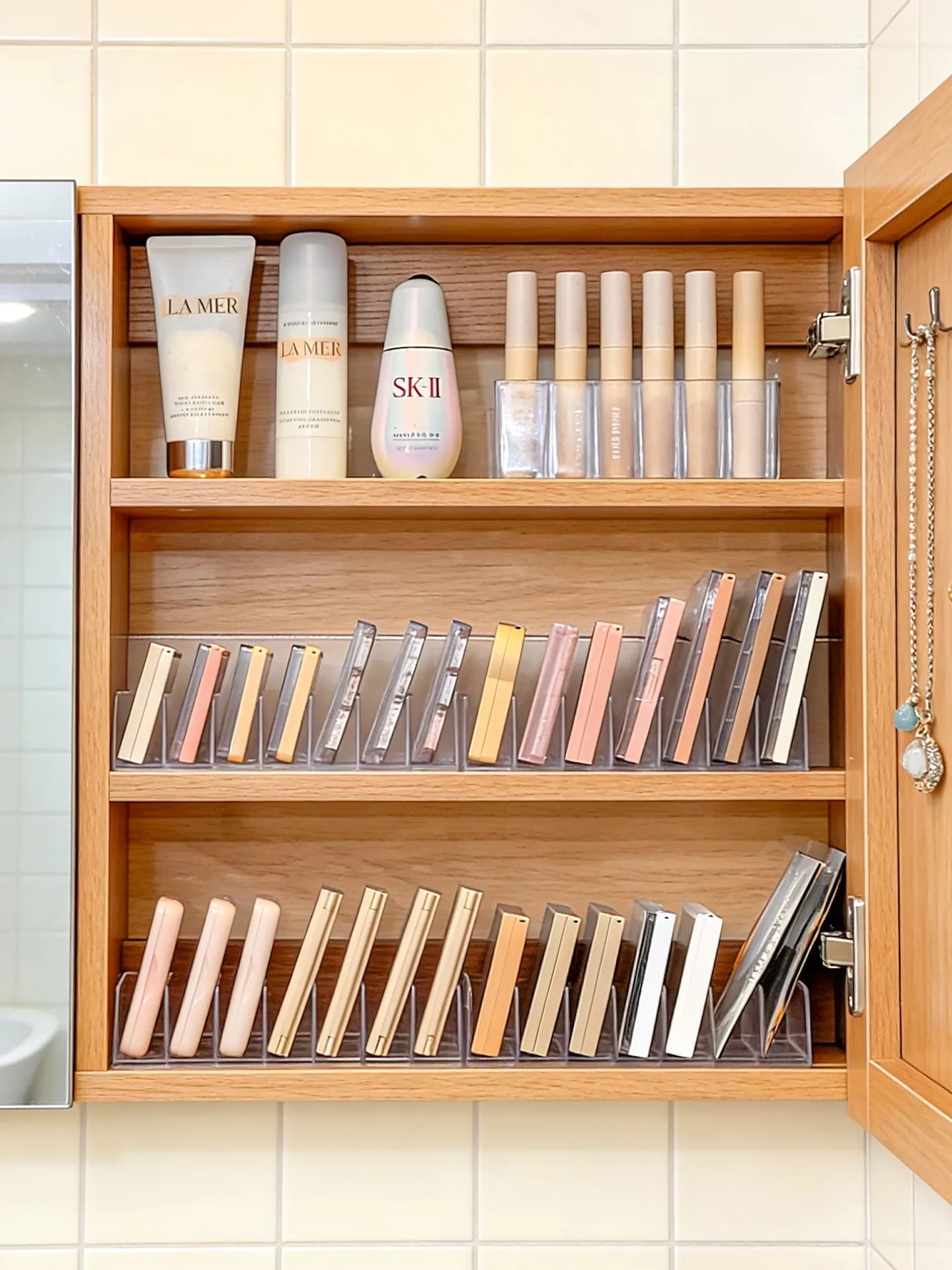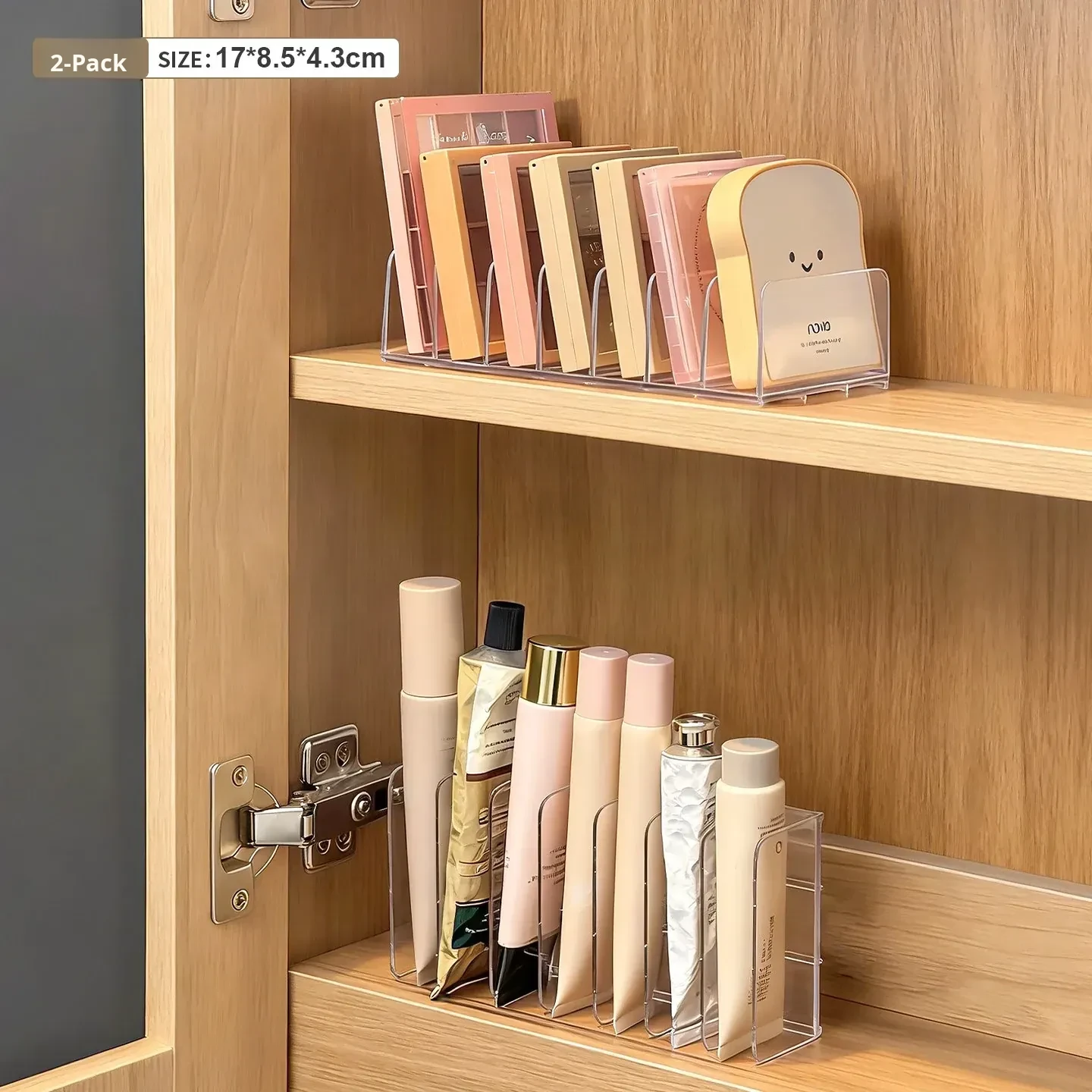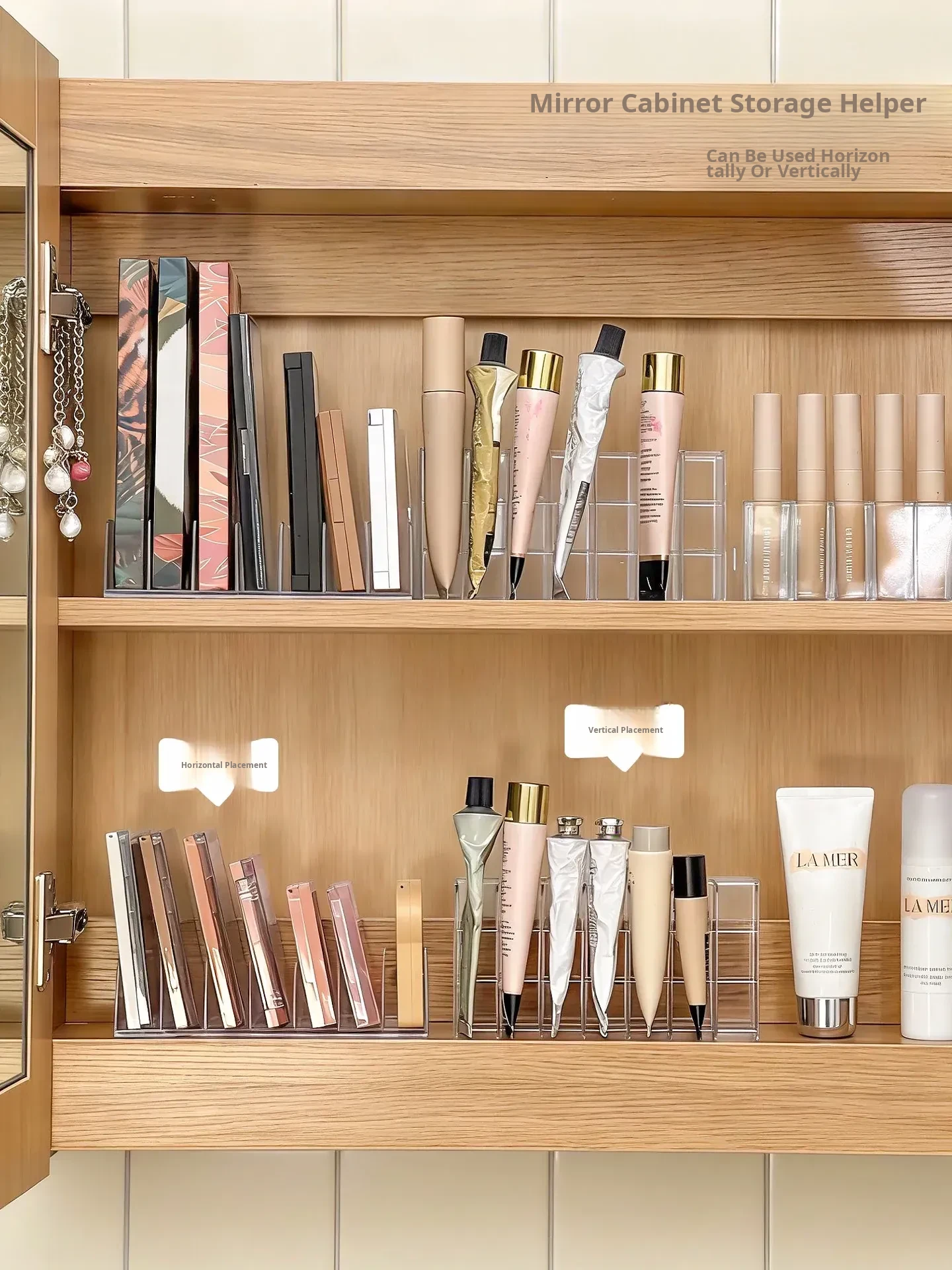 "Elegant Vanity Organizer: Multi-Compartment Makeup Storage Box for Eyeshadow, Powders, and Daily Essentials - Perfect for Keeping Your Bathroom Tidy!"