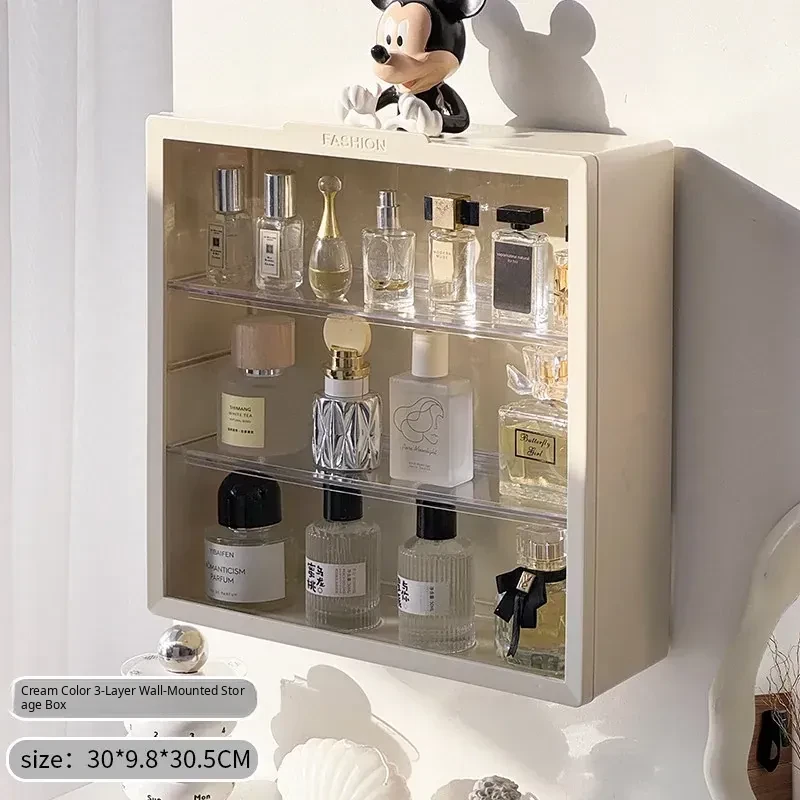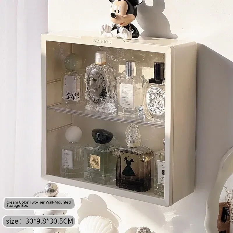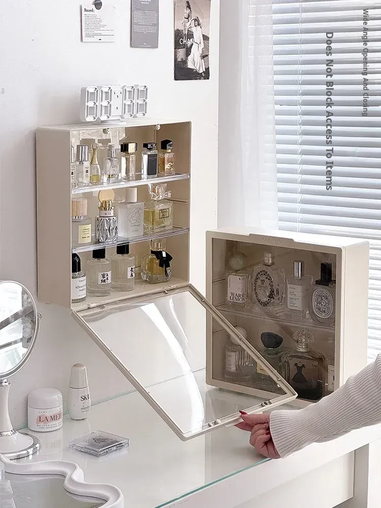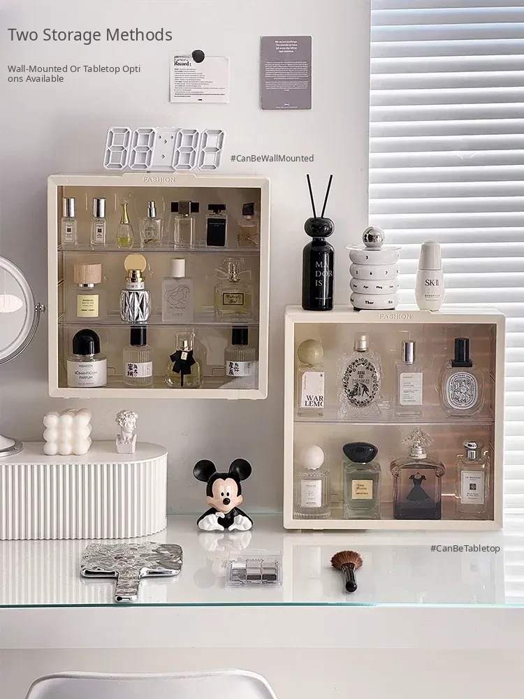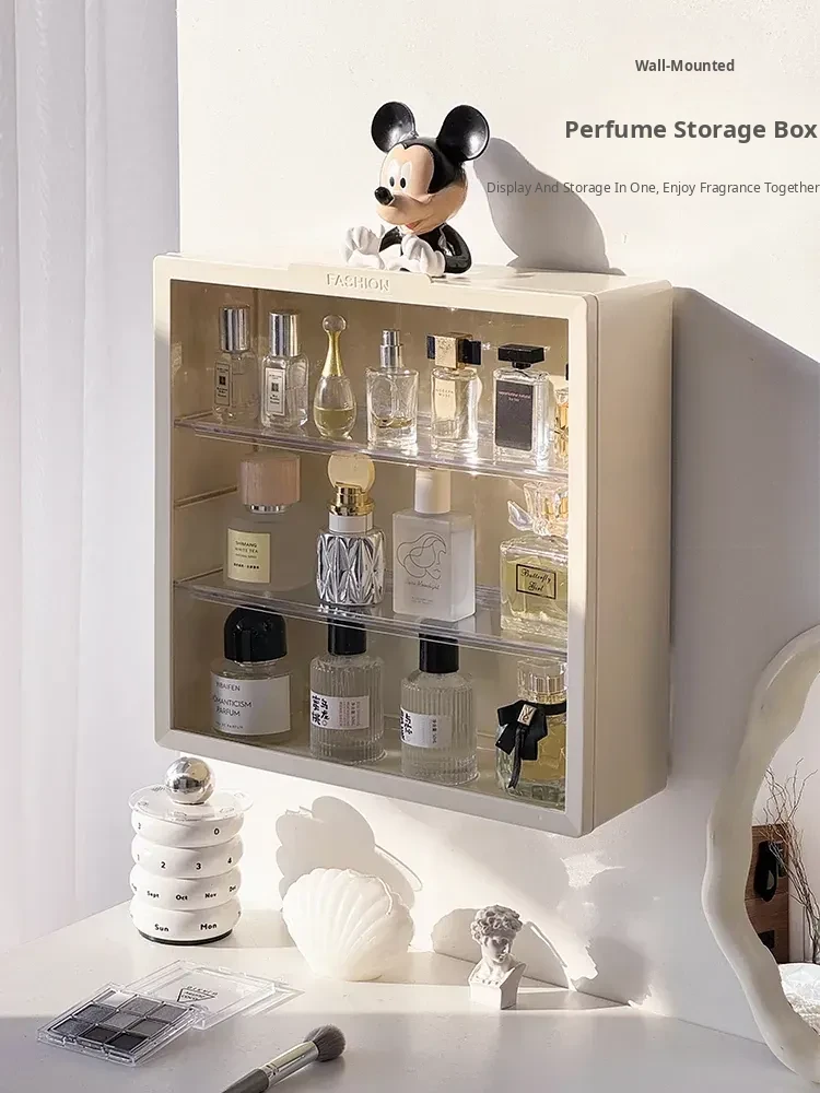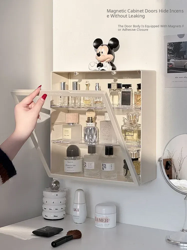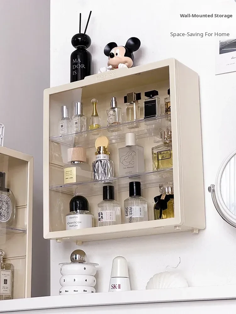 Elegant Wall-Mounted Perfume Display Cabinet – Dustproof Desktop Makeup Organizer with Multi-Layer Design for Stylish Vanity Storage and Light-Blocking Shelves. Perfect for Beauty Enthusiasts!