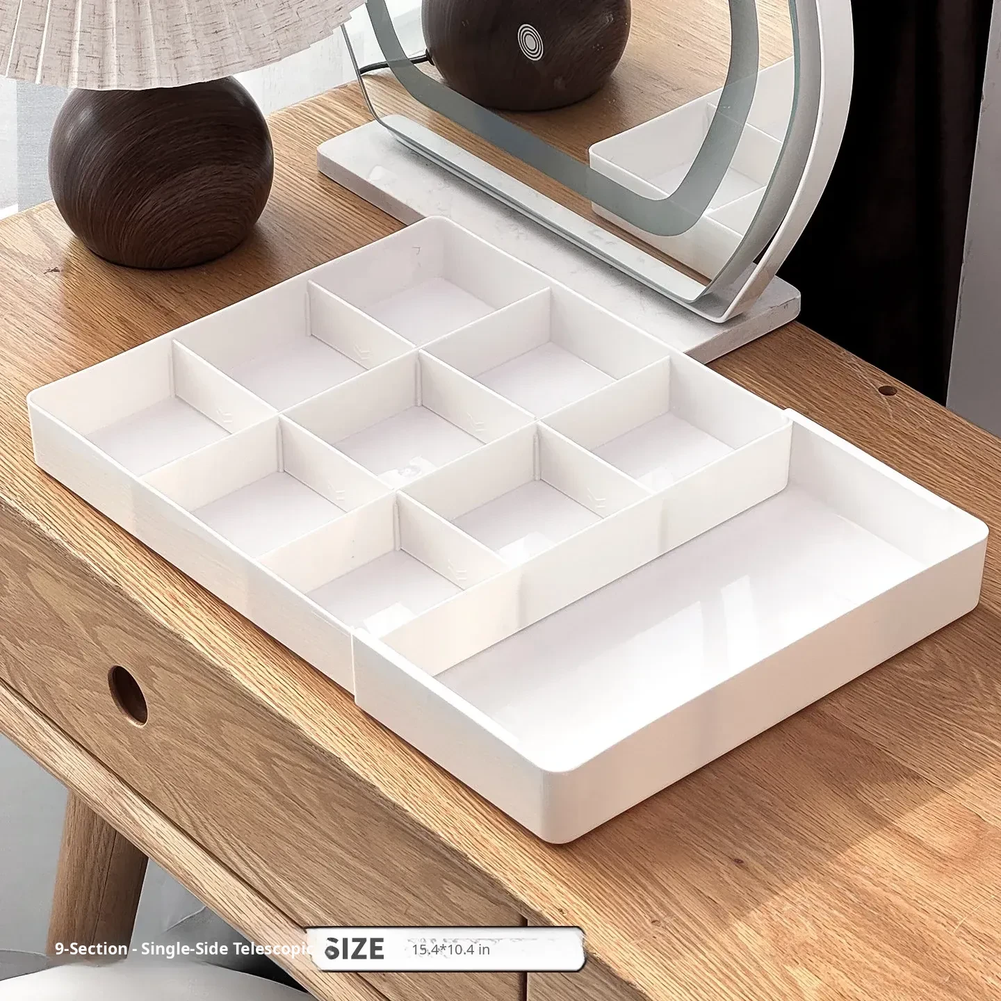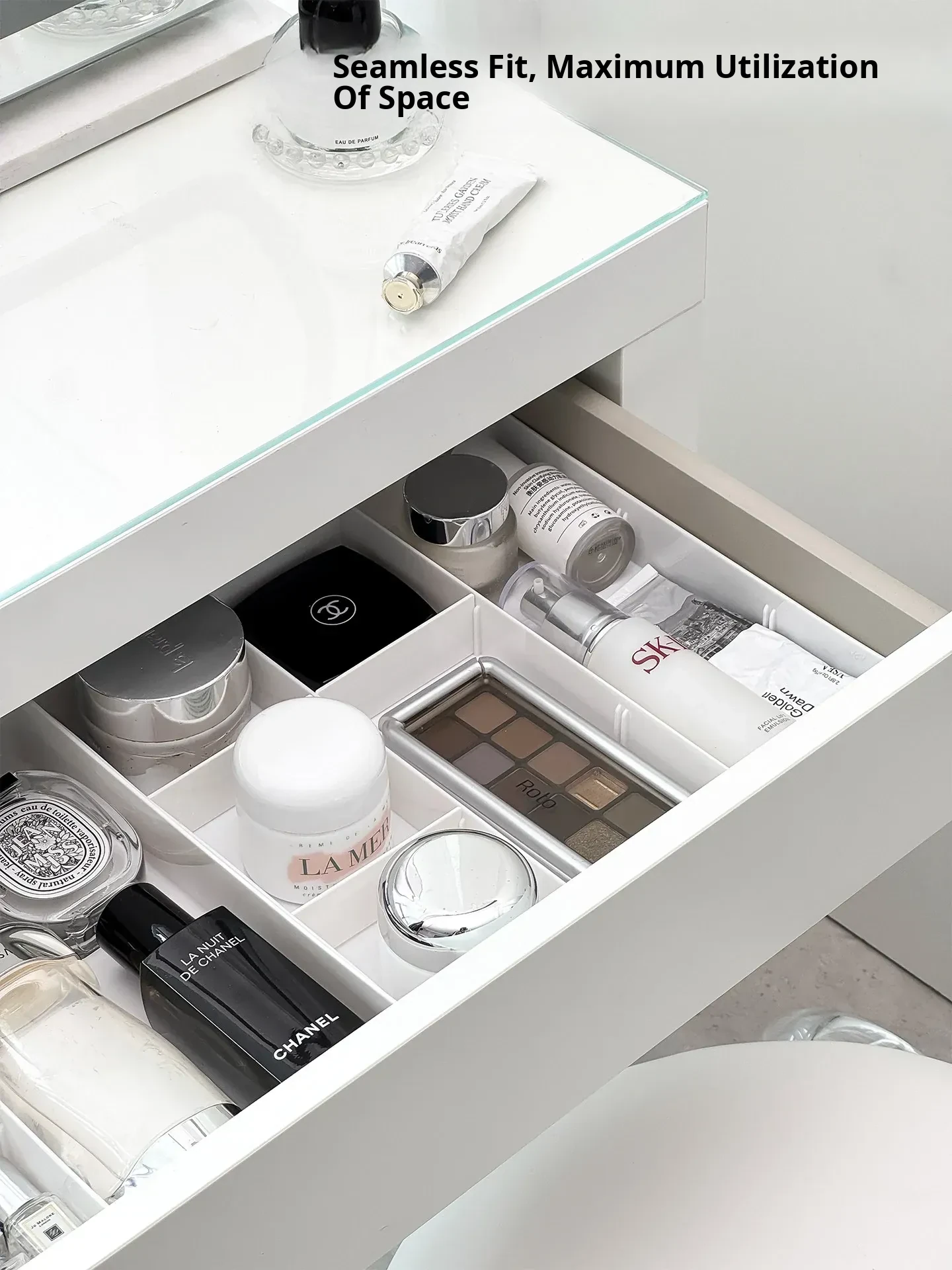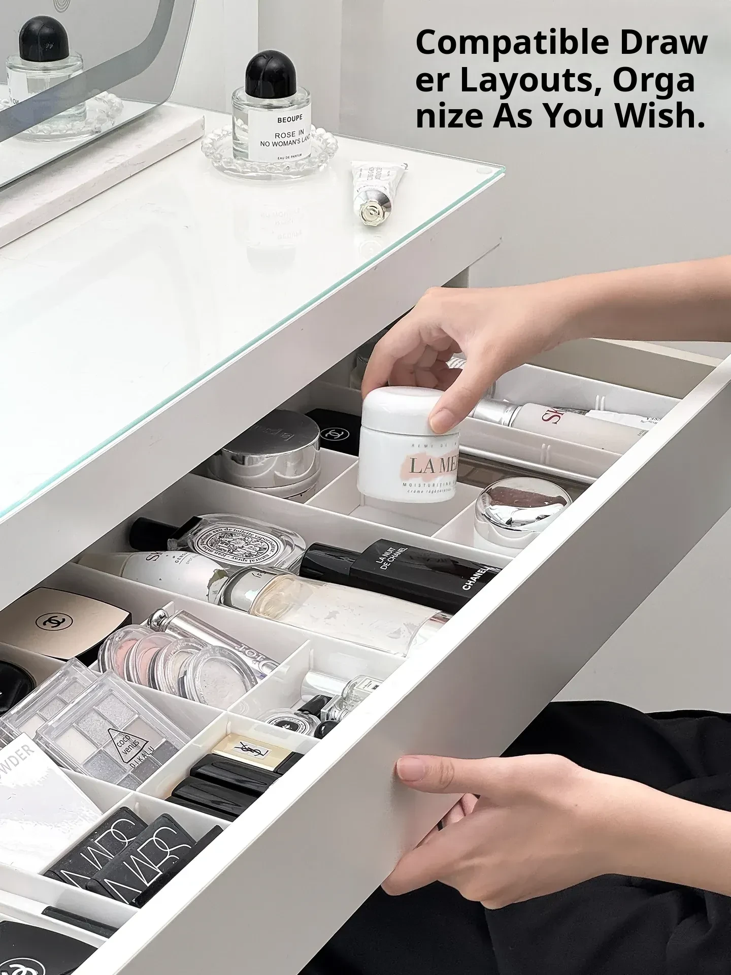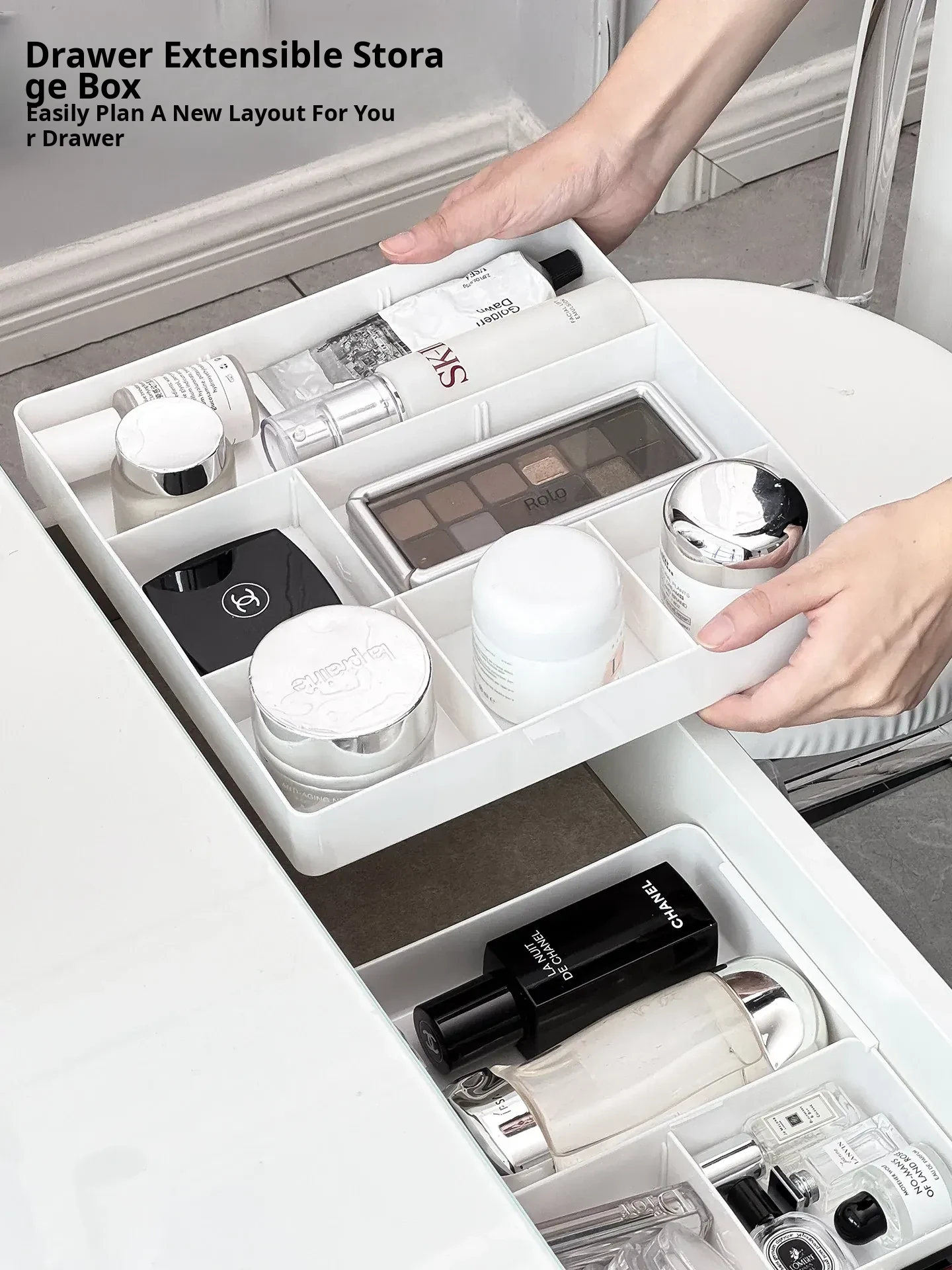 Expandable Drawer Organizer for Vanity - Makeup Storage Box with Dividers for Lipsticks and Brushes, Perfect for Neat and Efficient Makeup Organization