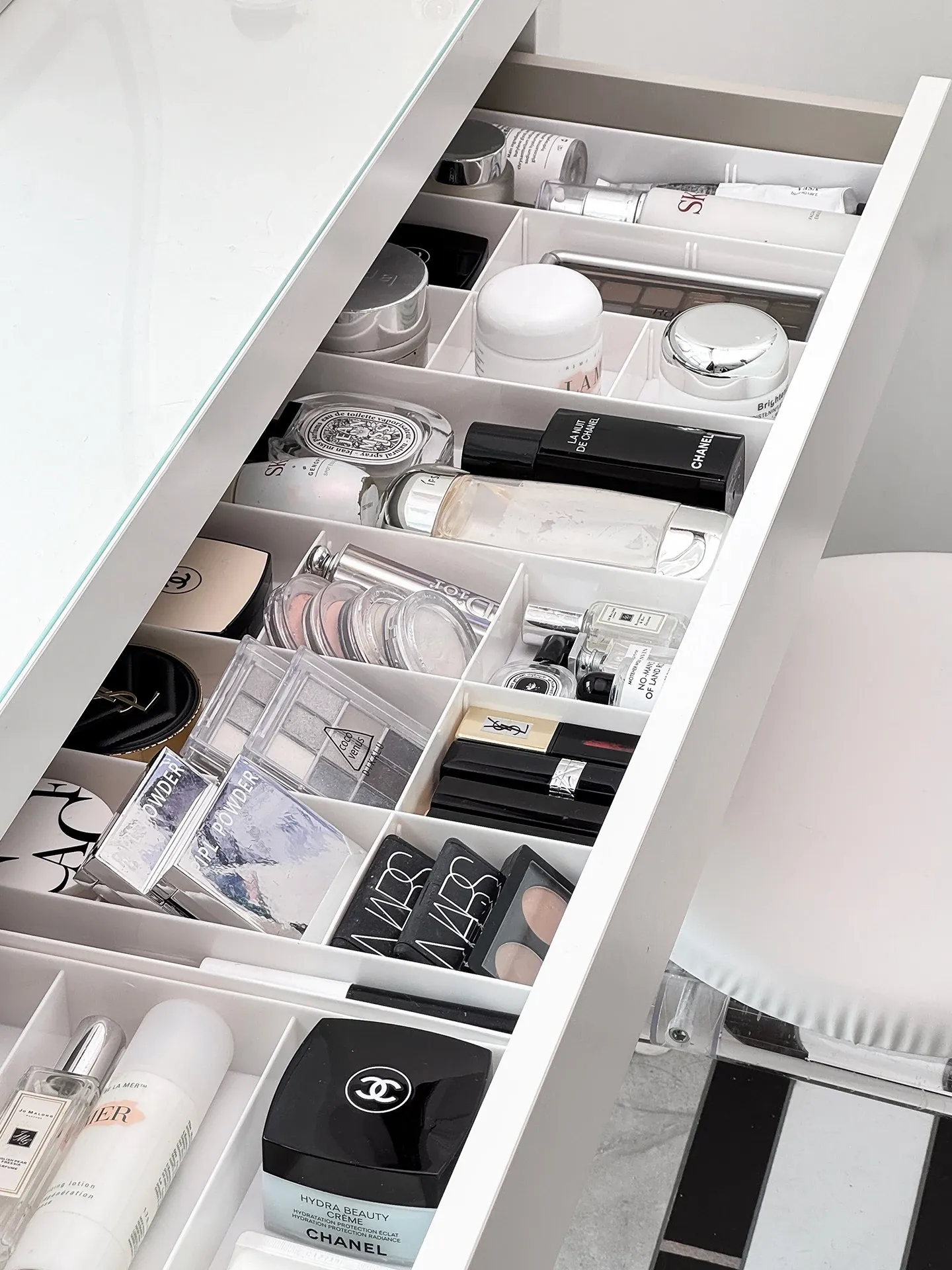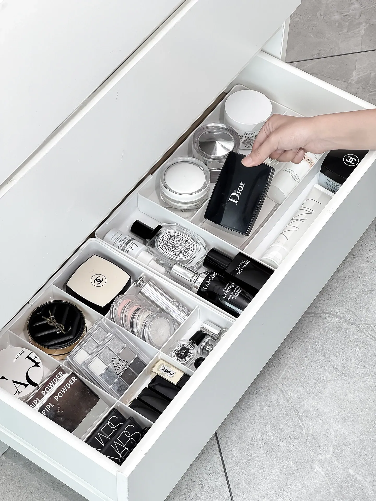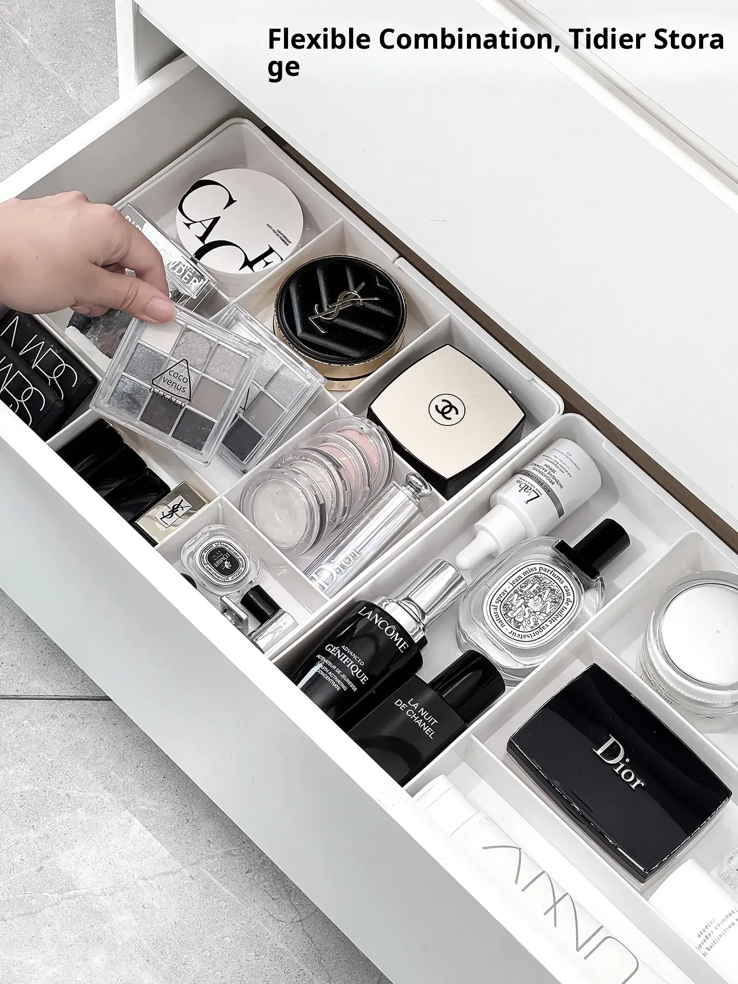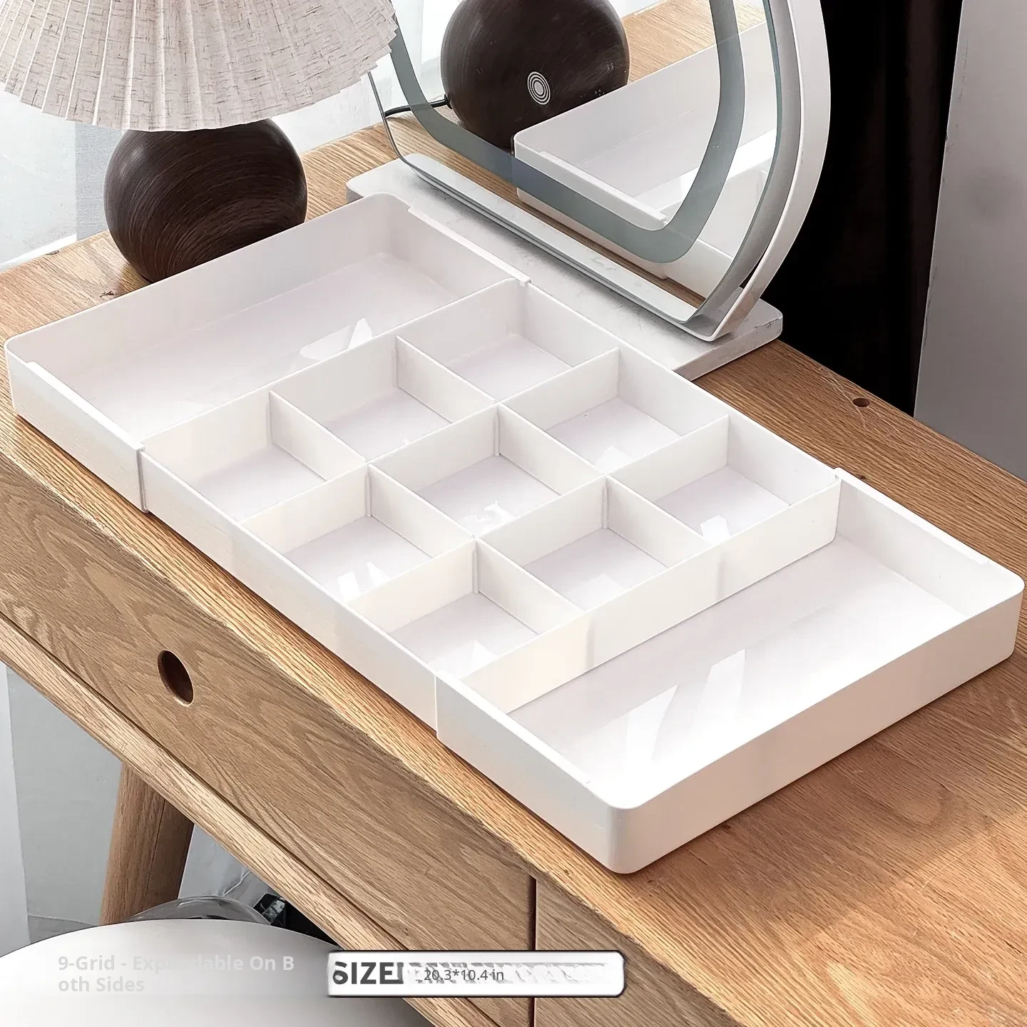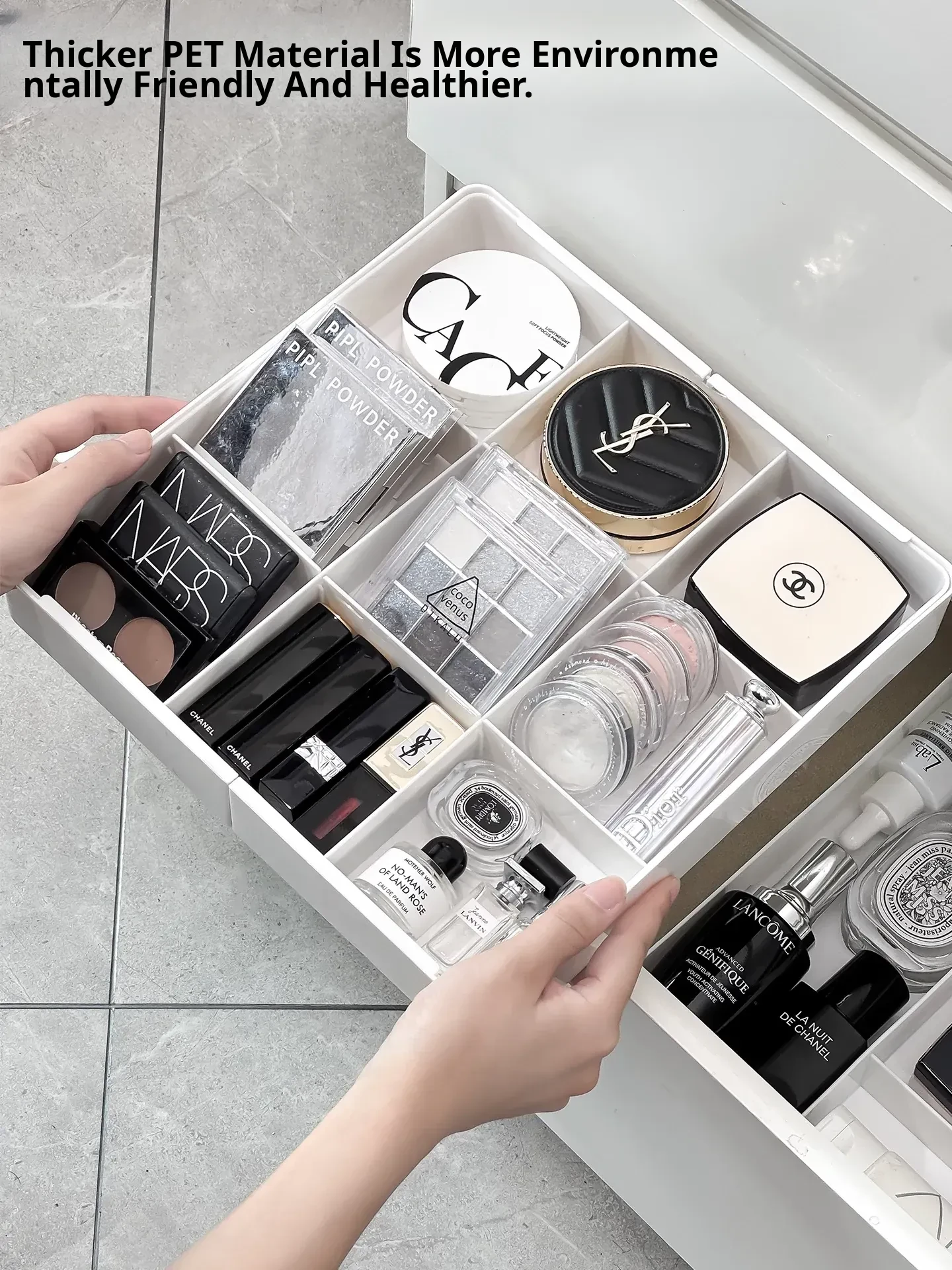 Expandable Drawer Organizer for Vanity - Makeup Storage Box with Dividers for Lipsticks and Brushes, Perfect for Neat and Efficient Makeup Organization
