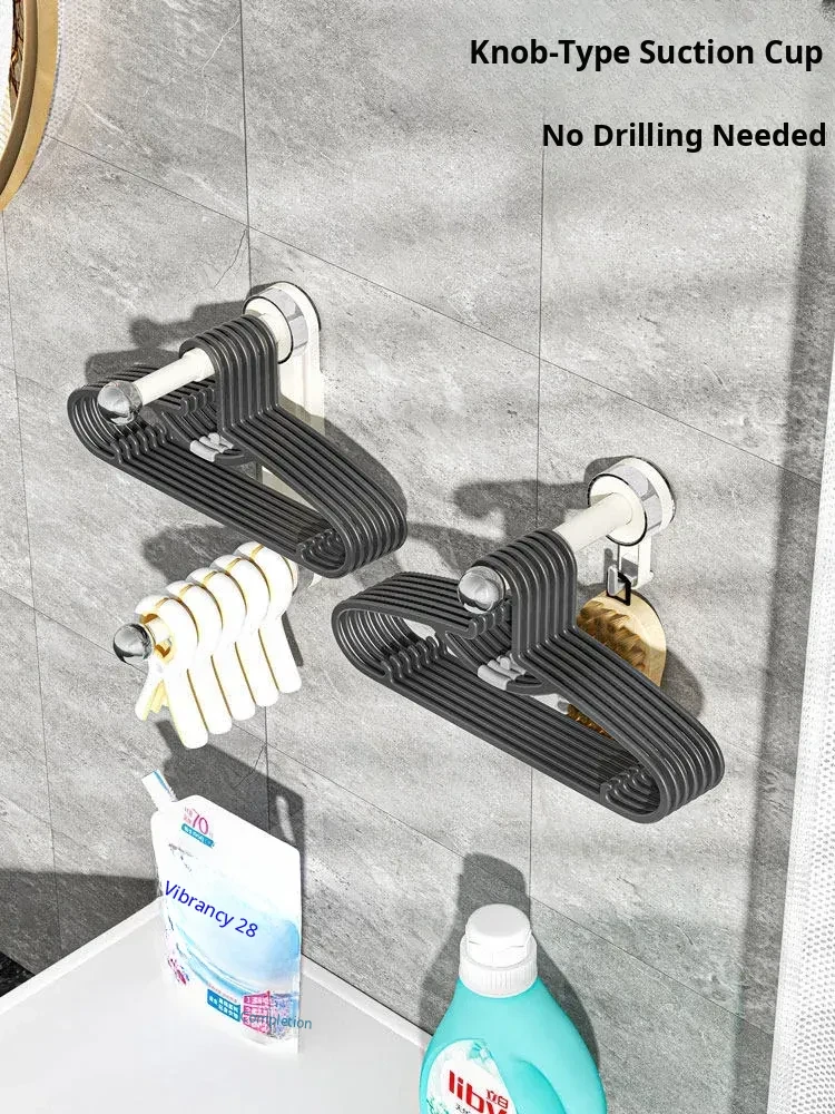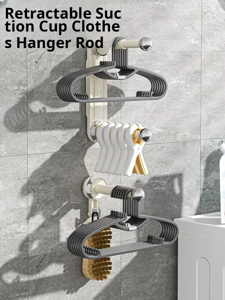 Innovative Suction Cup Clothes Hanger - No Drilling Multi-Functional Storage Rod, Adjustable Wall-Mounted Drying Rack for Home and Balcony Organization