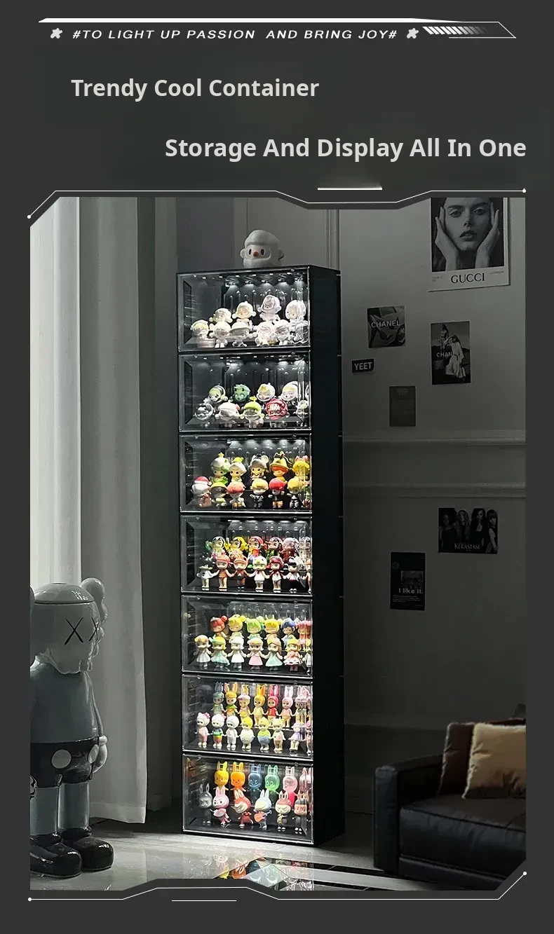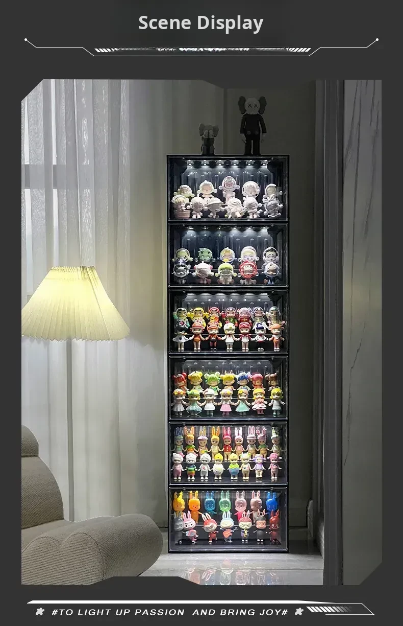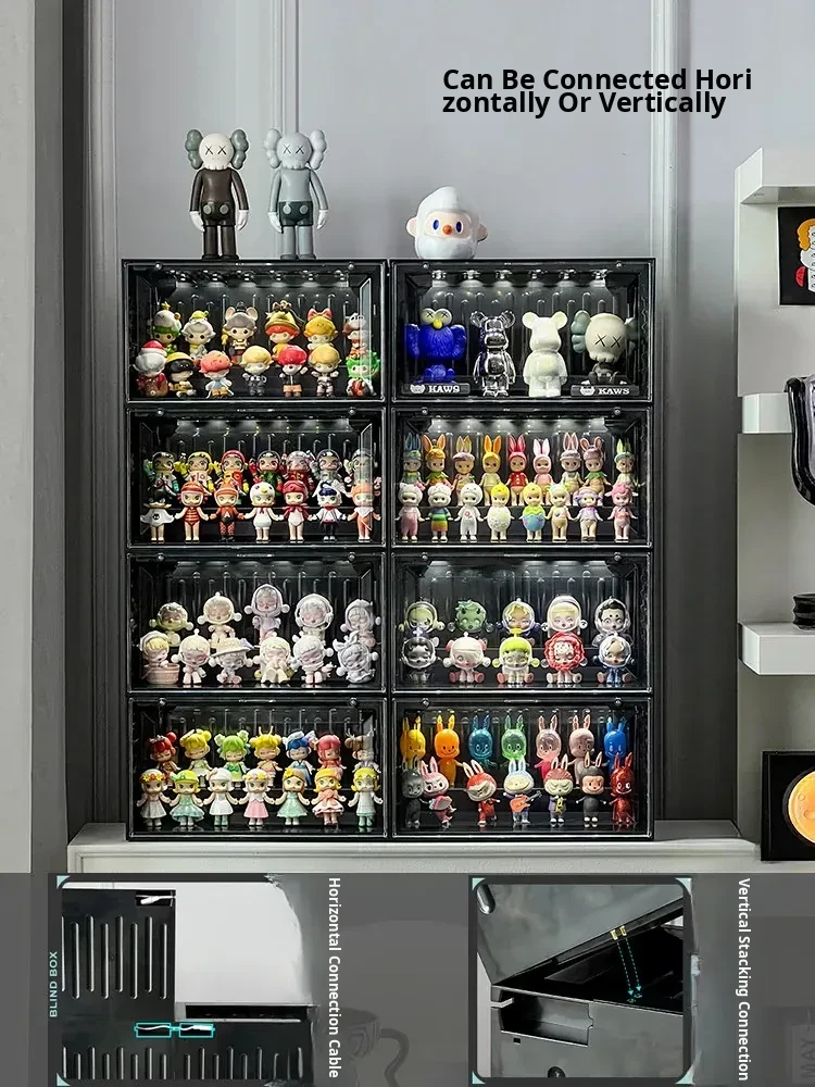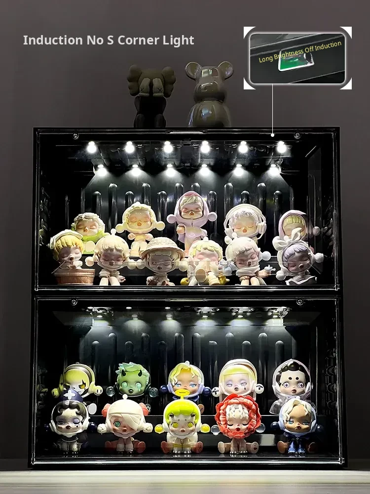 Interactive Glow Display Box - Acrylic Bubble Mart Container for Popmart Figurines and Collectibles Showcase