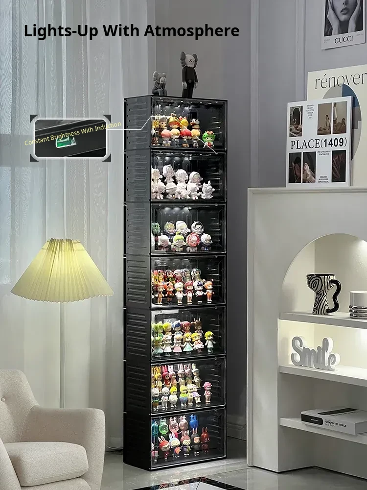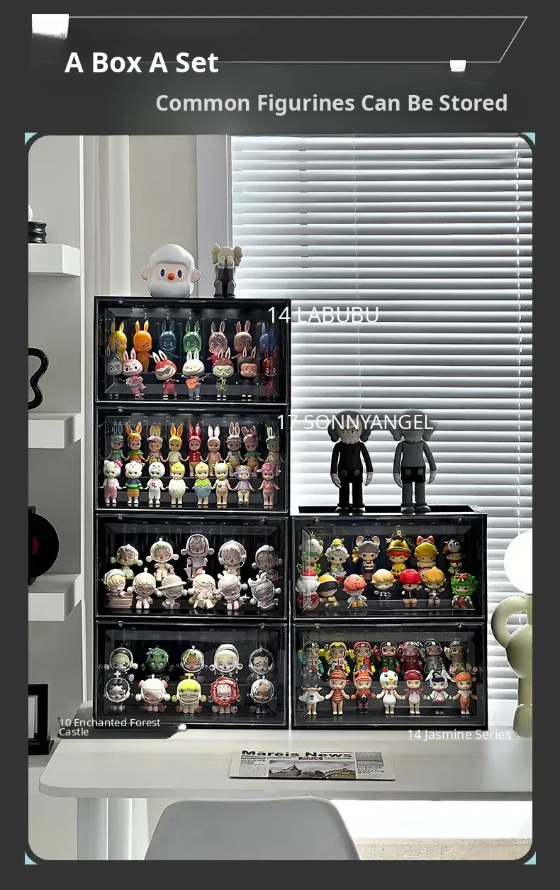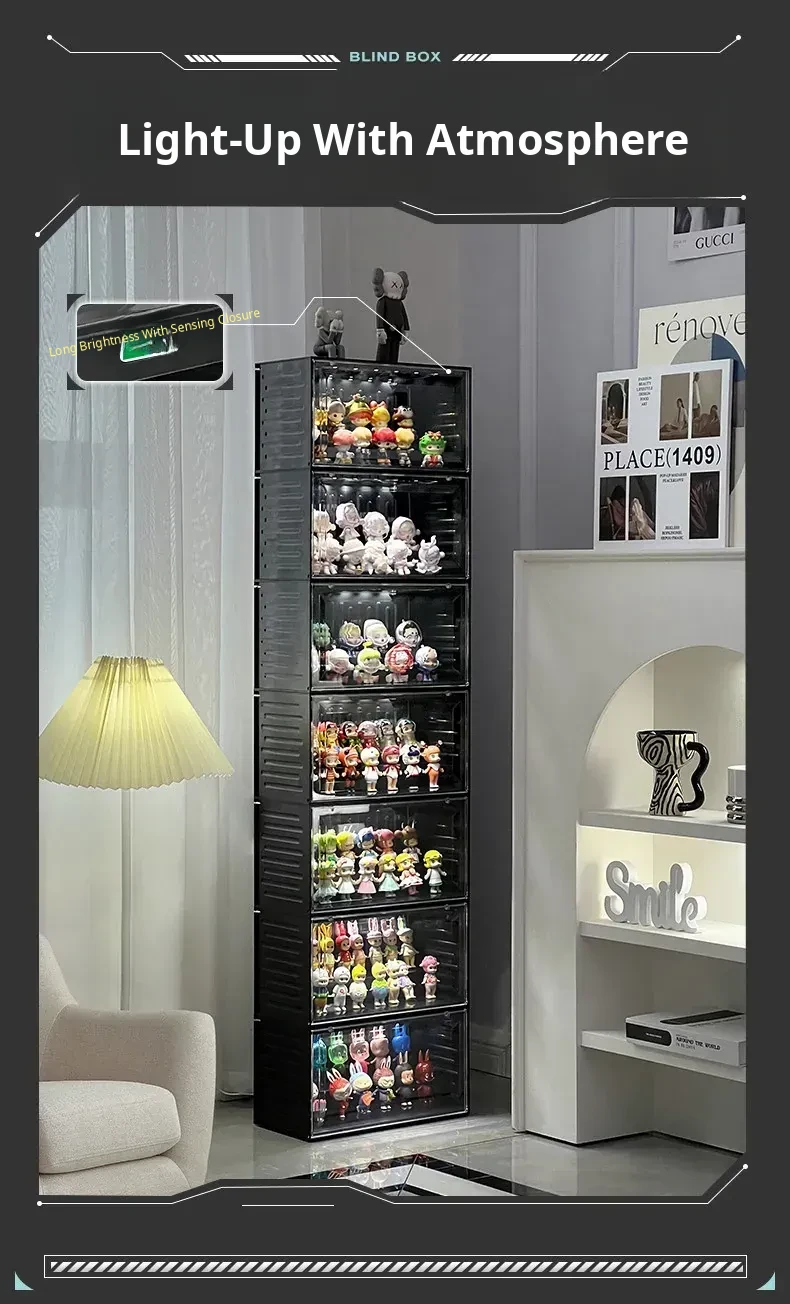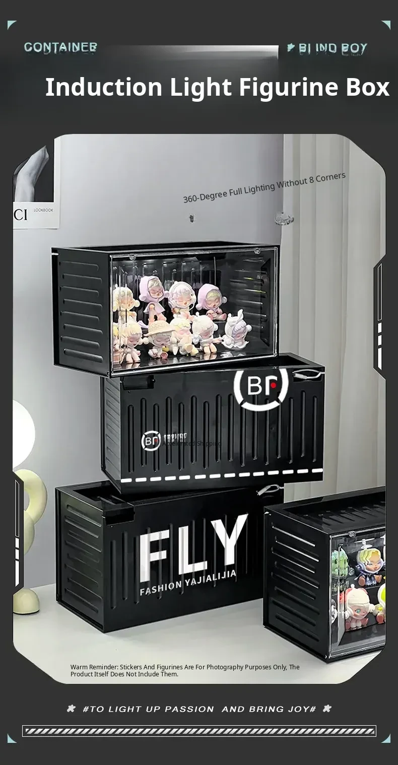 Interactive Glow Display Box - Acrylic Bubble Mart Container for Popmart Figurines and Collectibles Showcase