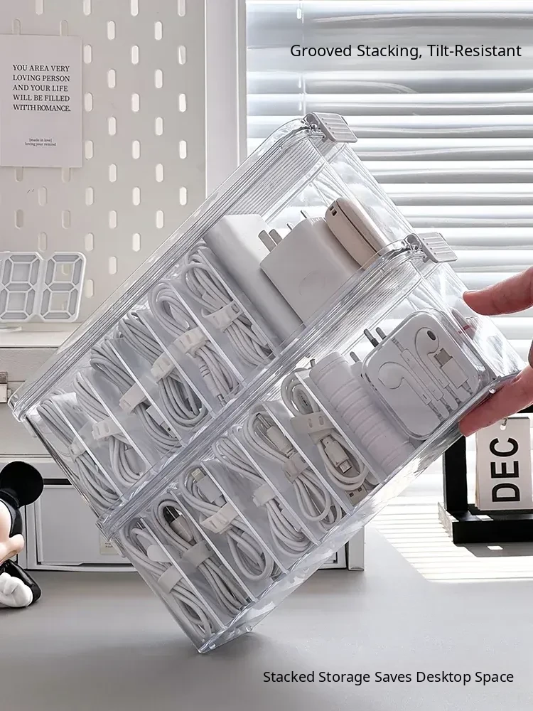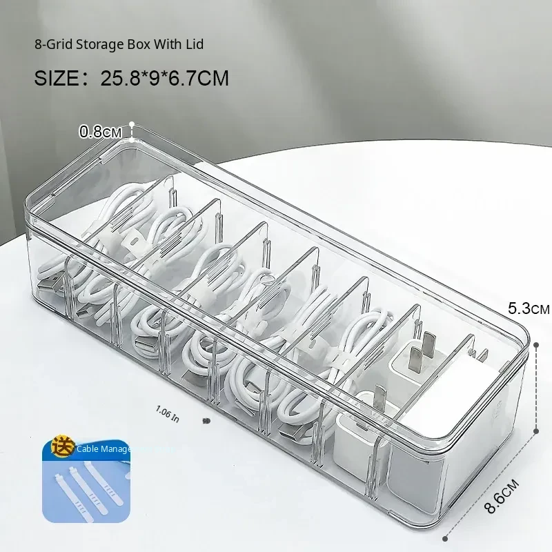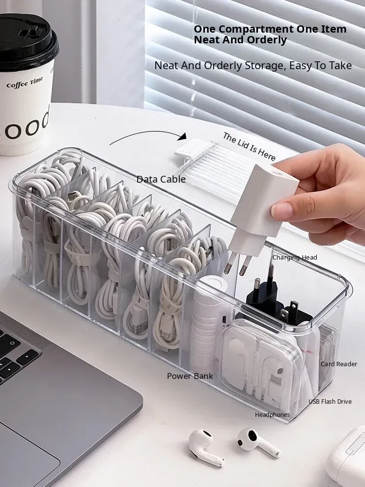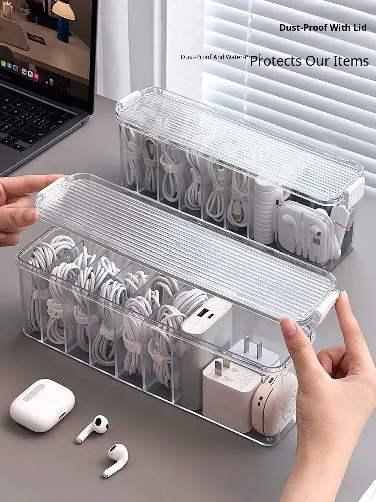 Large Capacity Data Cable Organizer Box - Desktop Charger and Power Line Management Solution for Home Use - Efficiently Separate and Organize Cables and Accessories