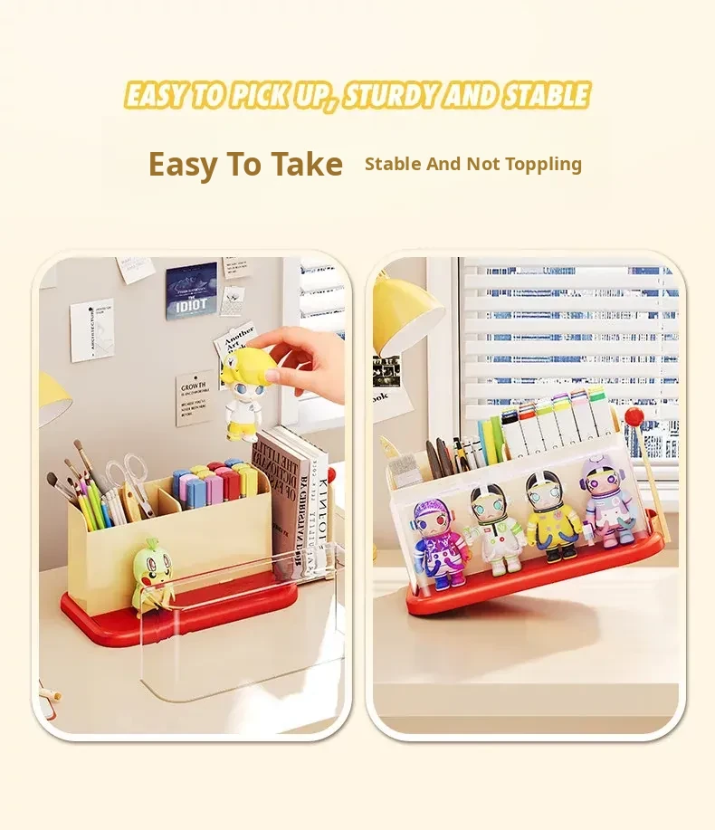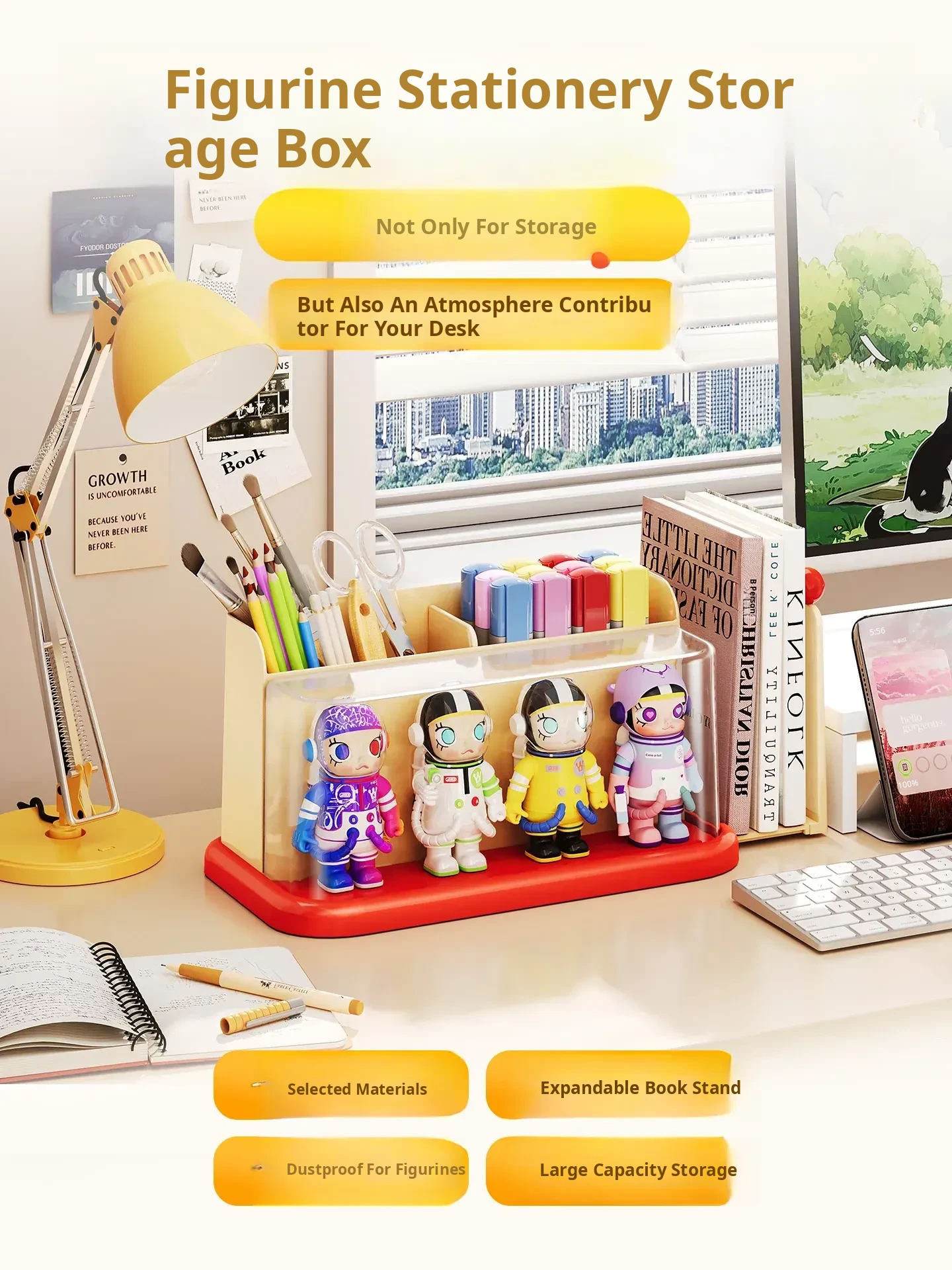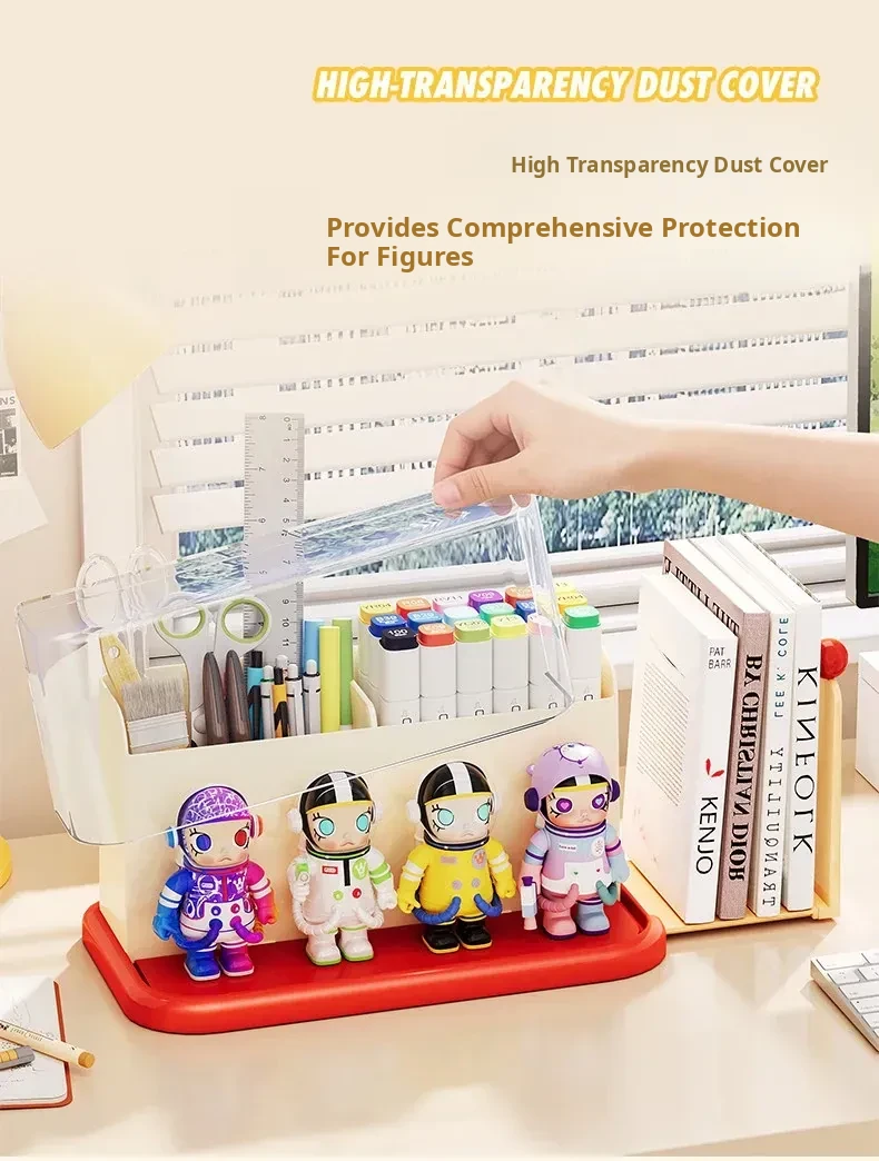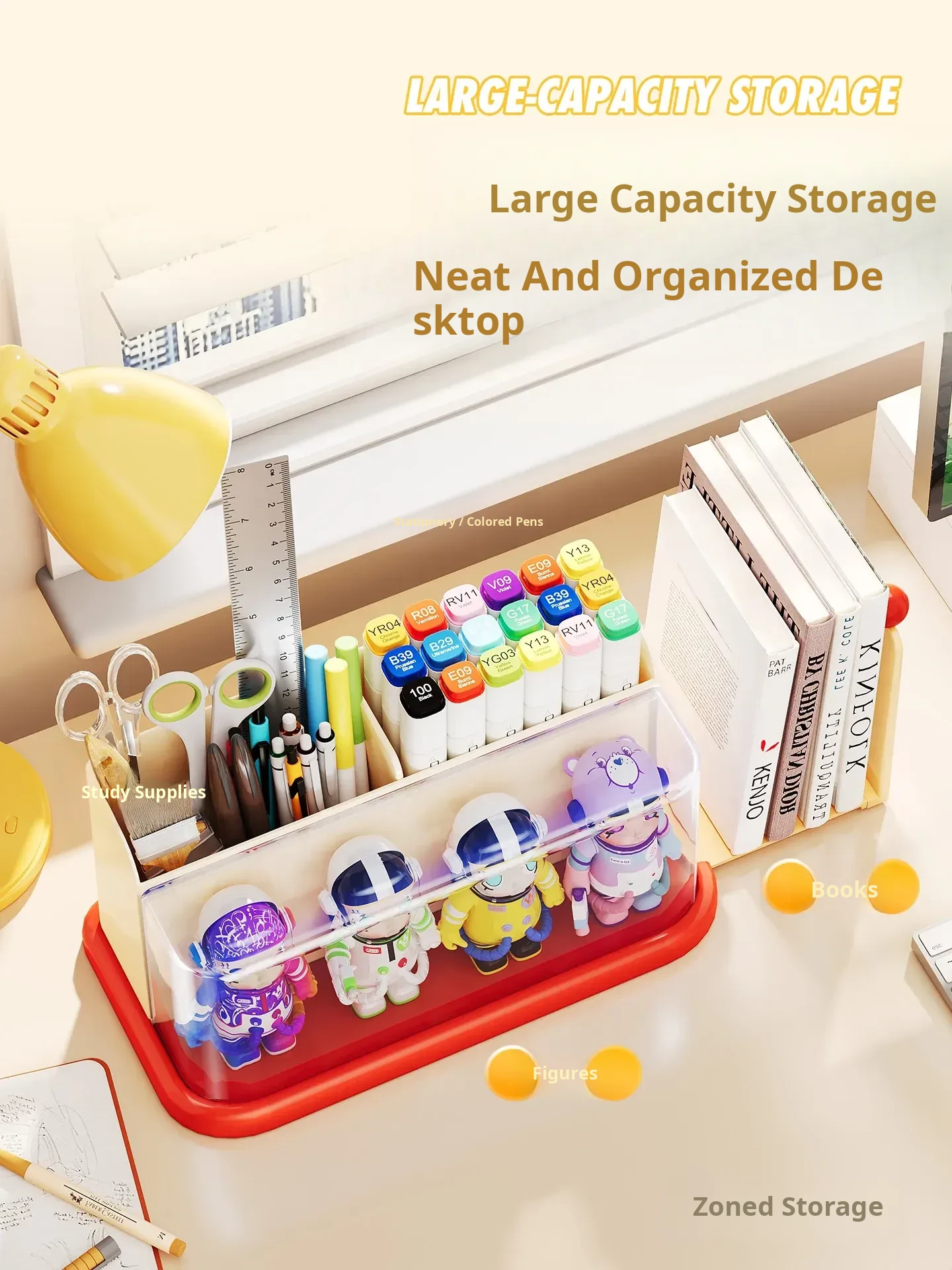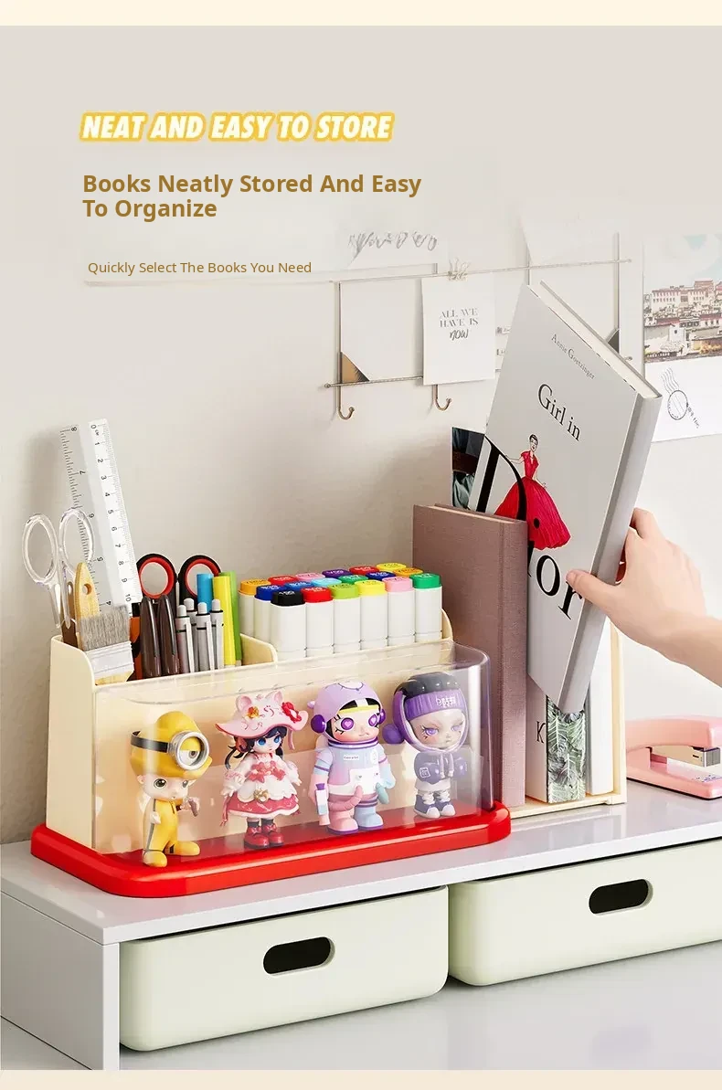 Large Capacity Desktop Organizer - Expandable Pen Holder and Book Stand, Perfect for Students! Ideal for Blind Box Displays and Workspace Storage Solutions. Keep Your Desk Tidy and Stylish!