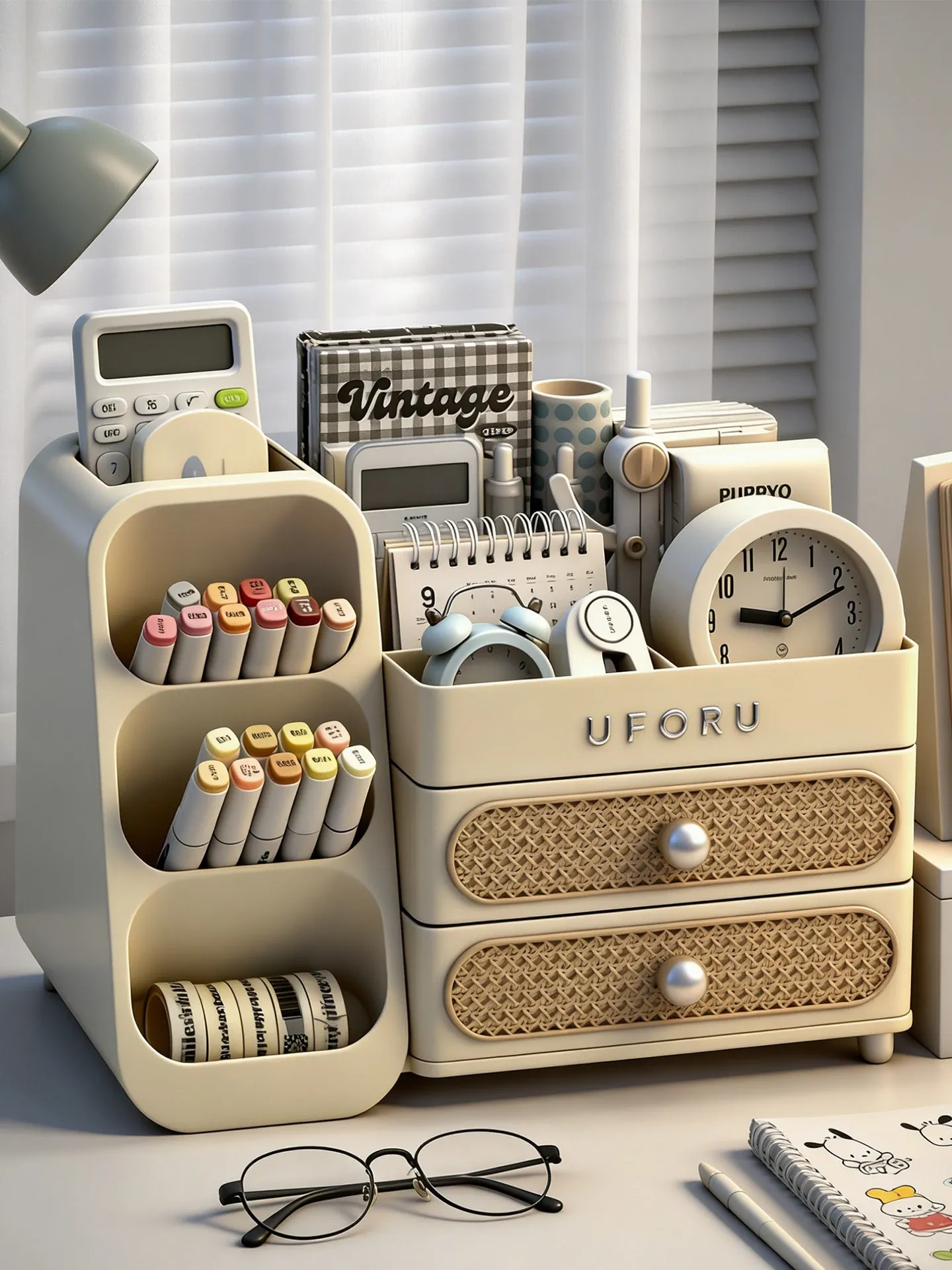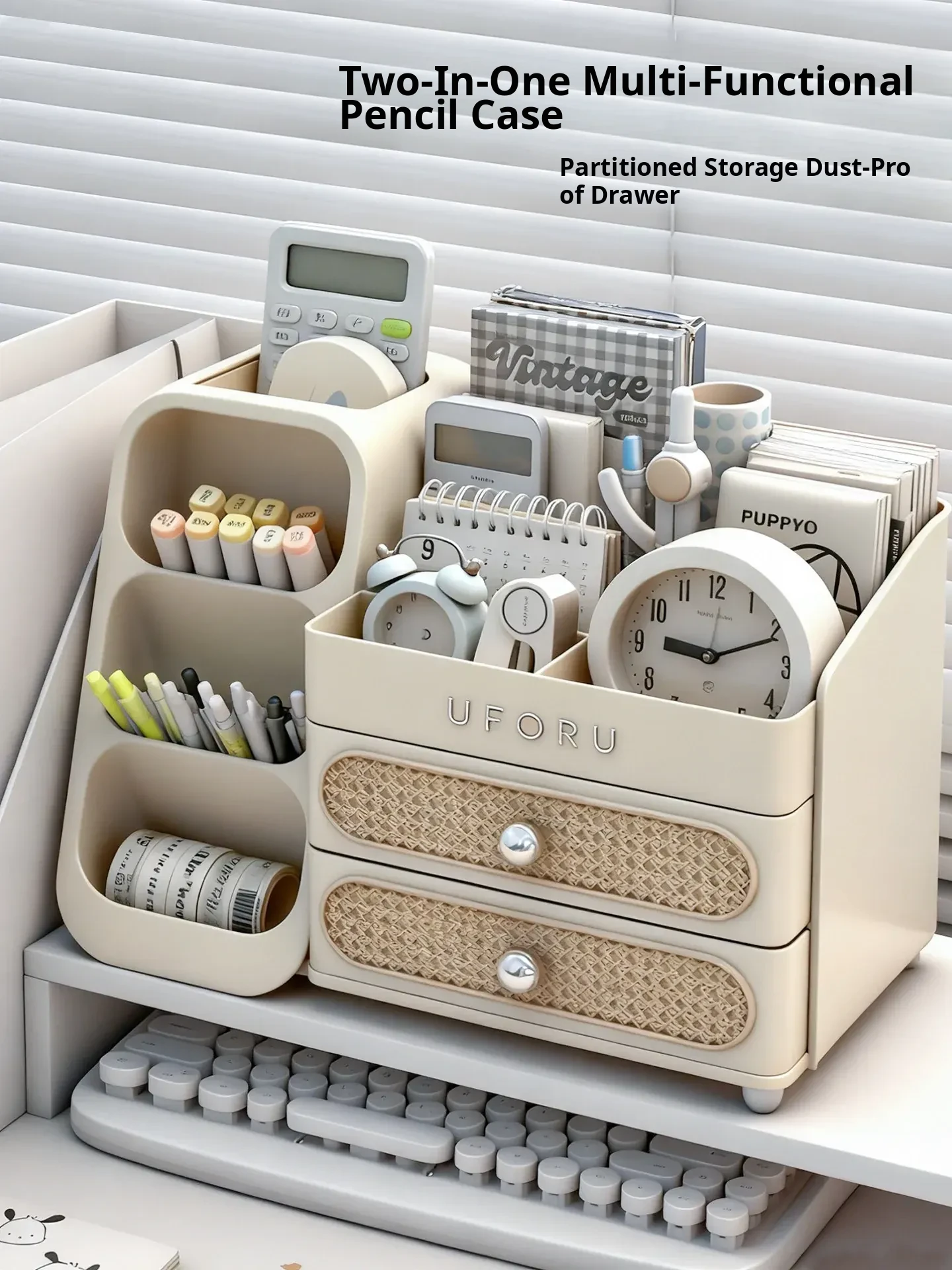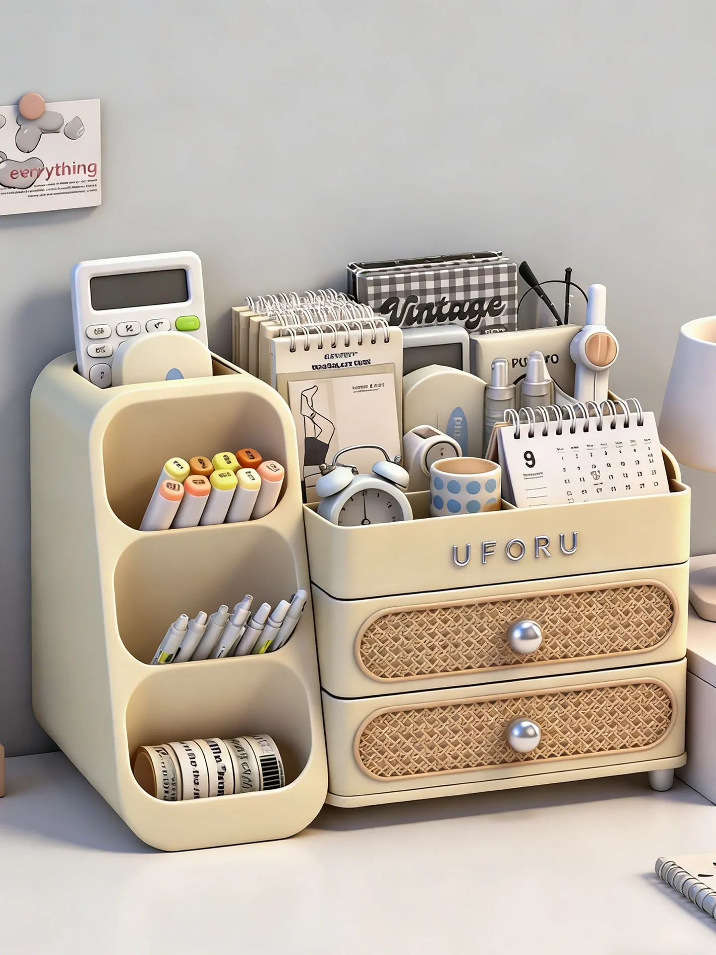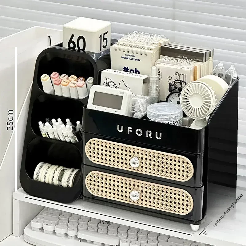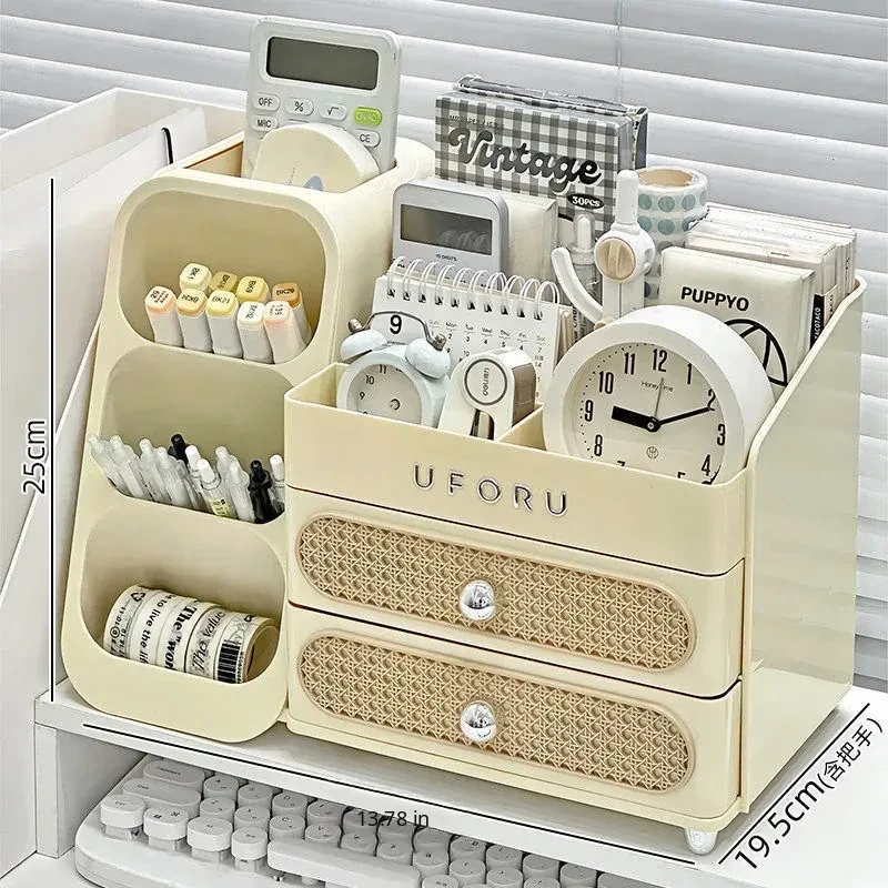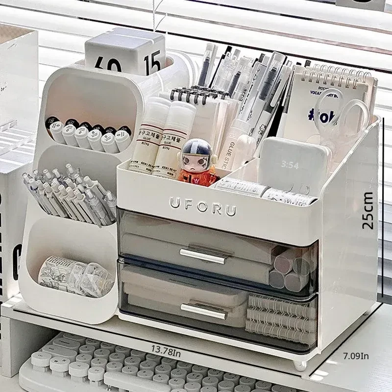 Large Capacity Desktop Organizer for Stationery - Stylish Slanted Pen Holder with Drawers for Students, Perfect for Notebooks and Sticky Notes, Your Ultimate Desk Organizer!