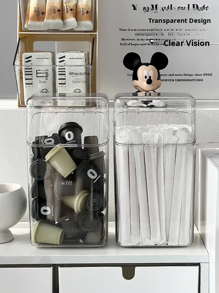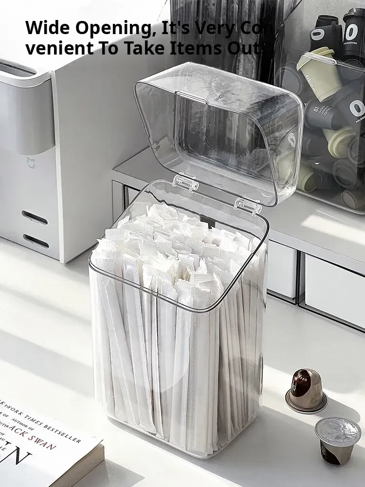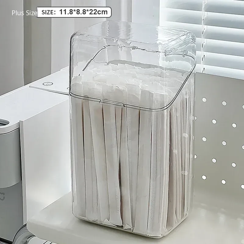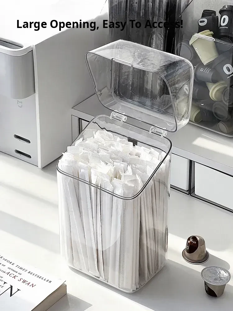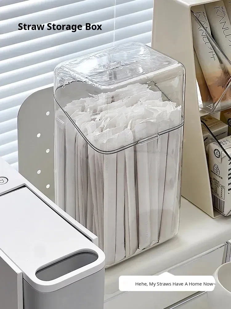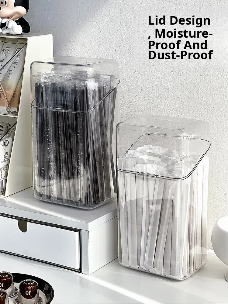 Large Capacity Dust-Proof Storage Box for Disposable Straws and Spoons with Lid - Perfect Organizer for Capsule Coffee, Milk Tea, and More!