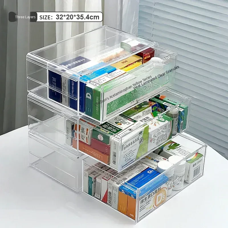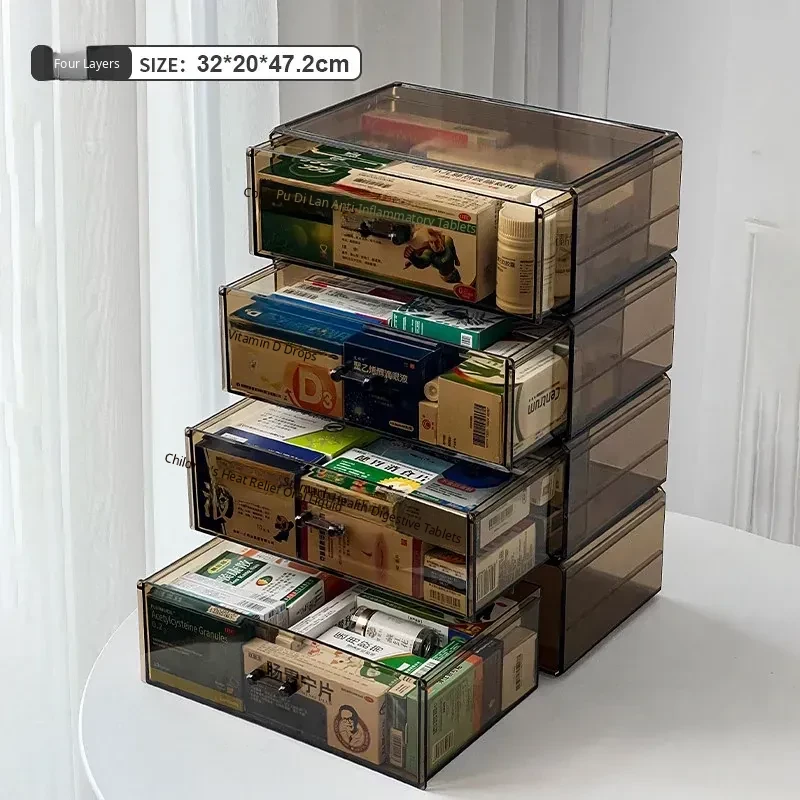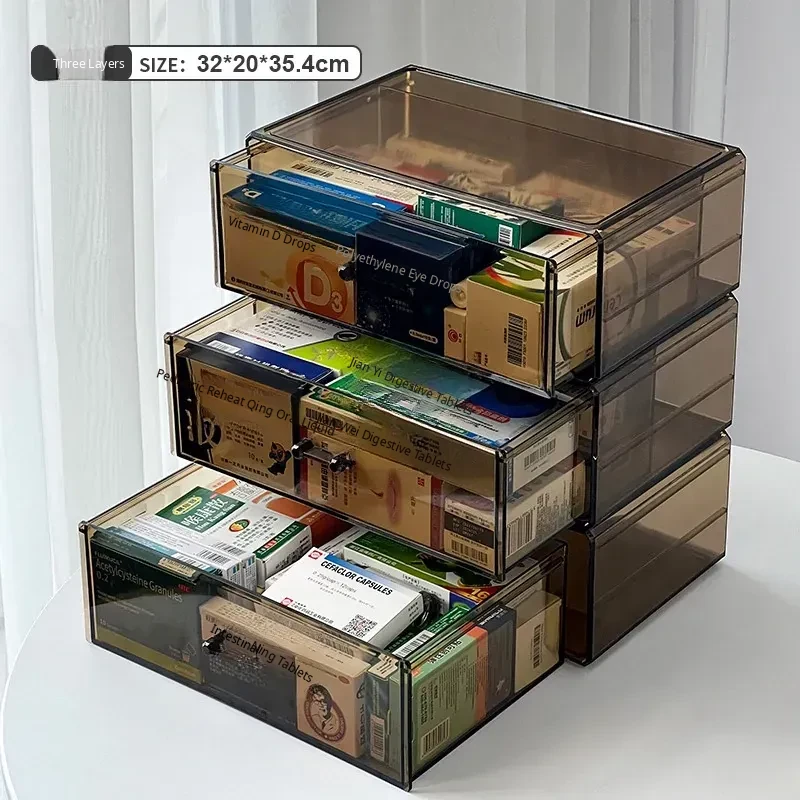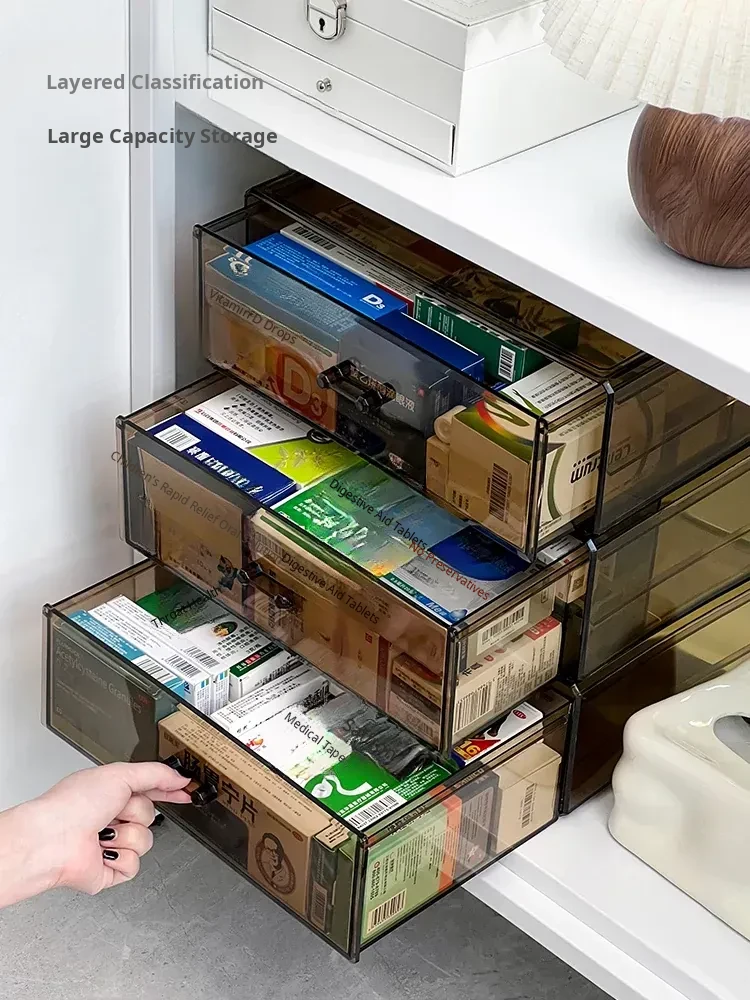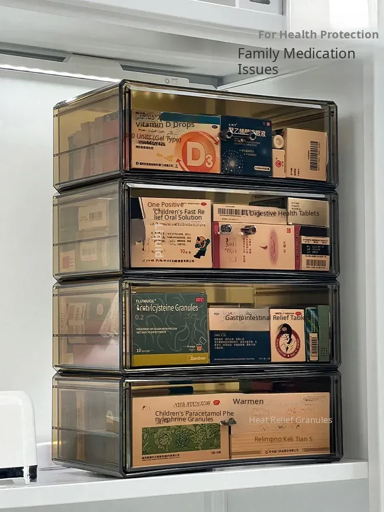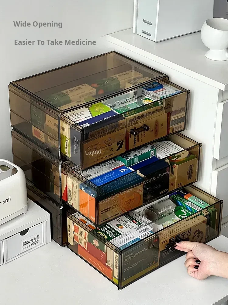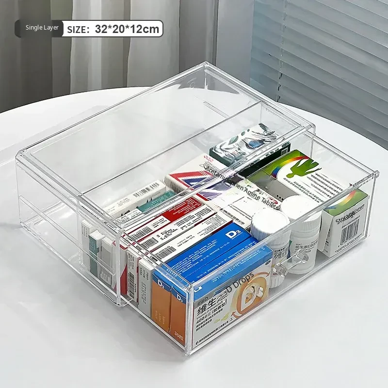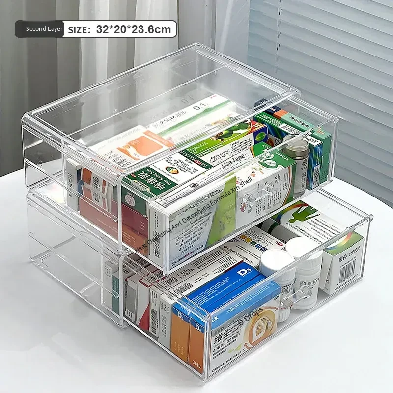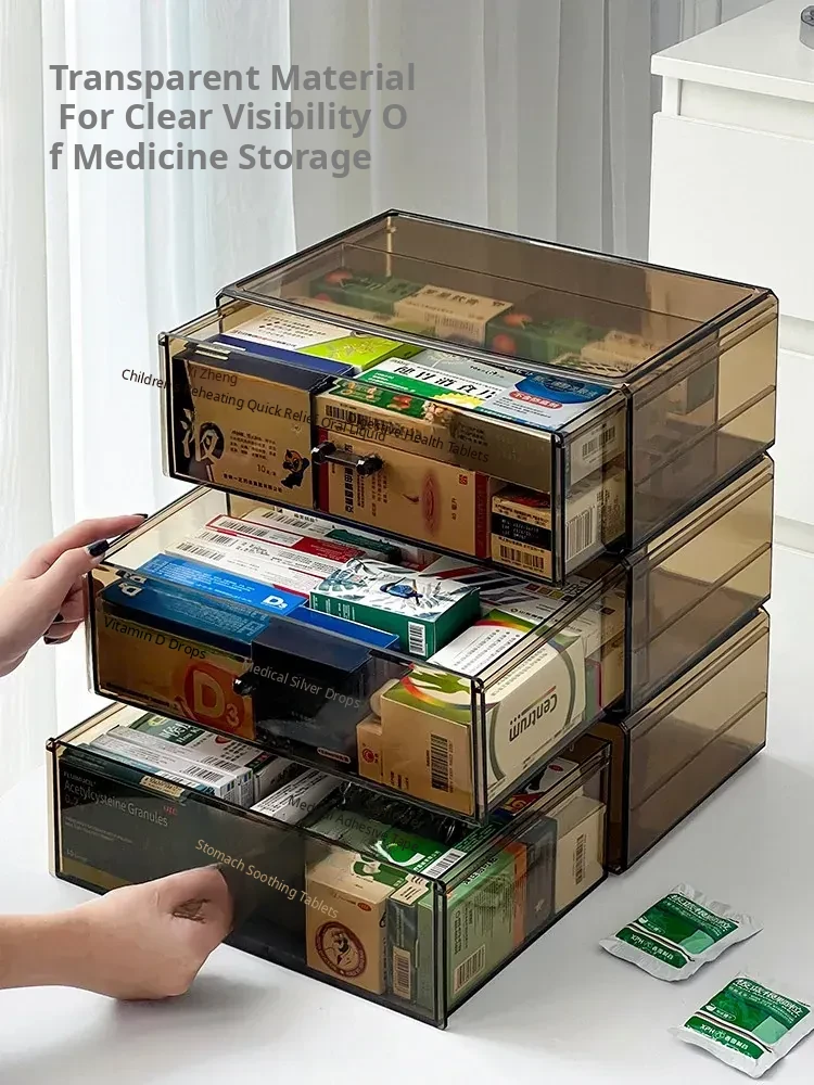 Large Capacity Home Medicine Storage Box - Family First Aid Organizer with Dustproof Drawer for Medications and Supplies