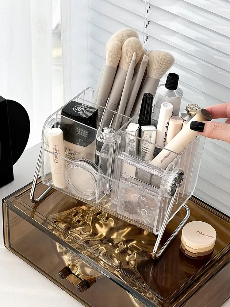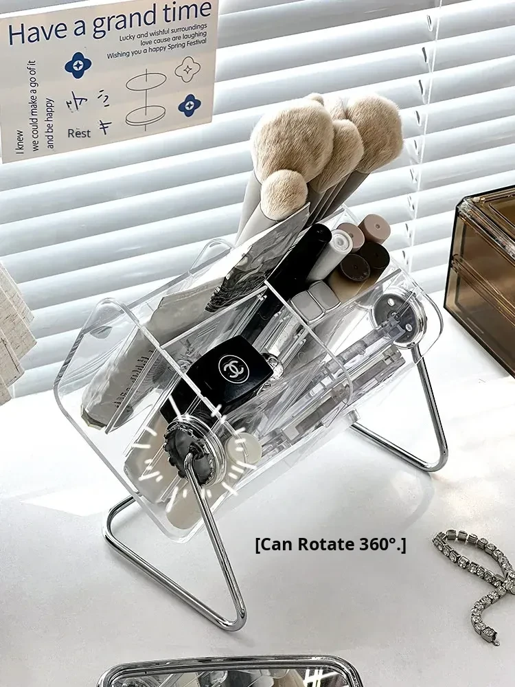 Large Capacity Rotating Brush Cylinder Makeup Organizer - Stylish Desktop Storage for Lipsticks, Lip Gloss, and Eyebrow Pencils - Perfect for Your Vanity!