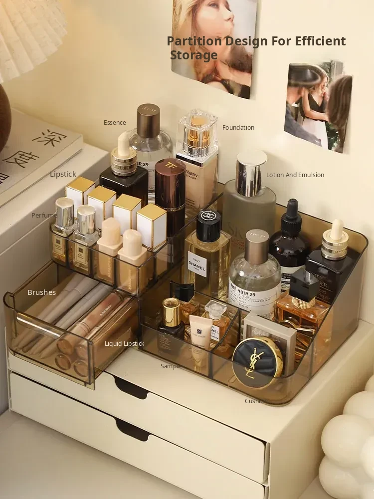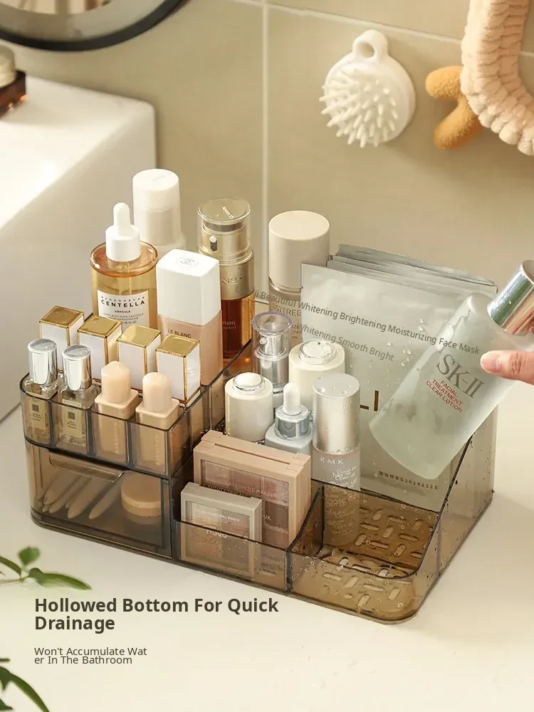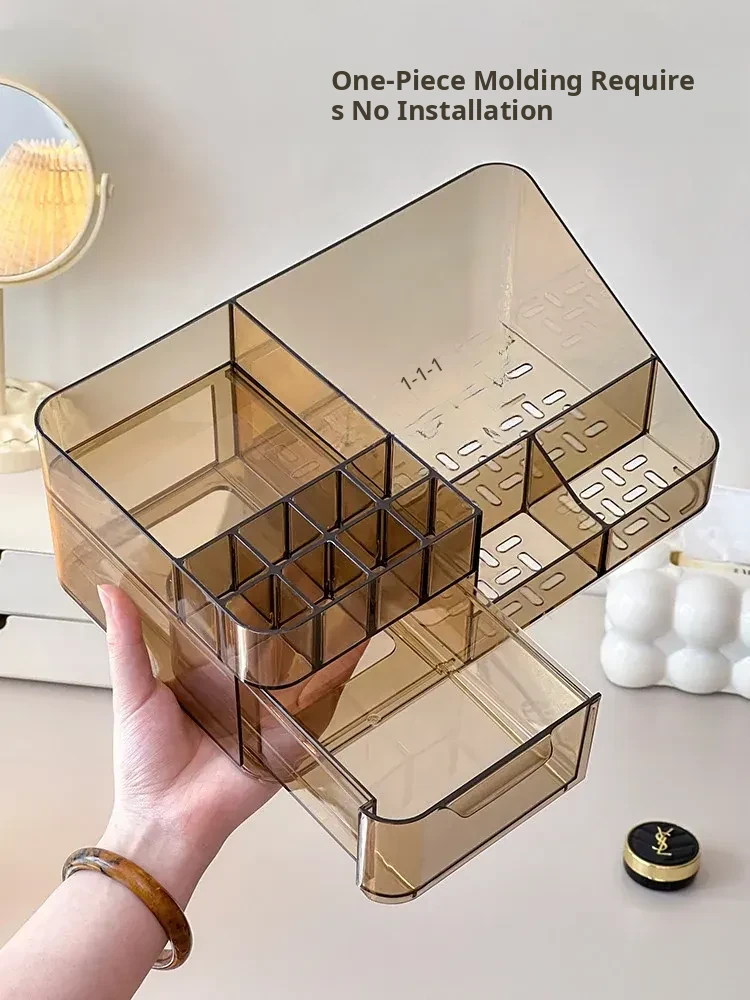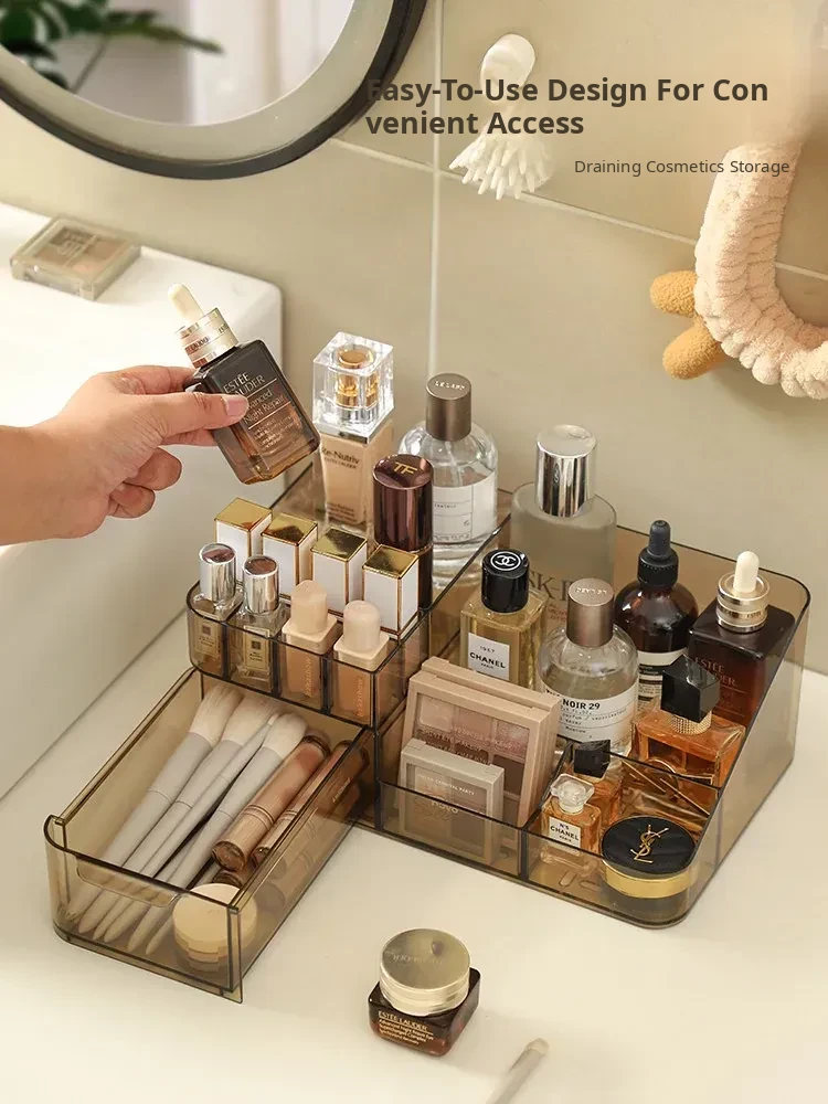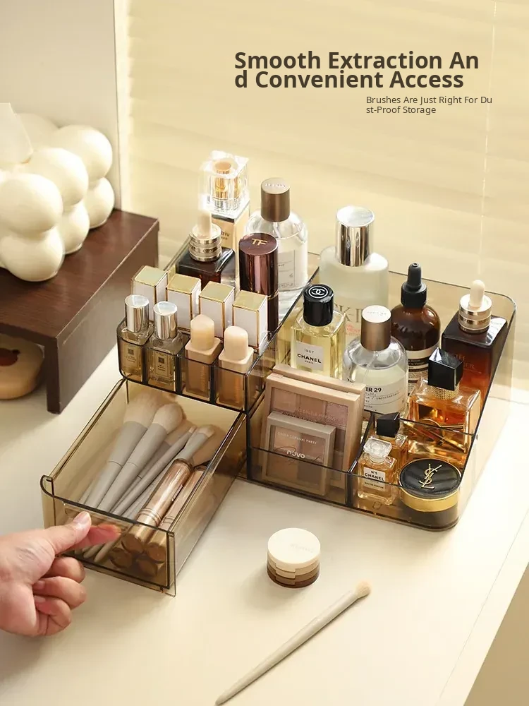 Luxury Acrylic Makeup Organizer for Desktop - Stylish Storage Box for Cosmetics, Skincare, and Lipsticks - Elegant Vanity Drawer with Premium Feel