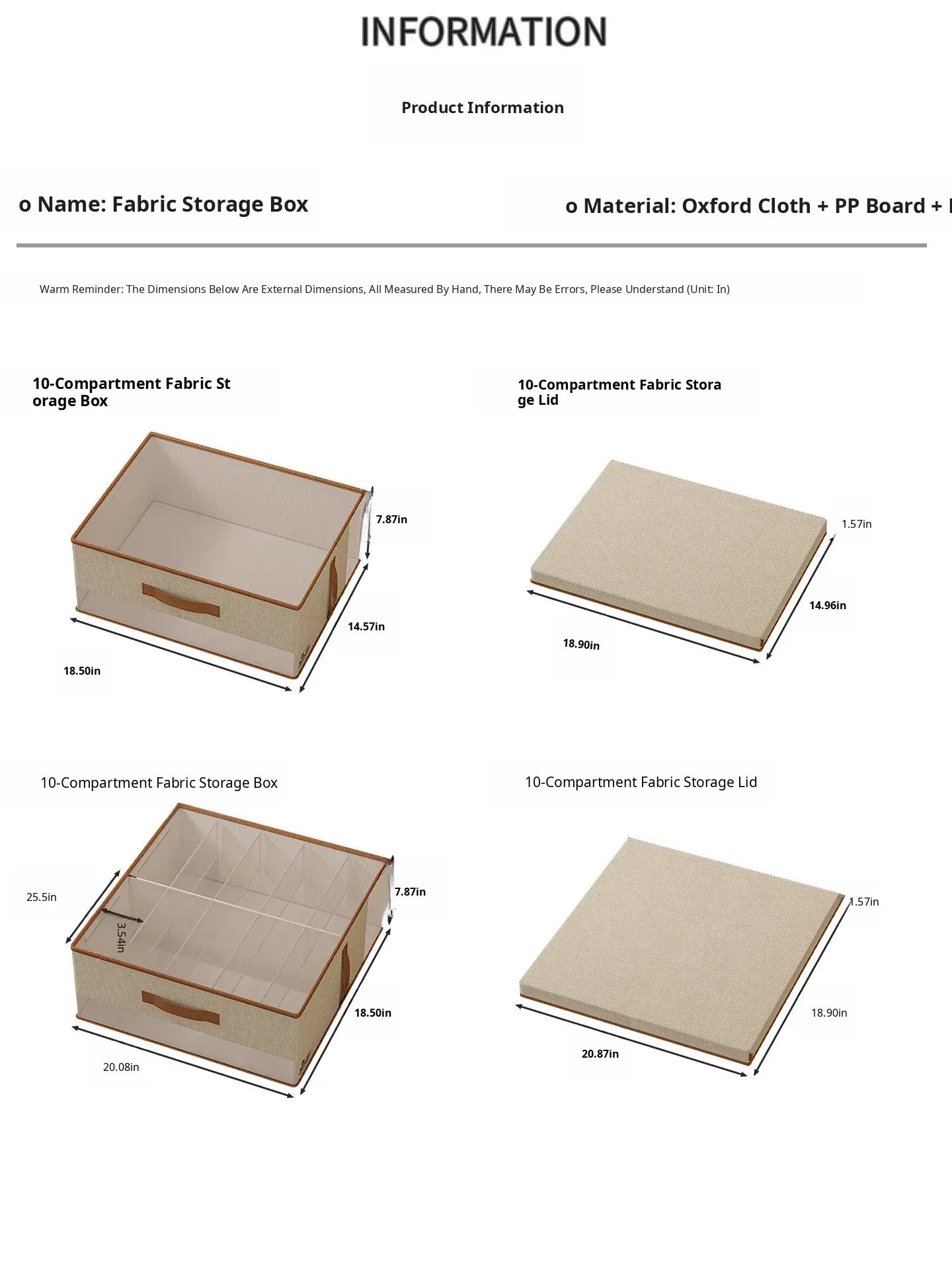 [10 Compartments with Lid/Can Hold Bag Straps] Oxford Cloth Bag Storage Box