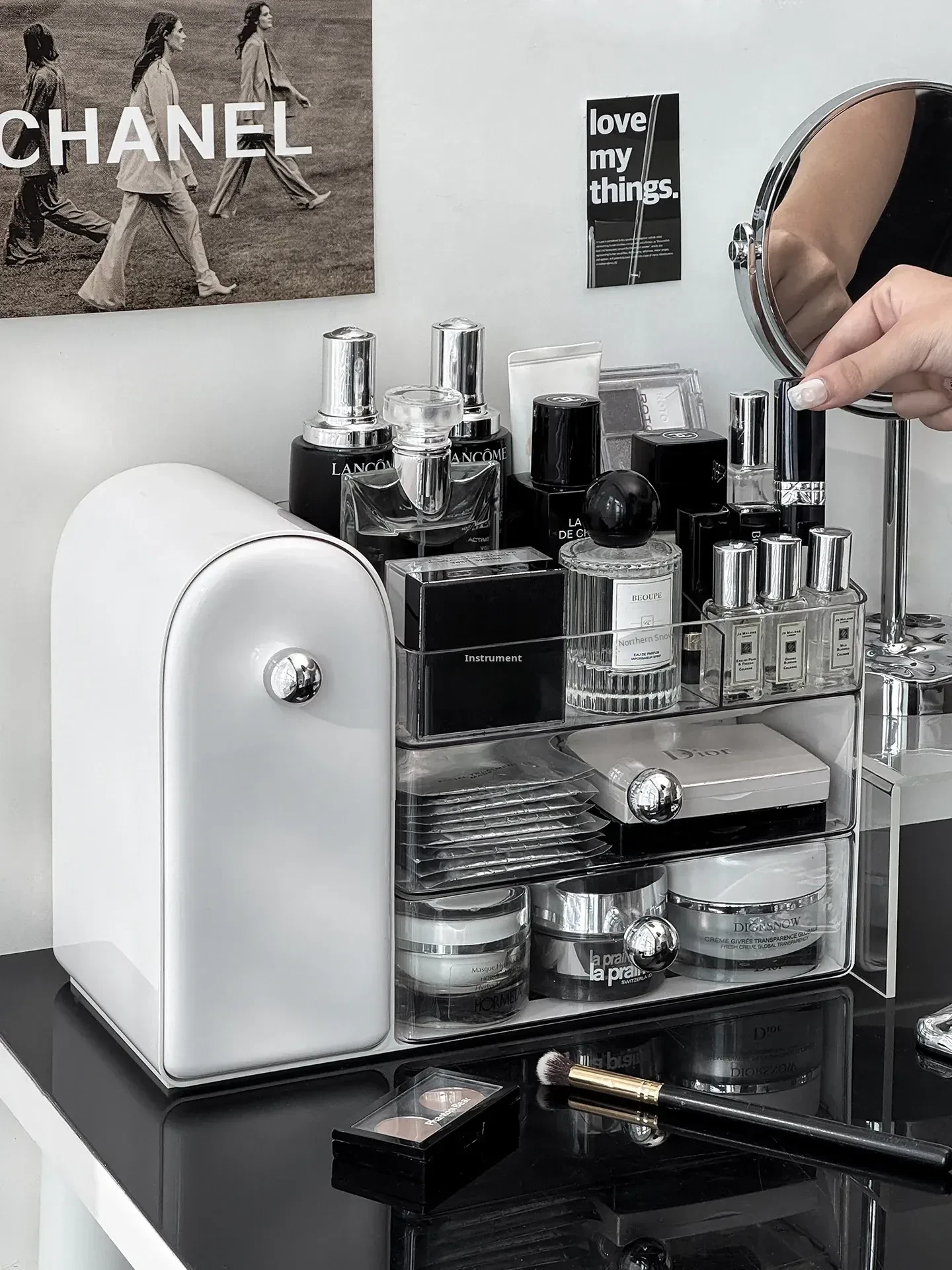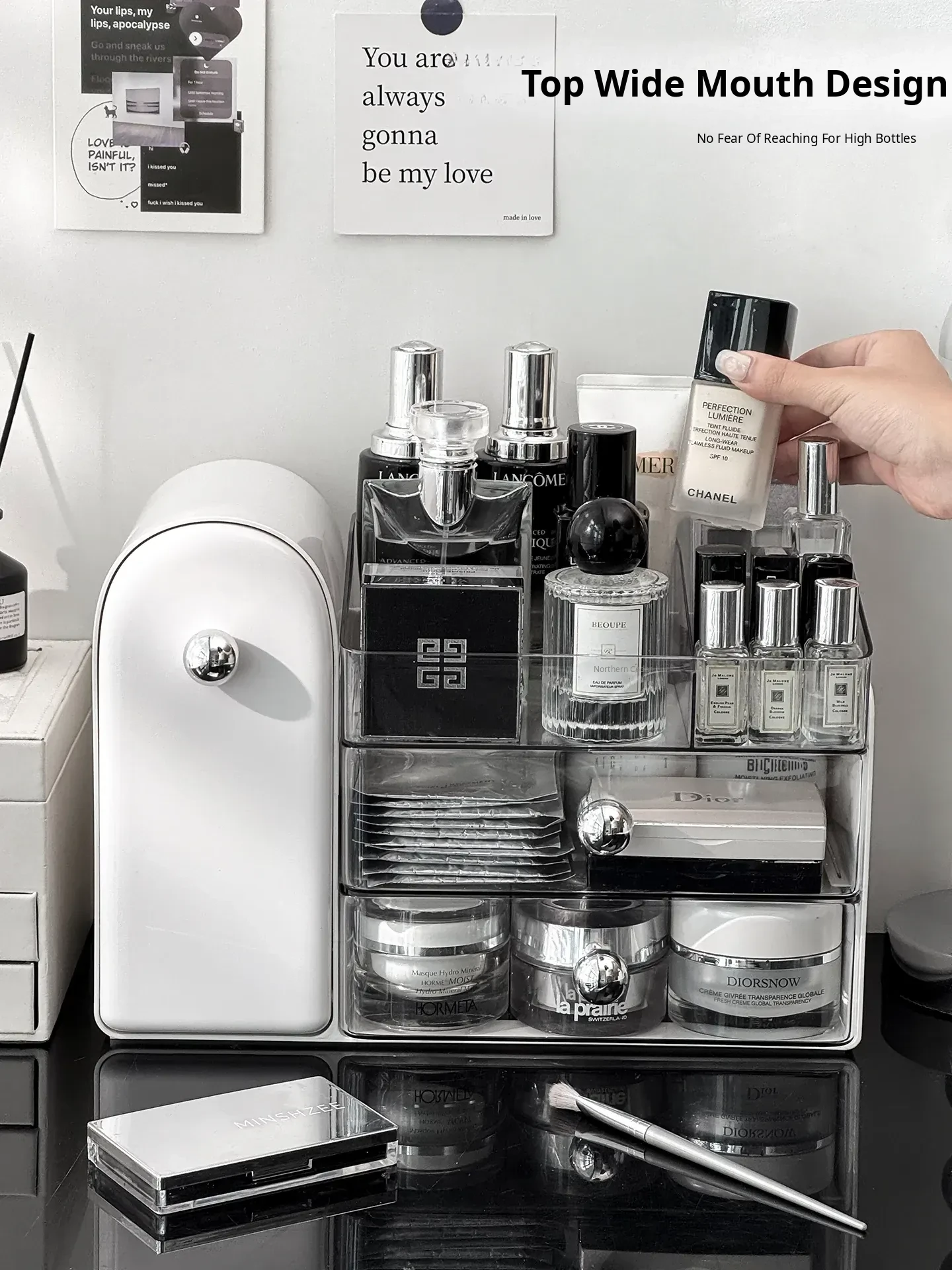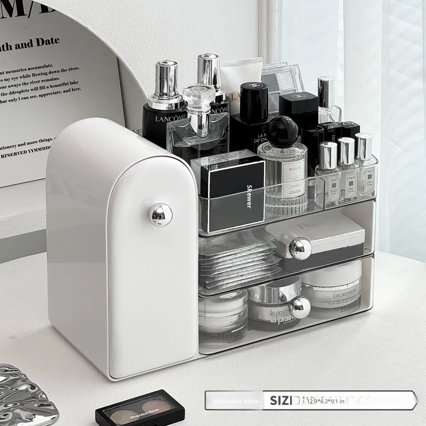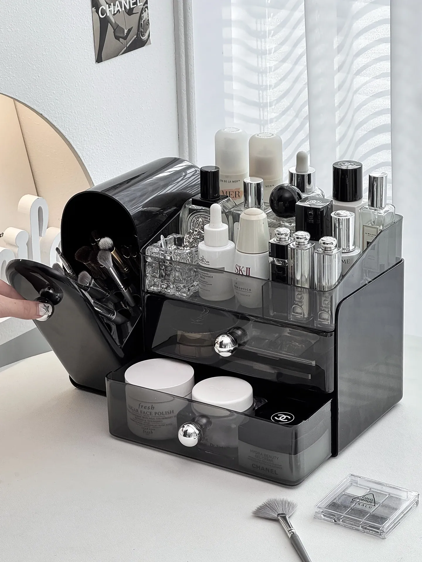 Luxury Makeup Organizer - Stylish Desktop Slanted Dustproof Brush Holder, Perfect for Vanity, with Space for Perfumes and Lipsticks