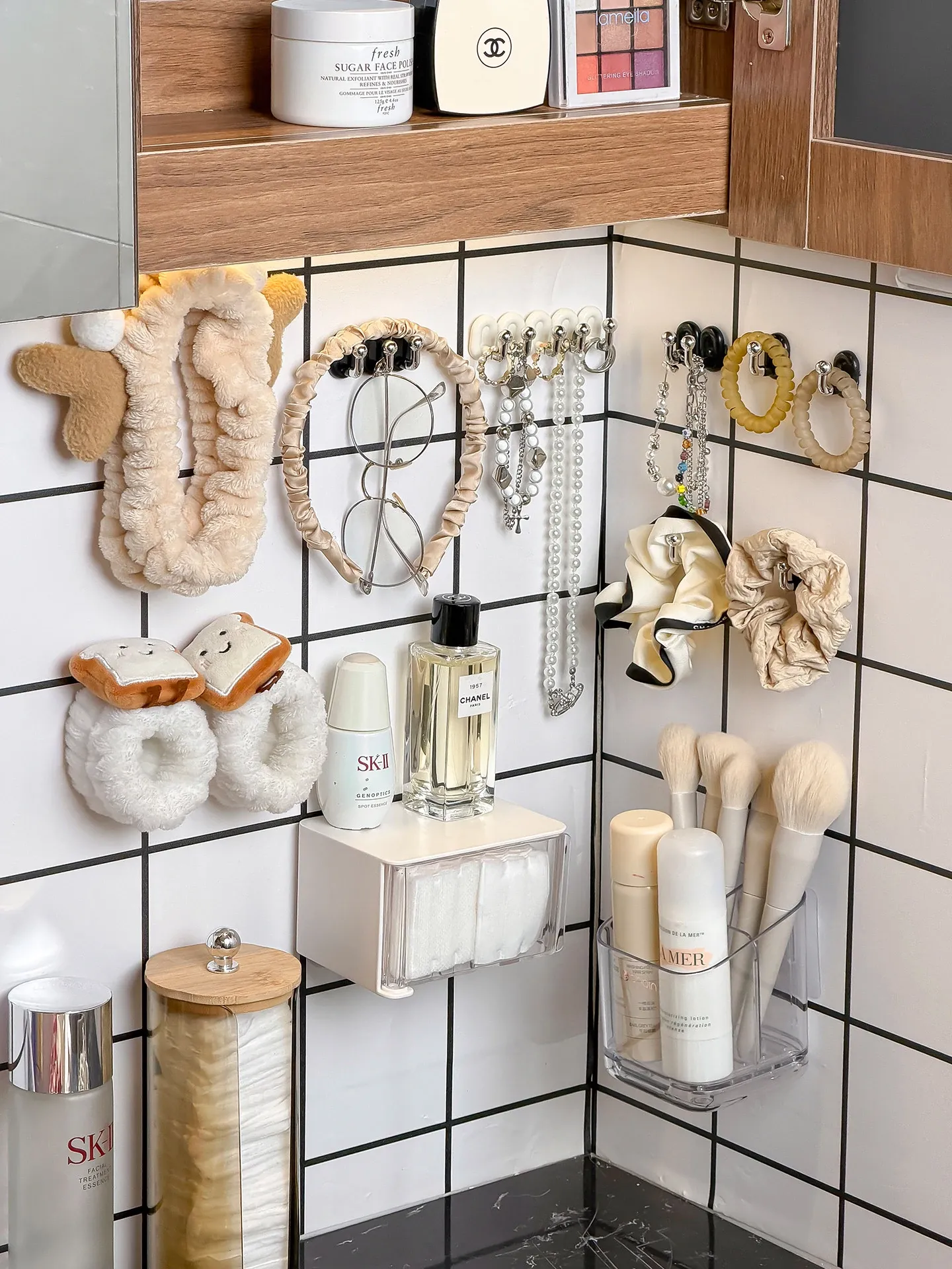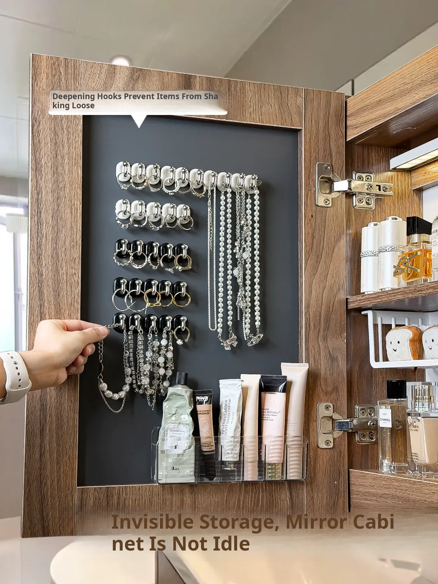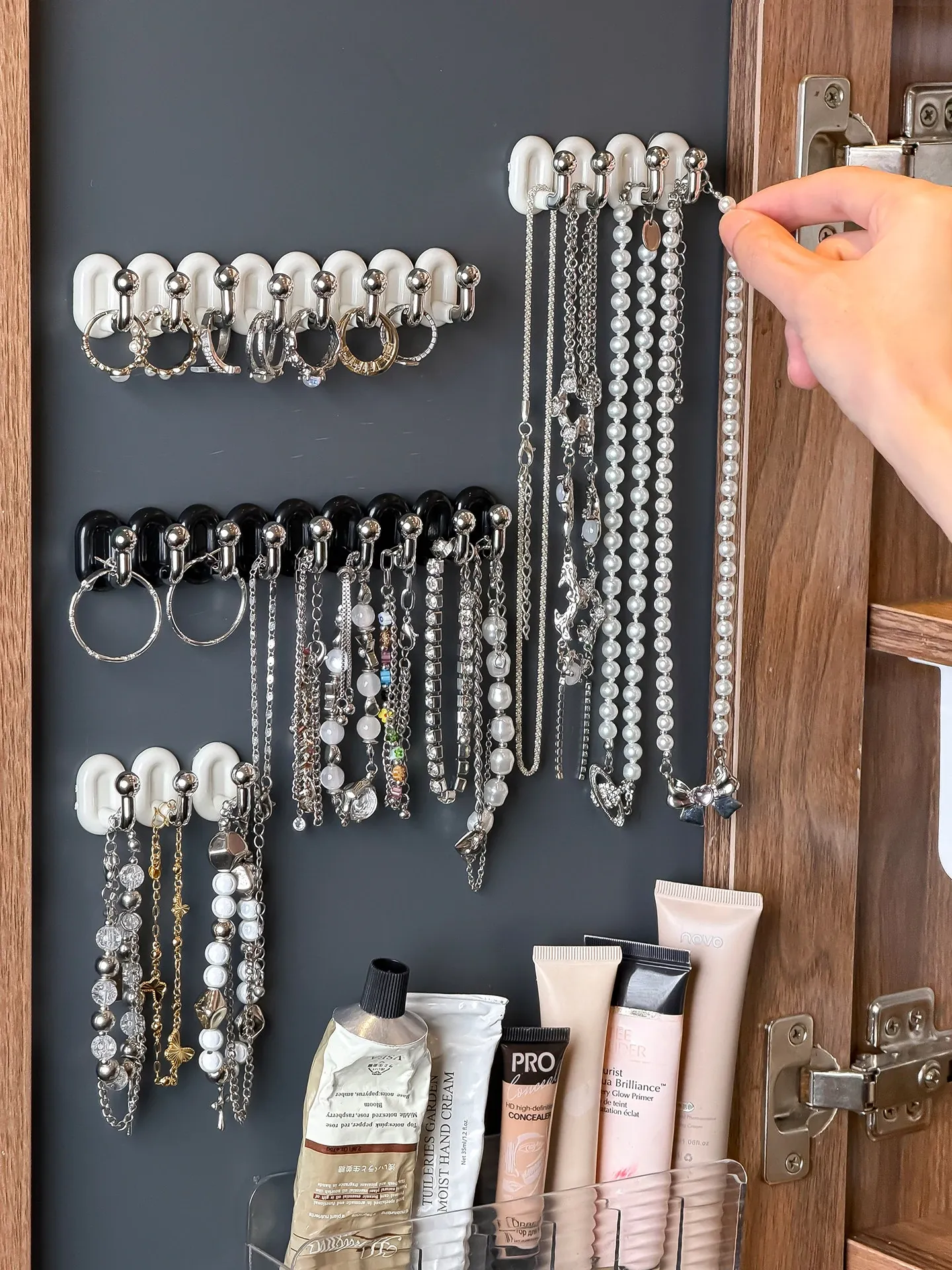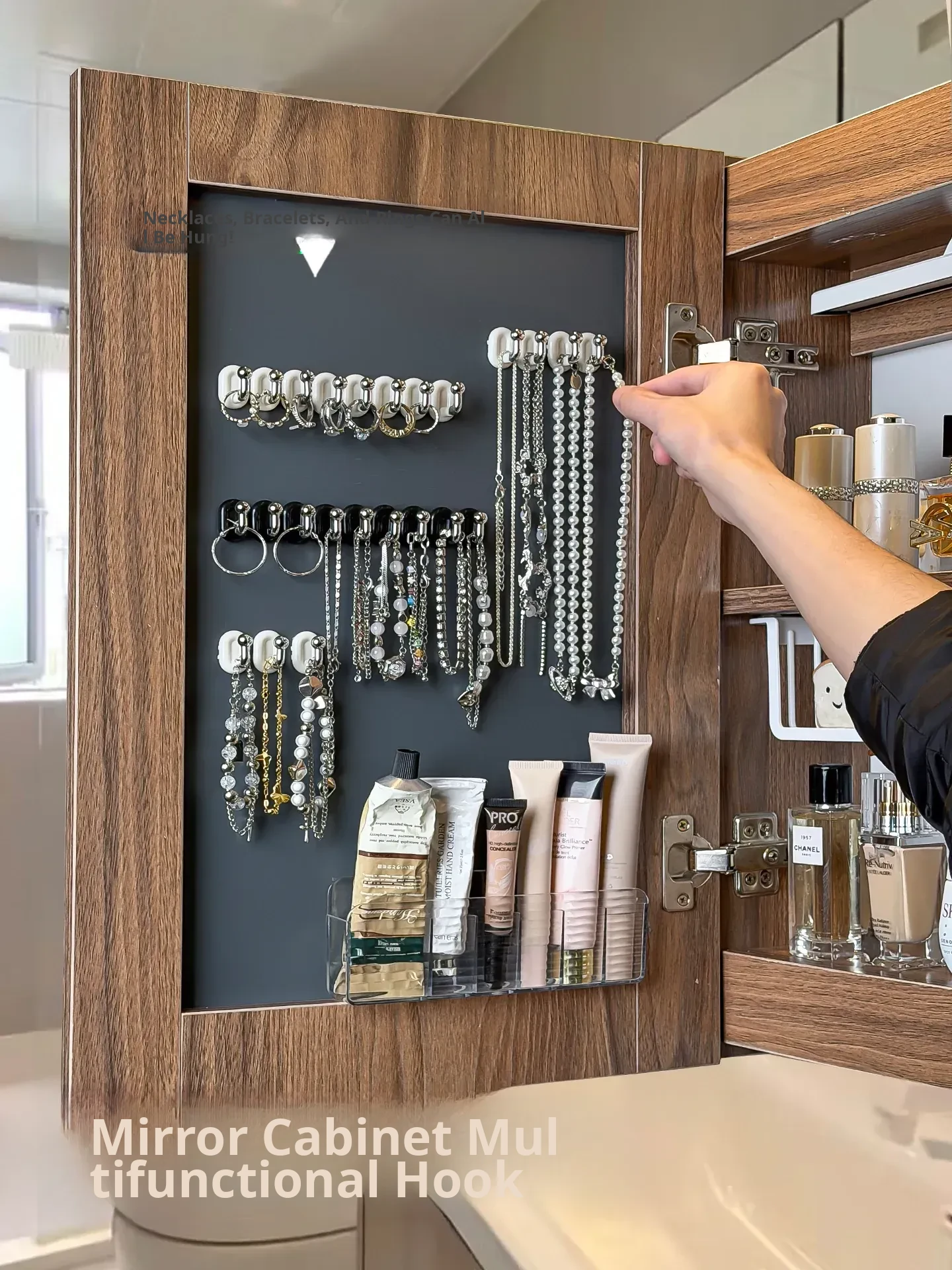 Mirrored Cabinet Door Jewelry Organizer - No Drill Necklace Storage Rack, Bathroom Essential with Multi-Functional Hooks for Earrings Display and Easy Access!