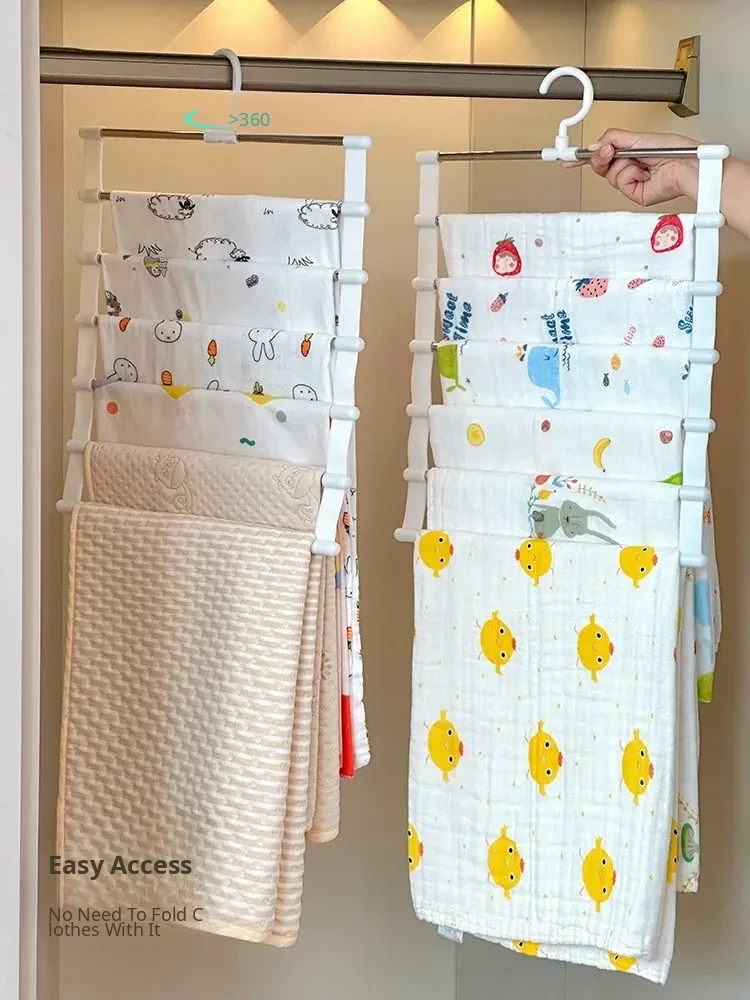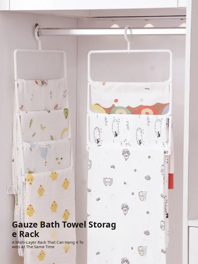 Multi-Functional Baby Gauze Towel Hanger - Perfect for Home Storage of Swaddles, Blankets, and Bath Towels for Your Little One! Ideal Space-Saving Solution for Parents!