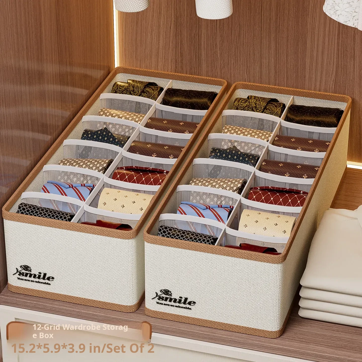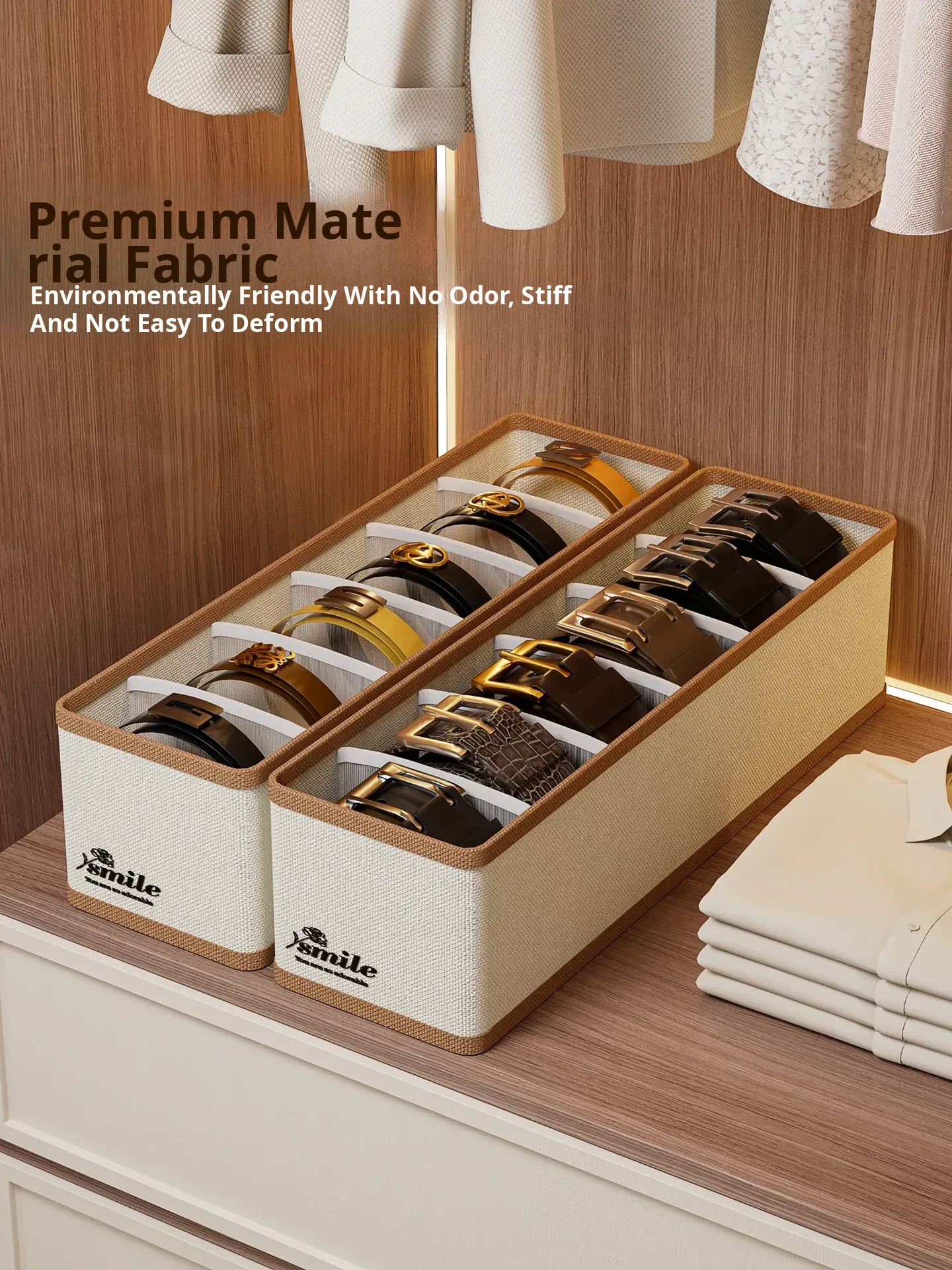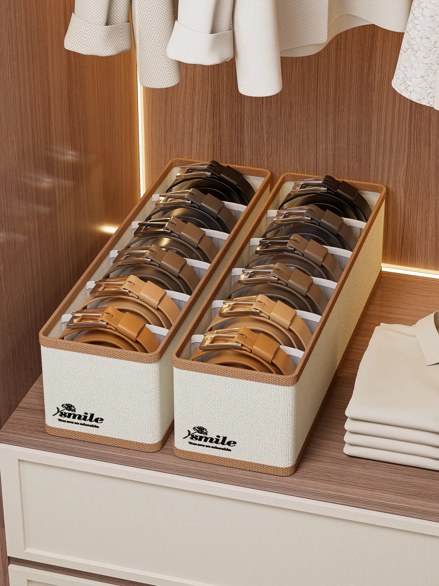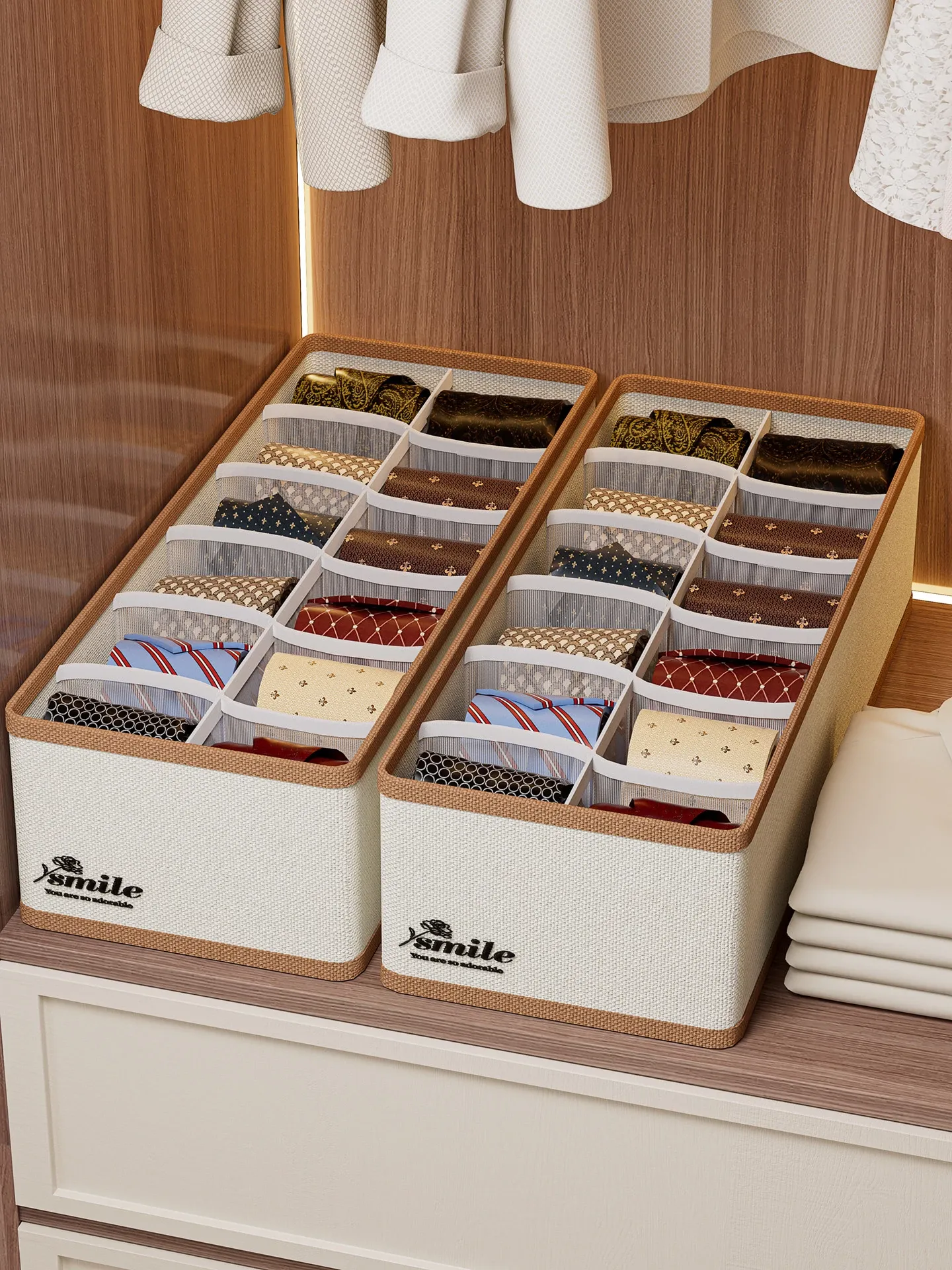 2 Pieces [3 Compartments - Width 11.02in] (Can Hold Silk Scarves, Belts, Bow Ties, Etc.) Oxford Cloth Belt Storage Box