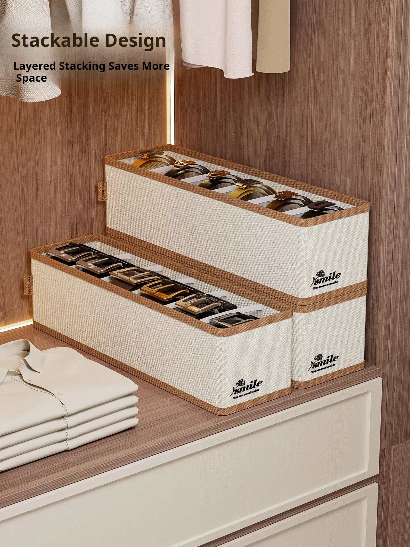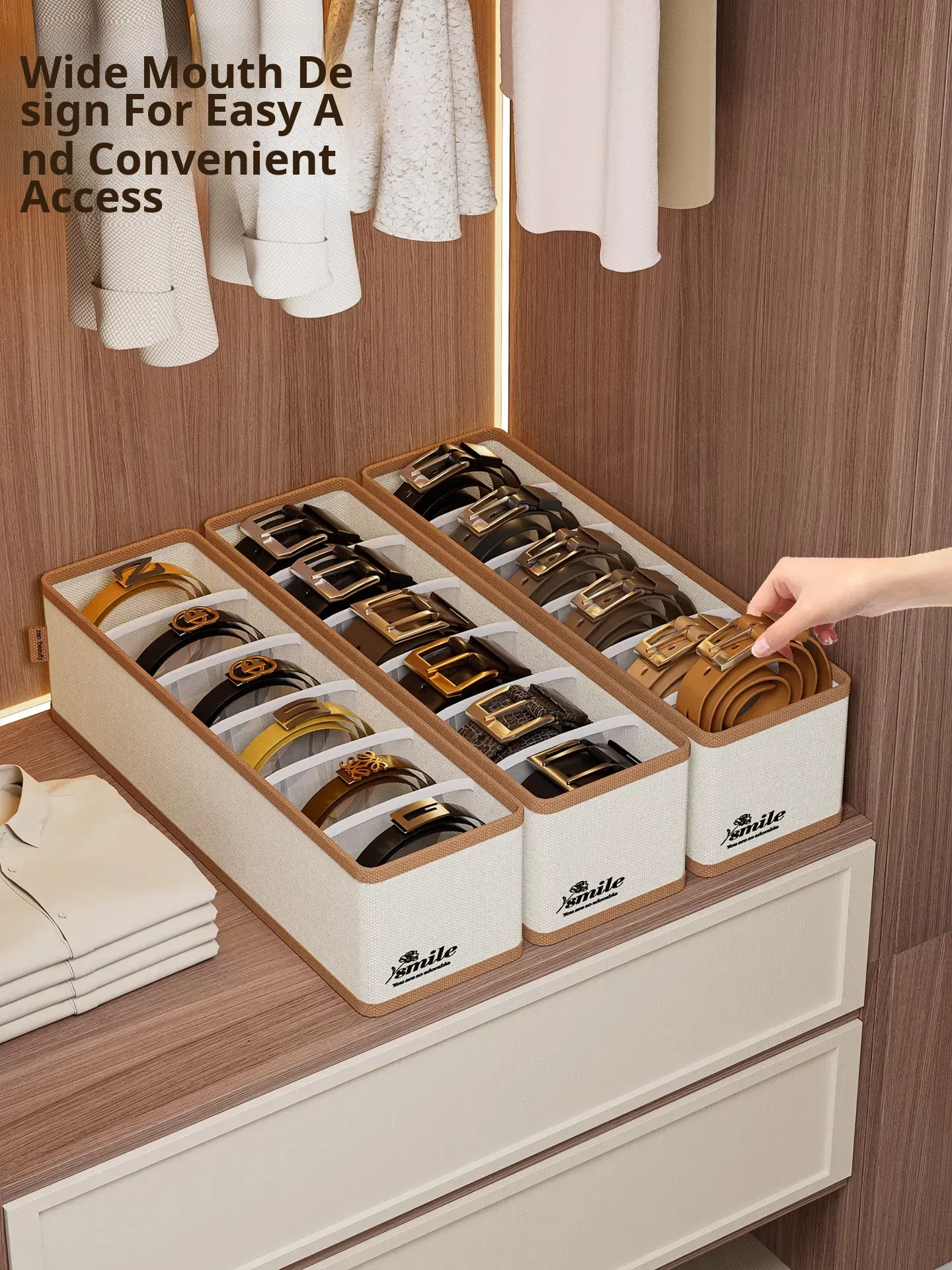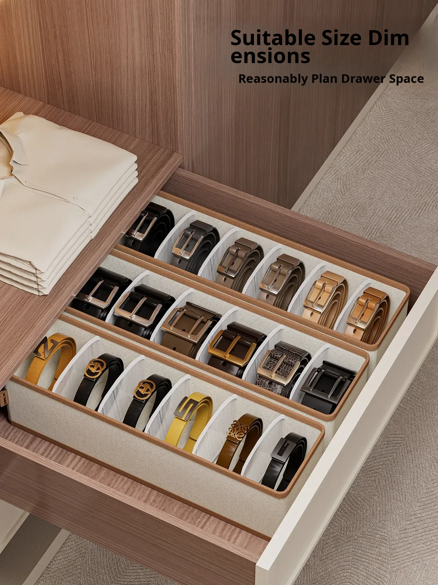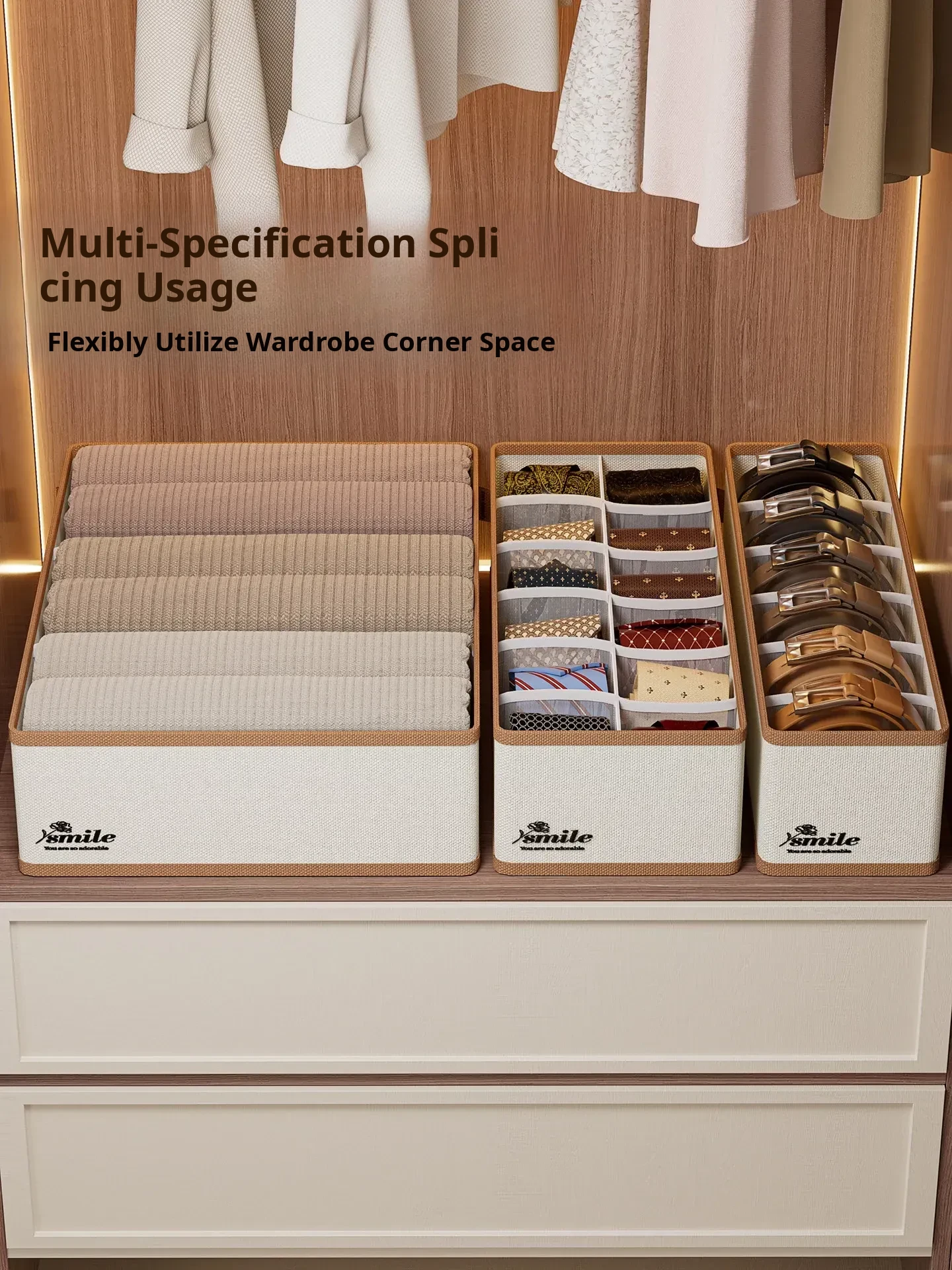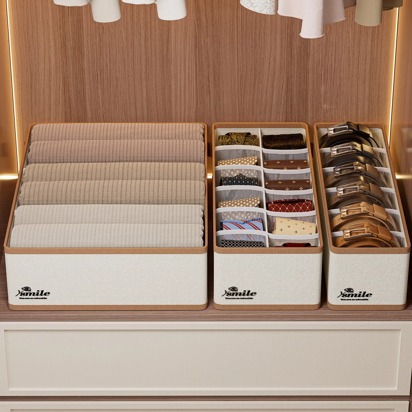 2 Pieces [3 Compartments - Width 11.02in] (Can Hold Silk Scarves, Belts, Bow Ties, Etc.) Oxford Cloth Belt Storage Box