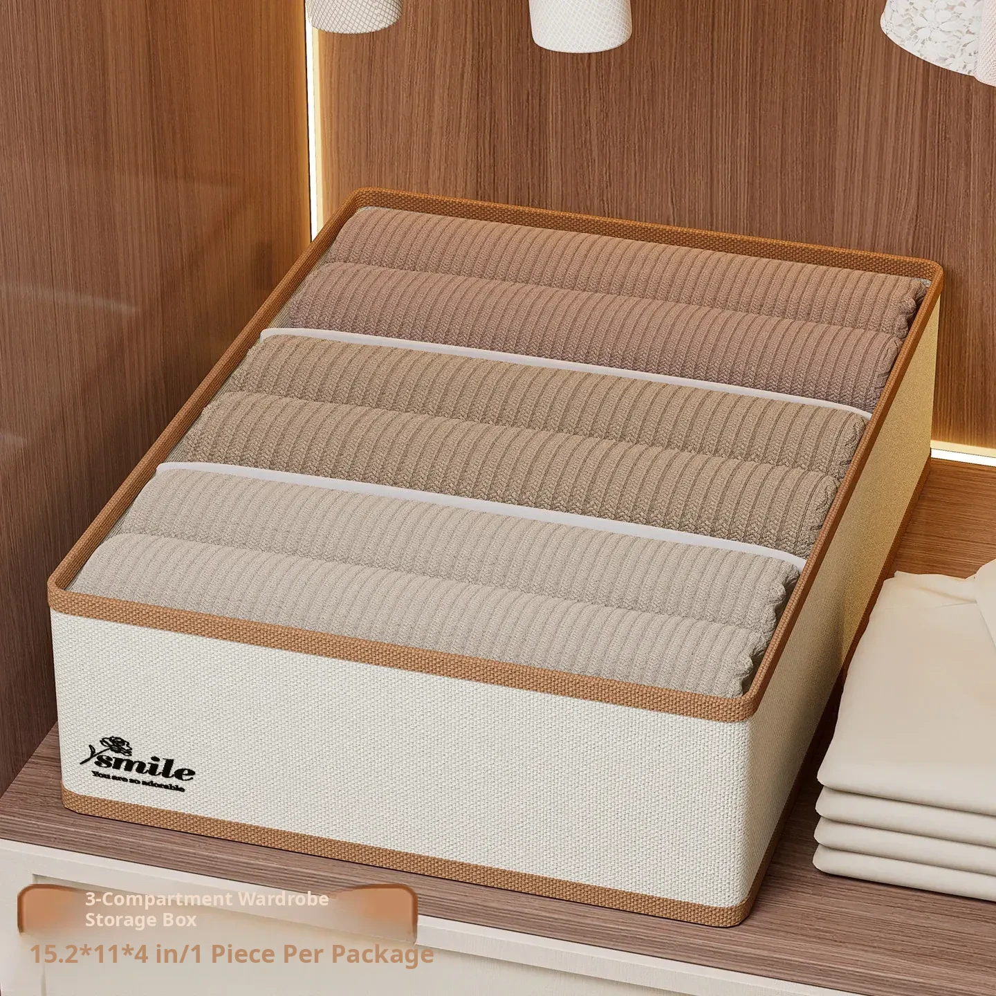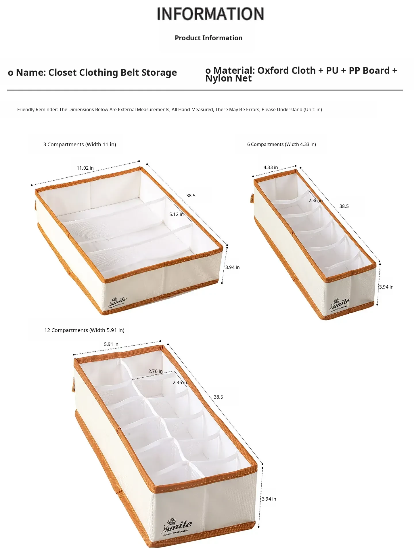 1 Piece [3 Compartments - Width 11.02in] (Can Hold Silk Scarves, Belts, Bow Ties, Etc.) Oxford Cloth Belt Storage Box Wg-6664