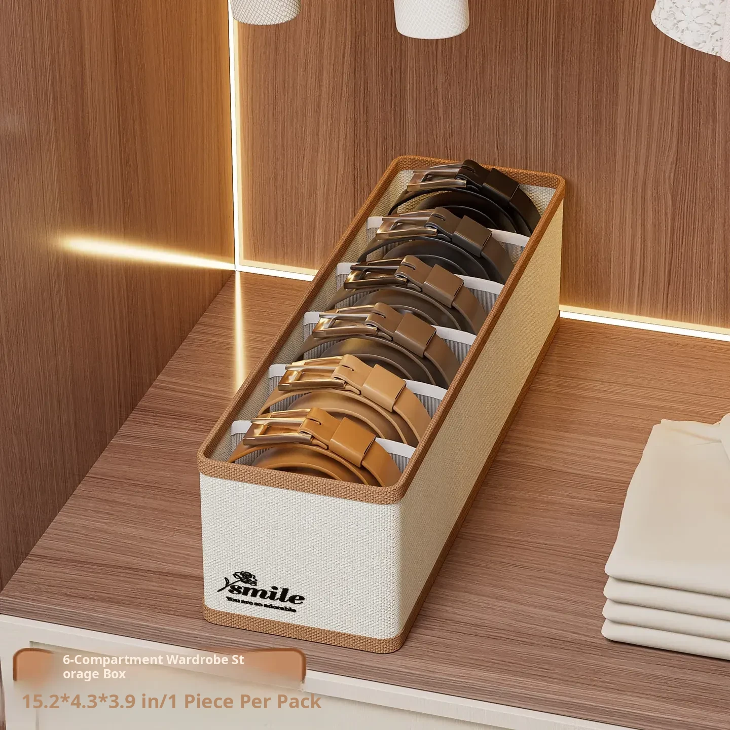 1 Pack [6 Compartments - 4.33in Wide] Oxford Cloth Belt Storage Box Wg-6665