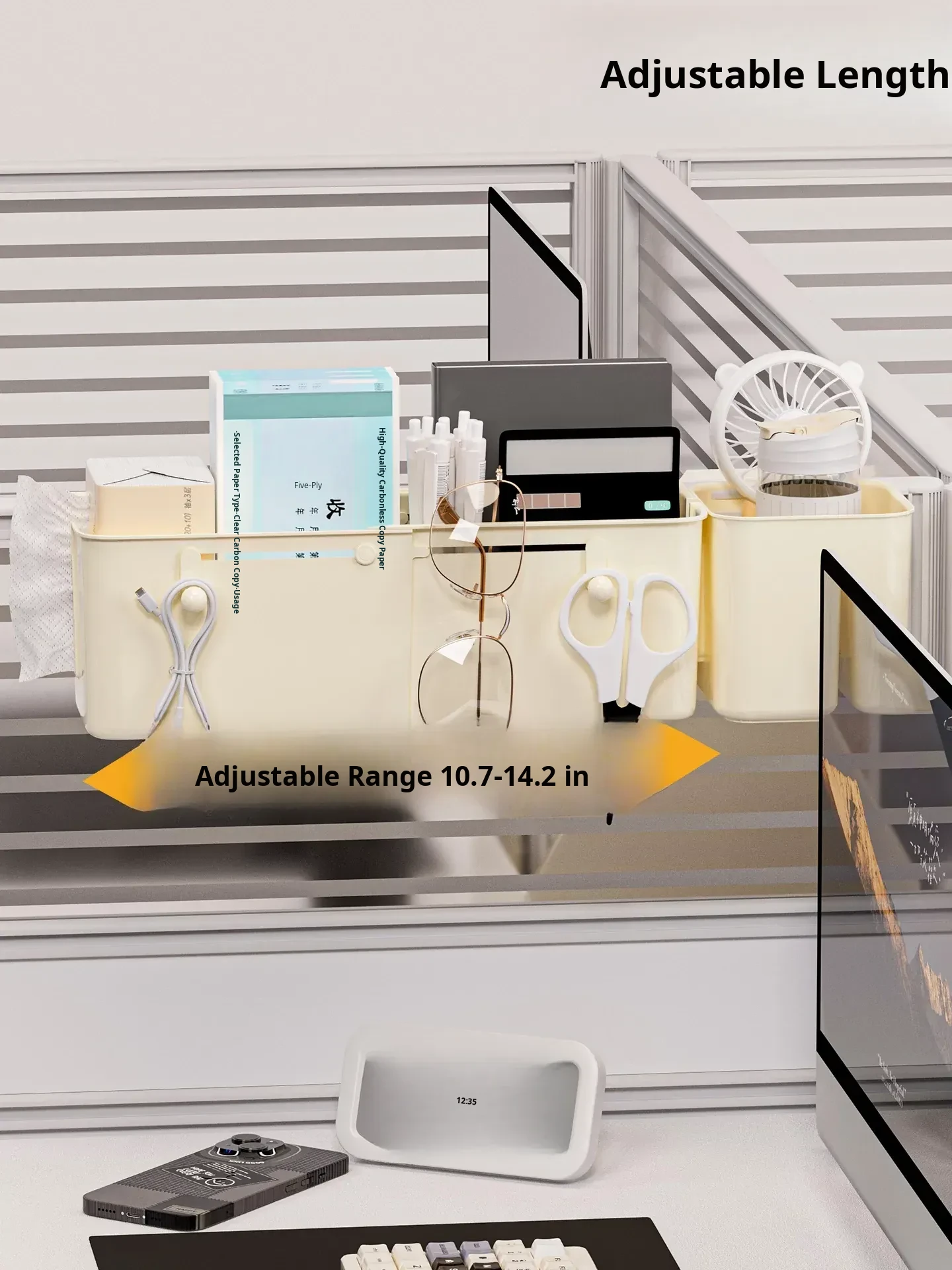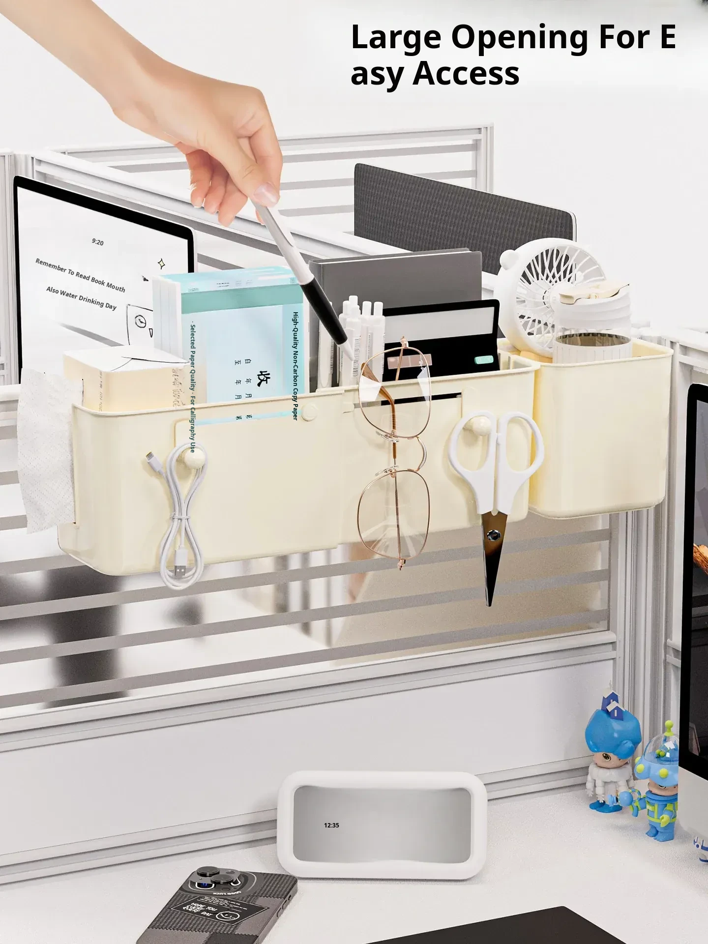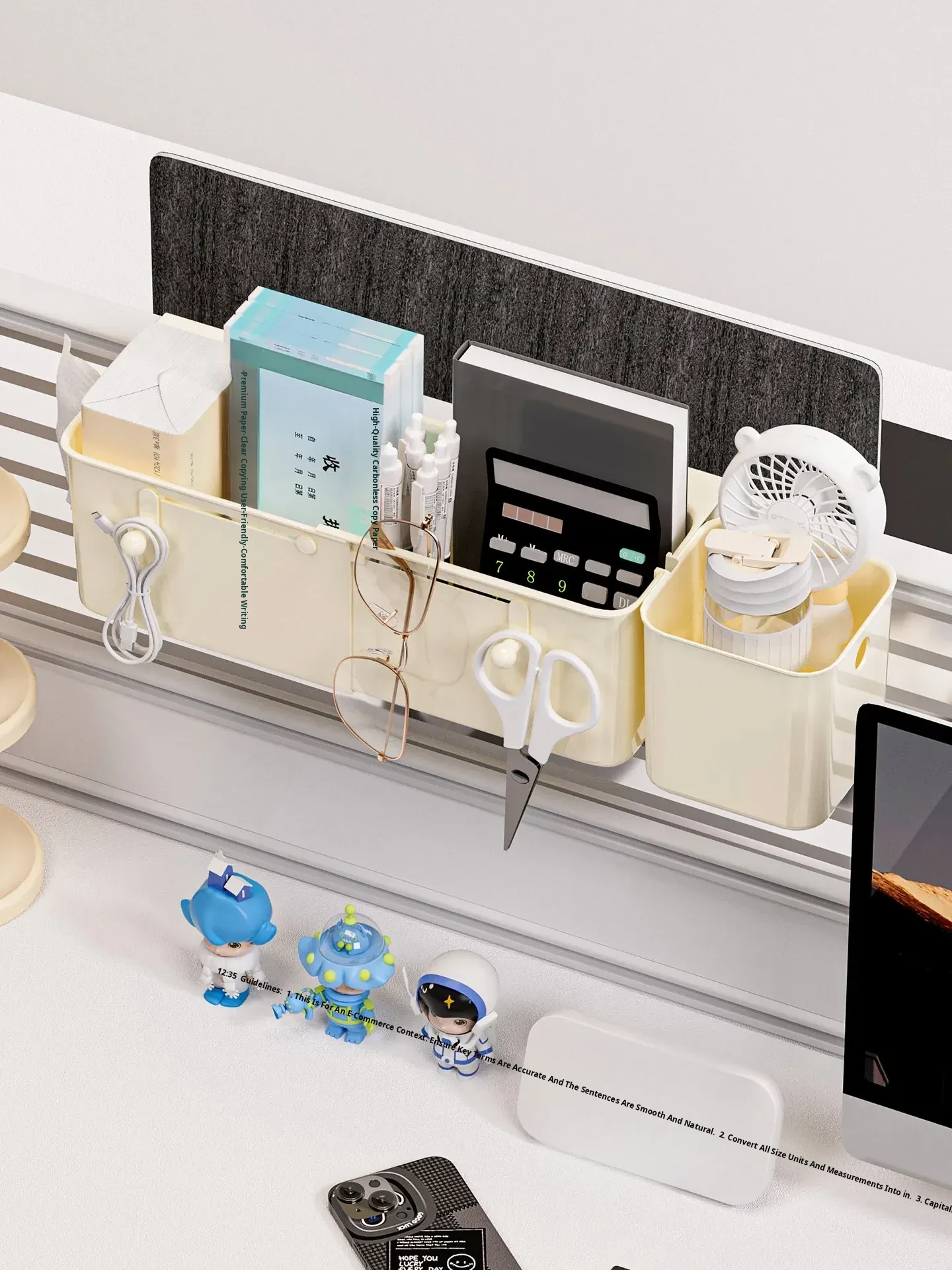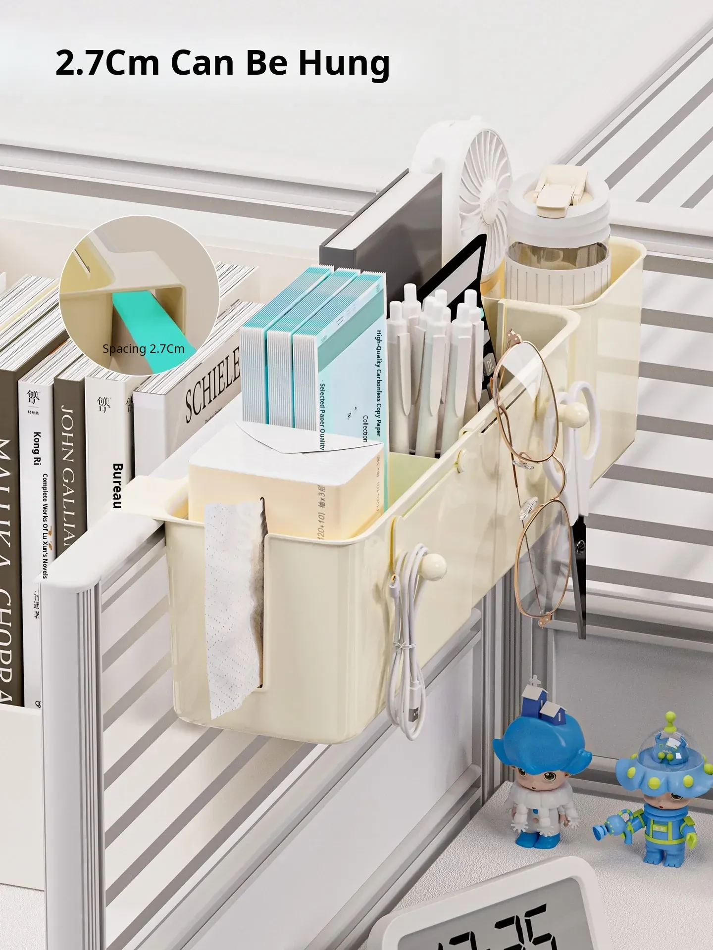 "Multi-Functional Desk Organizer with Hanging Baskets - Space-Saving Adjustable Storage Solution for Office Workstations"