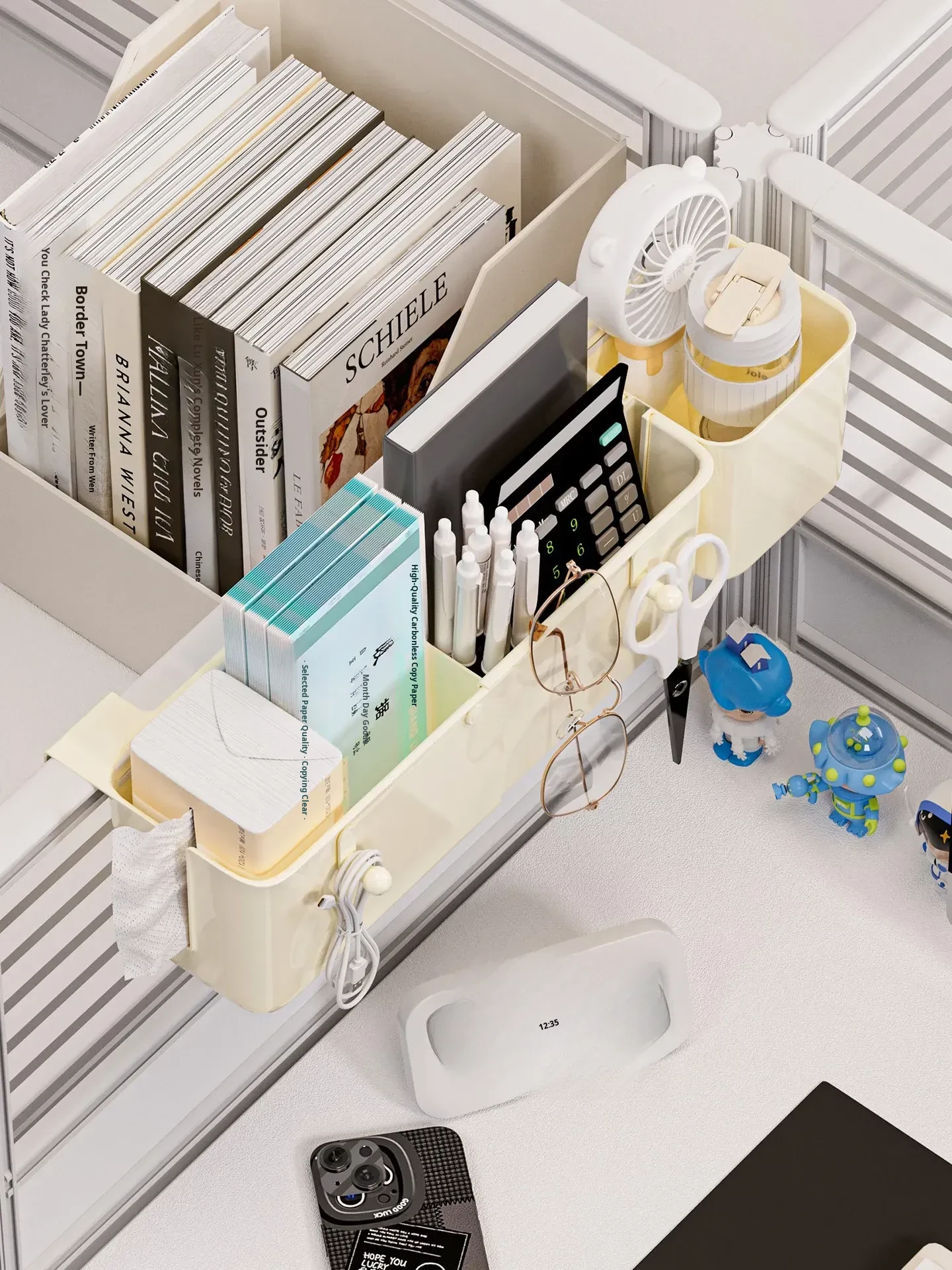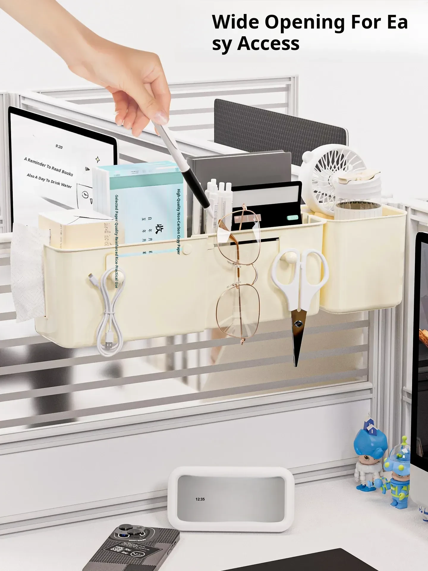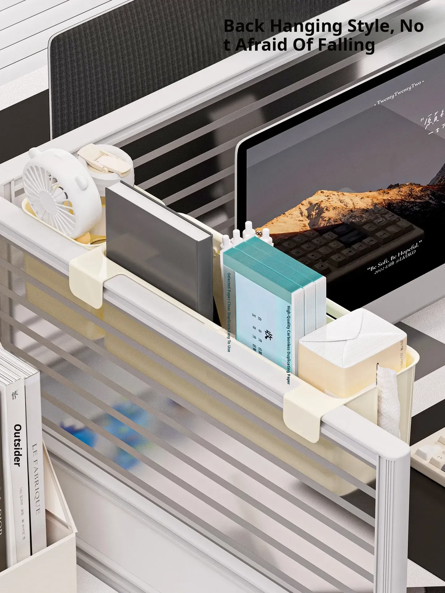 "Multi-Functional Desk Organizer with Hanging Baskets - Space-Saving Adjustable Storage Solution for Office Workstations"