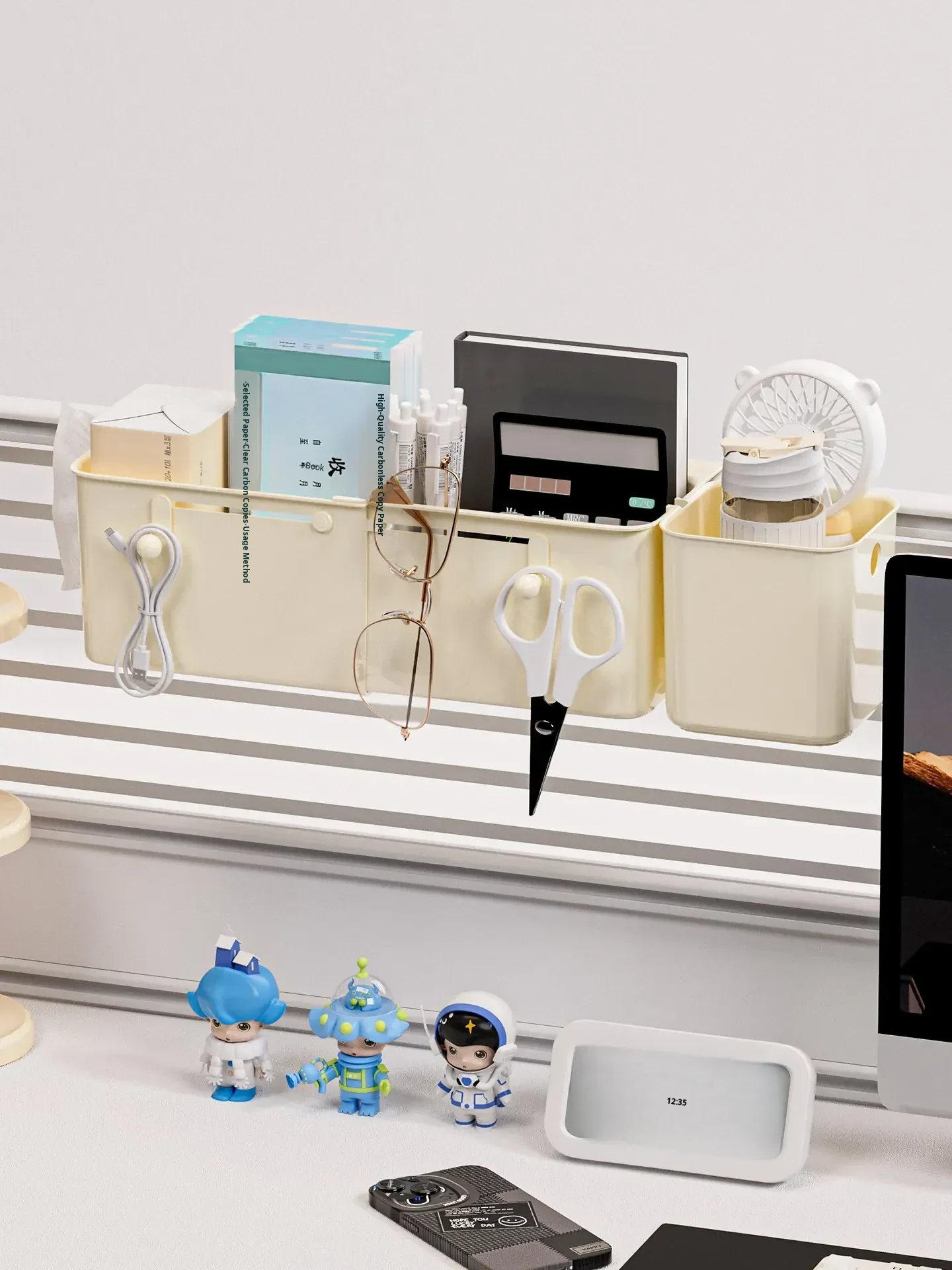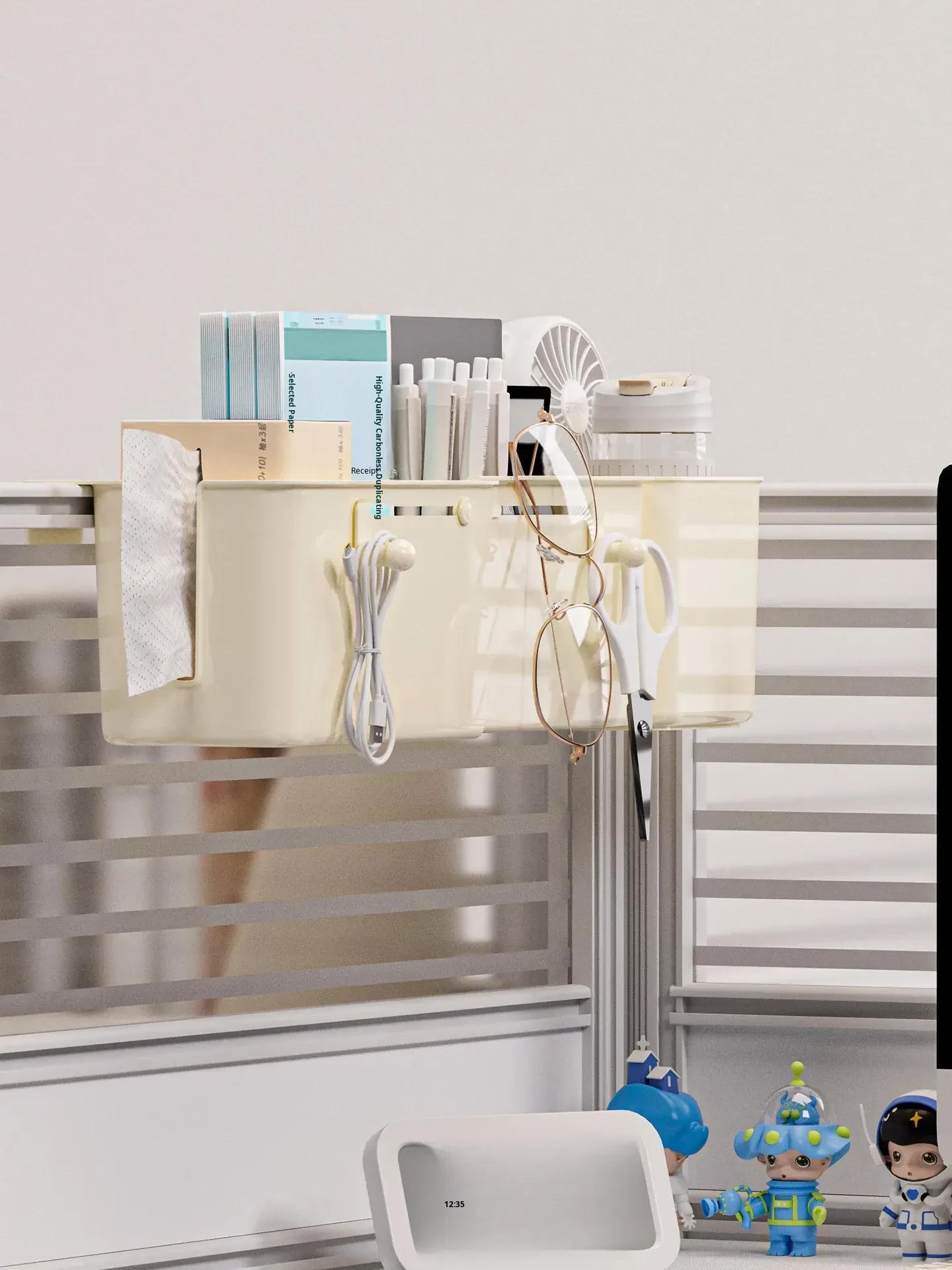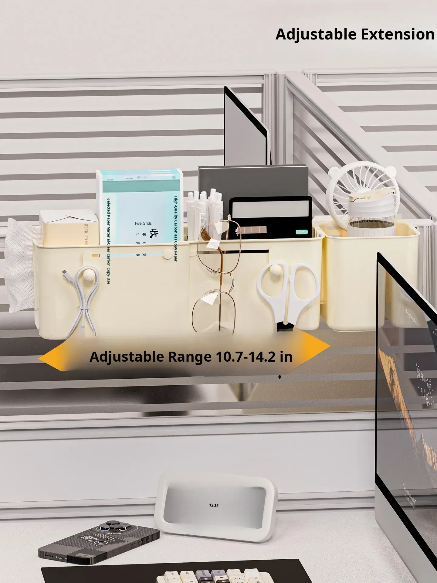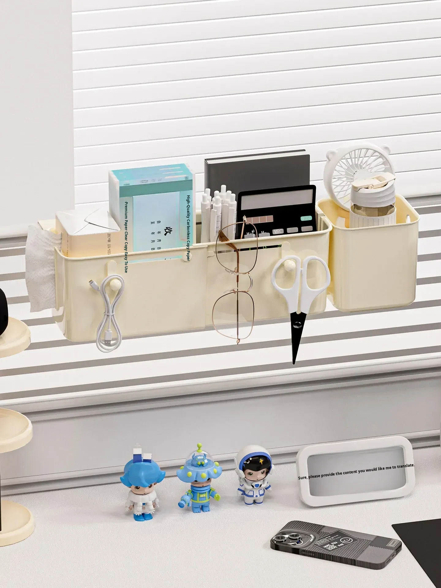 "Multi-Functional Desk Organizer with Hanging Baskets - Space-Saving Adjustable Storage Solution for Office Workstations"