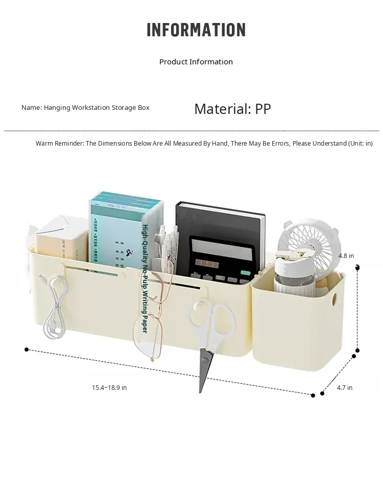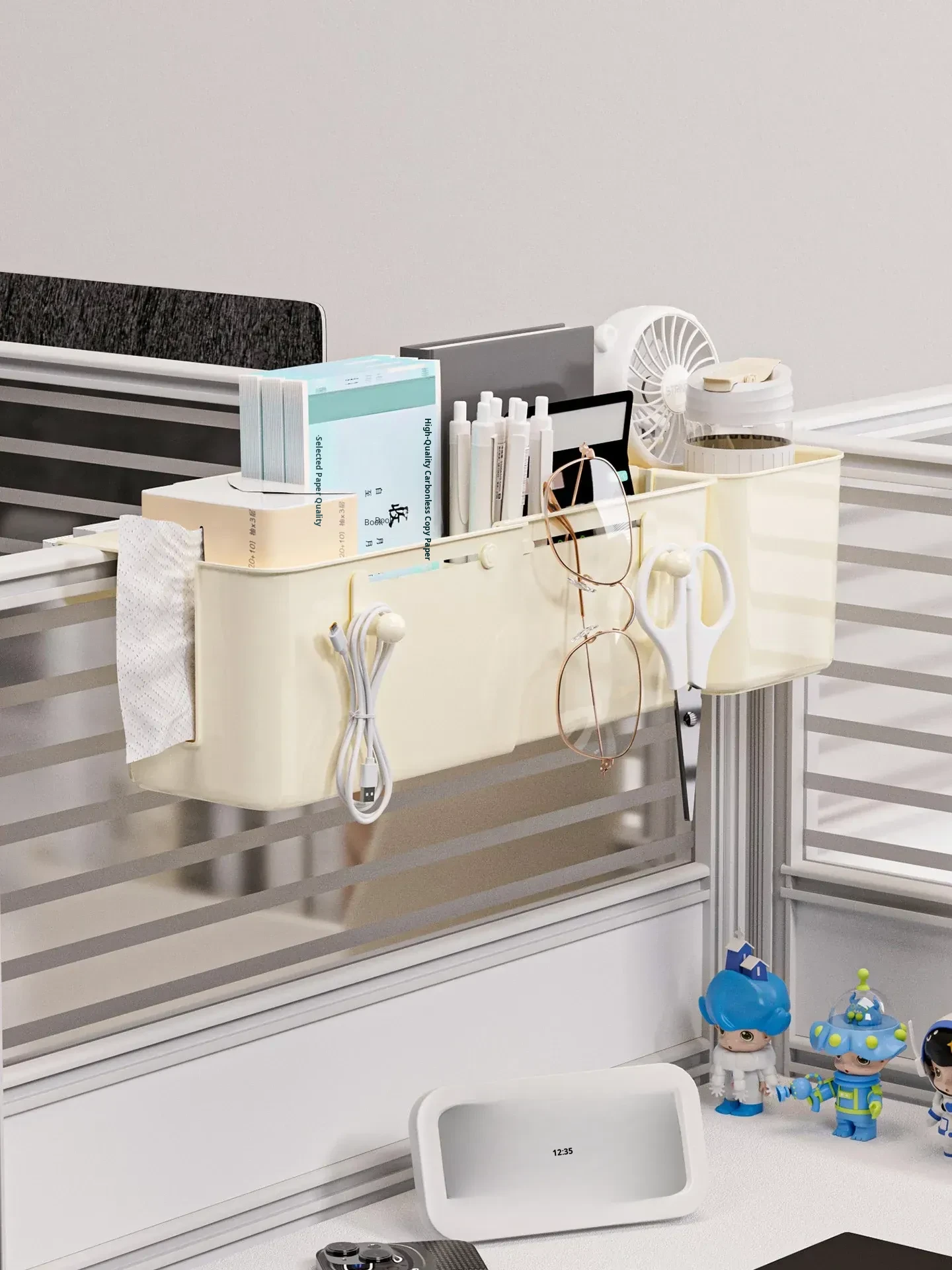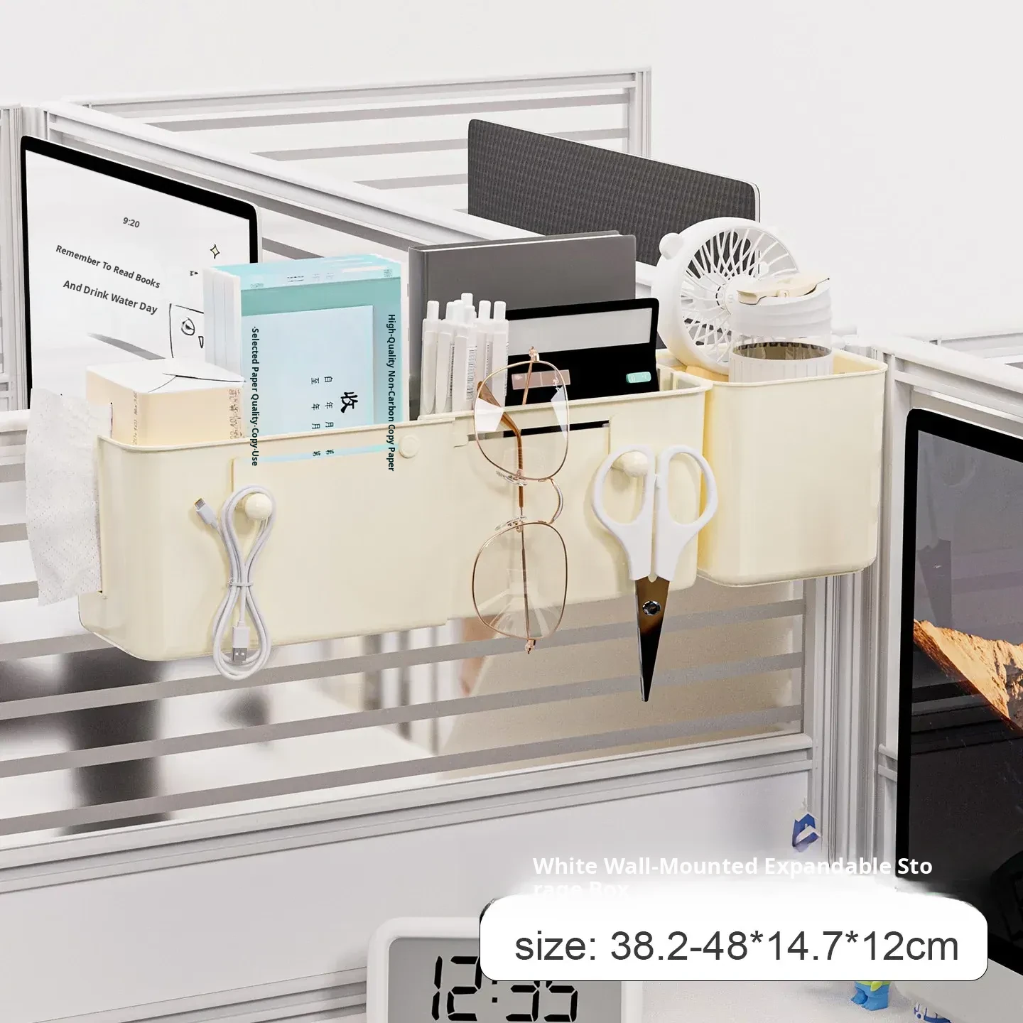 [Retractable/Removable Partition/Expandable Small Hanging Basket] Milky White Workstation Hanging Storage Box-Wg1163