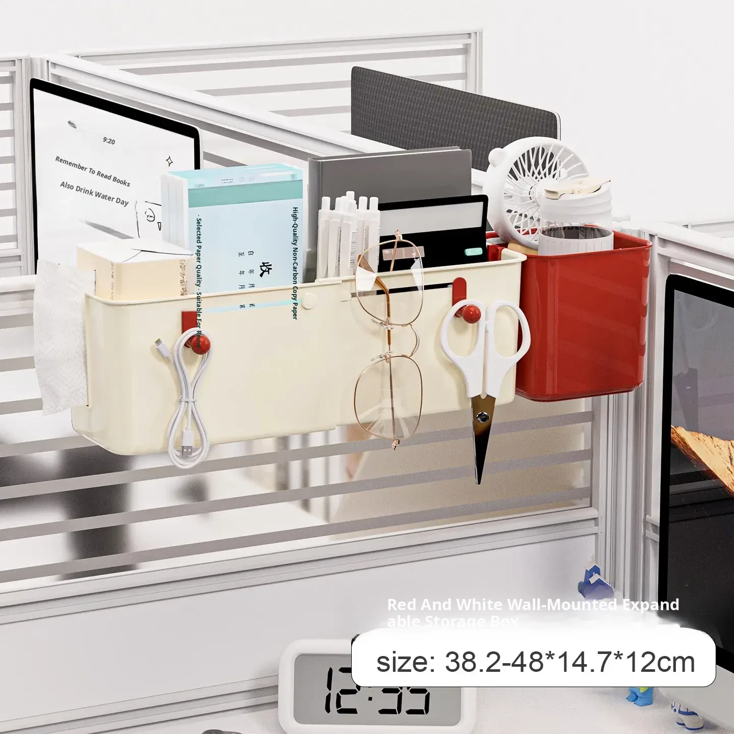 [Retractable/Removable Partition/Expandable Small Hanging Basket] Red and White Workstation Hanging Storage Box-Wg1164