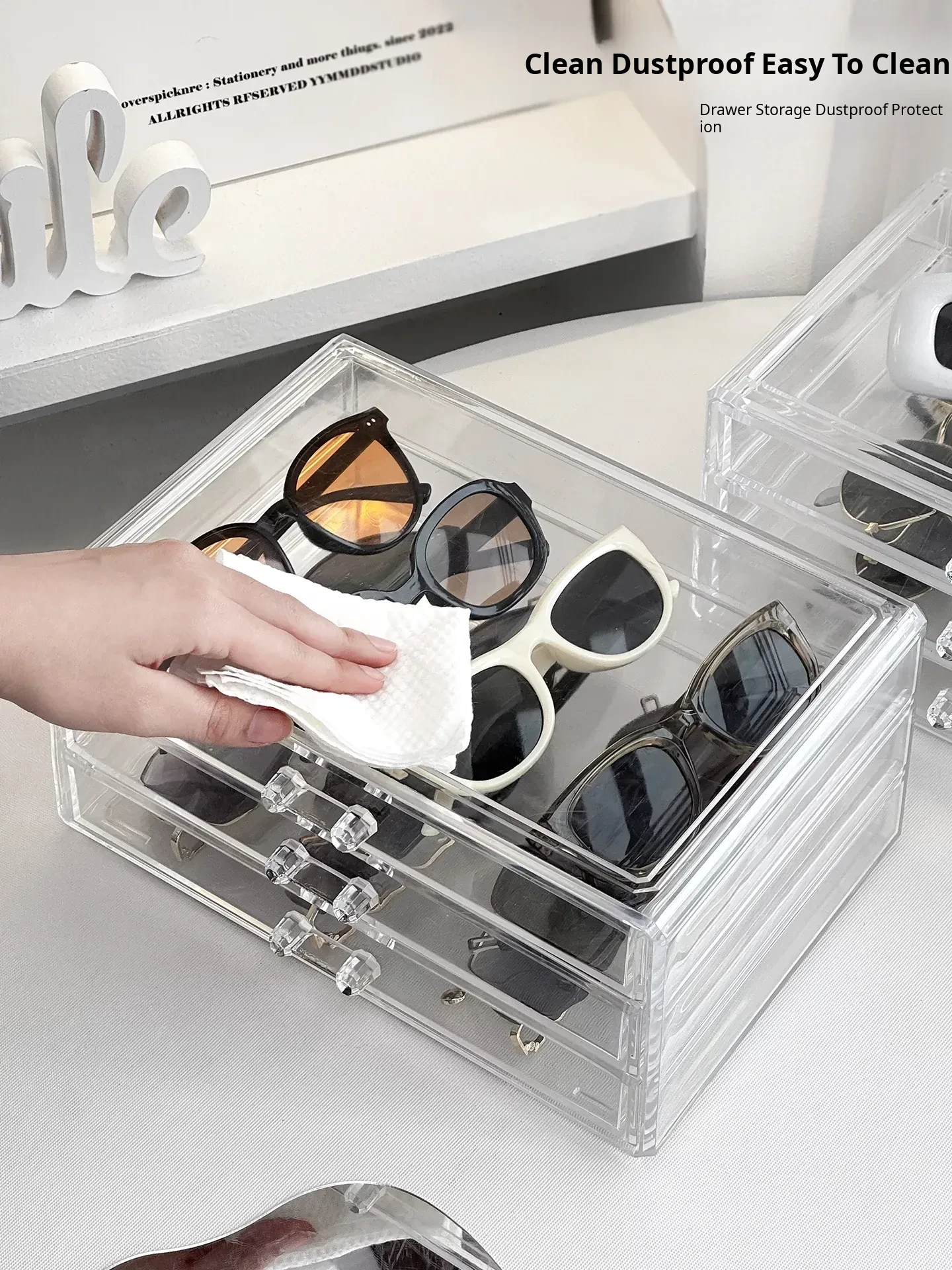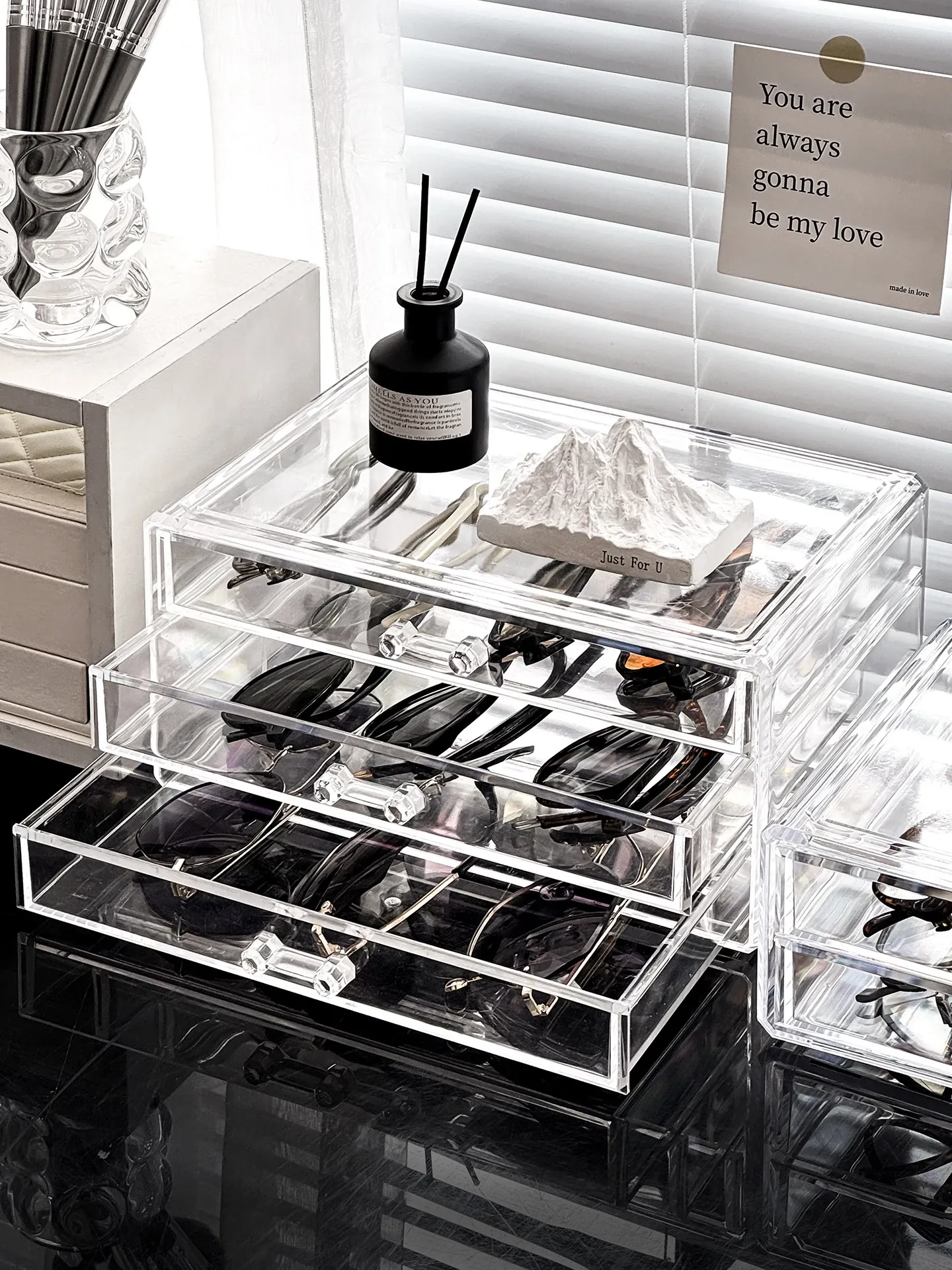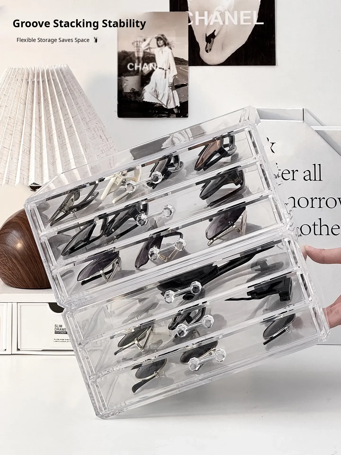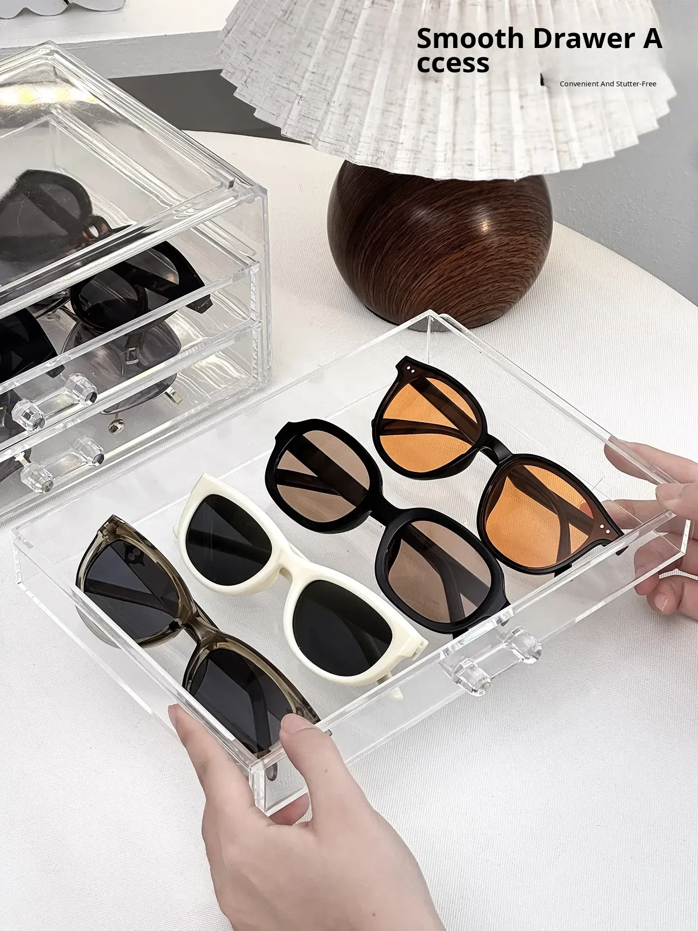 Multi-Layer Acrylic Sunglasses Display Case - Dustproof and Shock-Resistant Drawer Organizer for Eyewear Storage - Stylish Desktop Solution for Sunglasses and Accessories