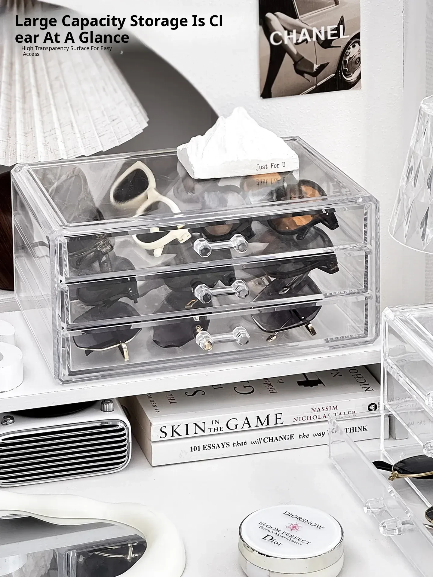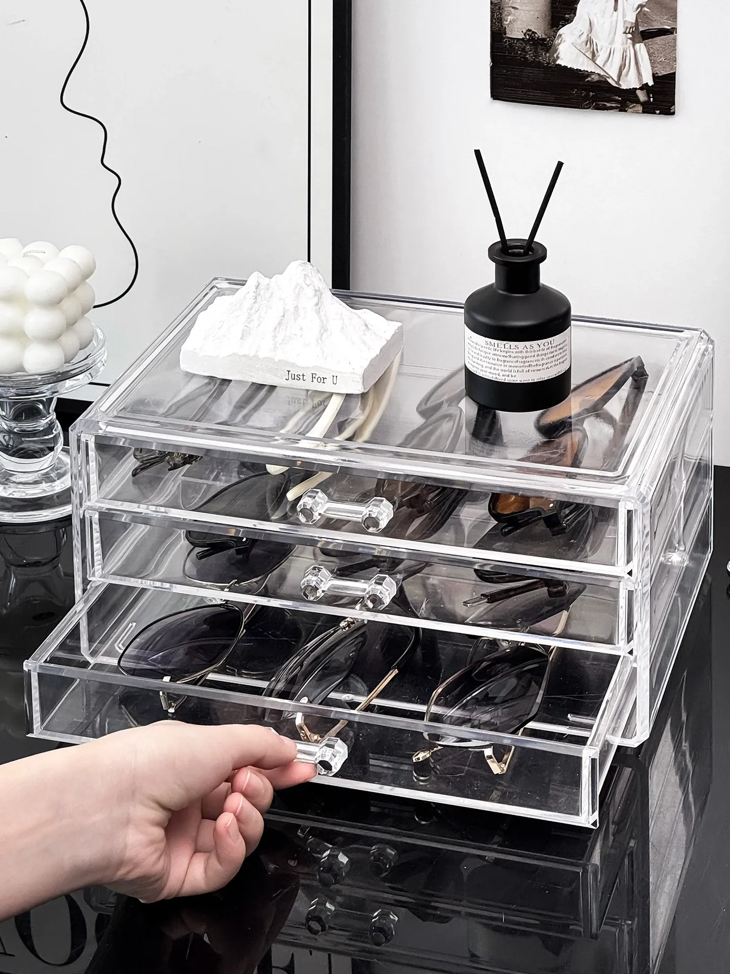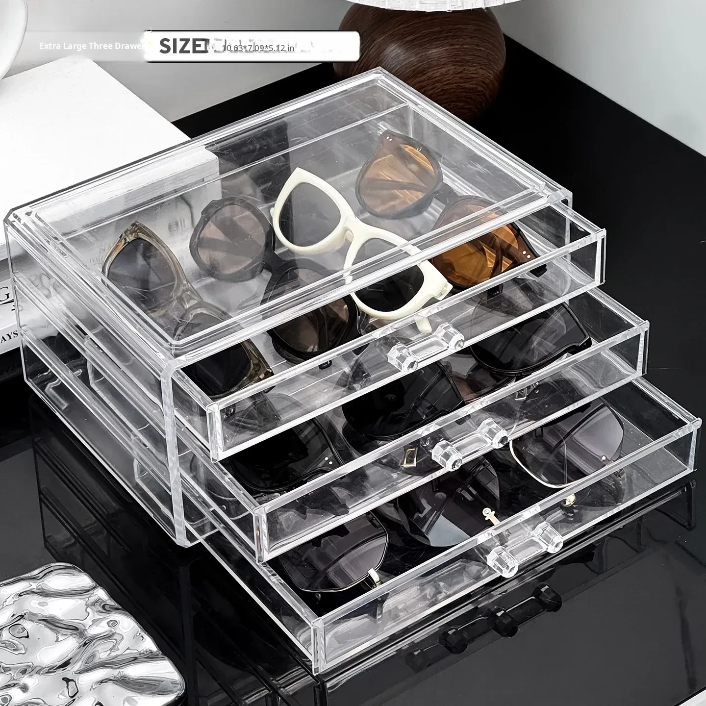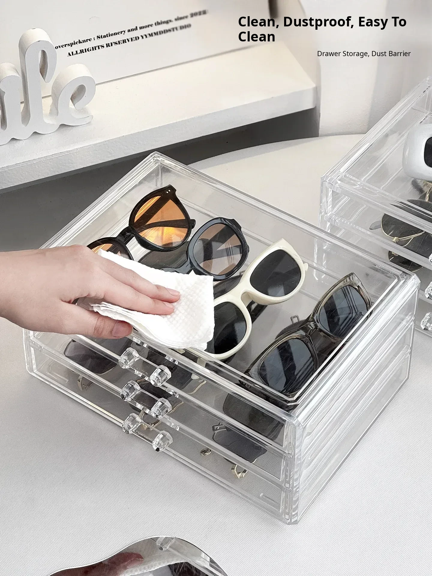 Multi-Layer Acrylic Sunglasses Display Case - Dustproof and Shock-Resistant Drawer Organizer for Eyewear Storage - Stylish Desktop Solution for Sunglasses and Accessories