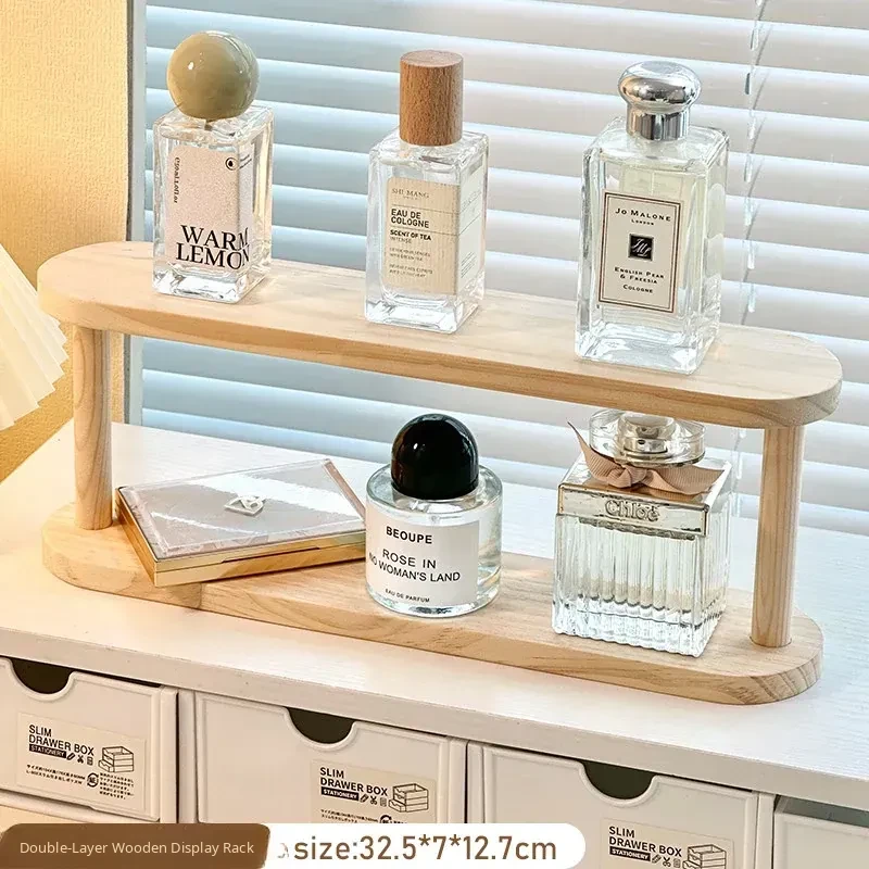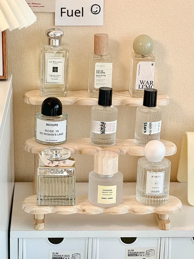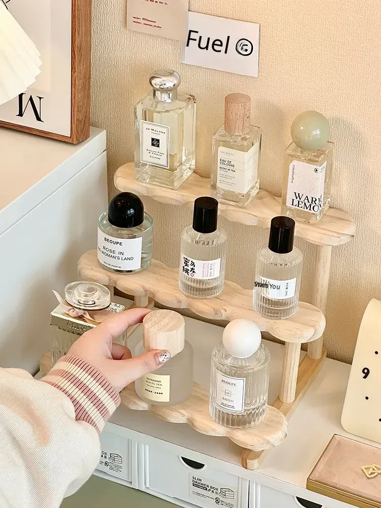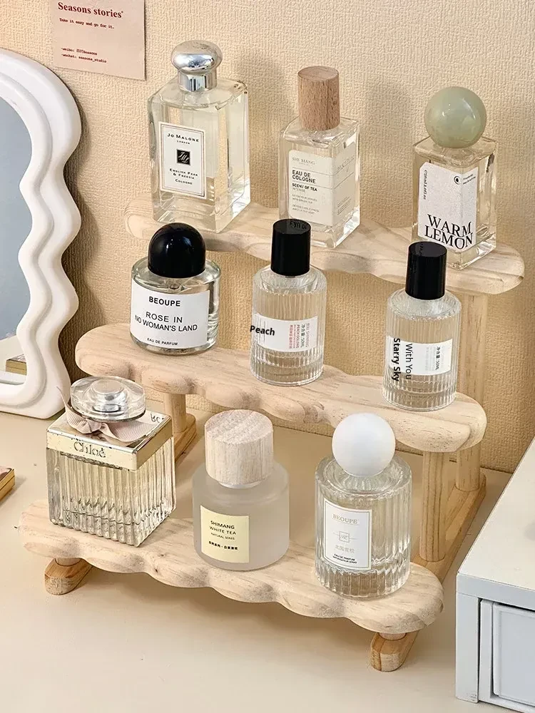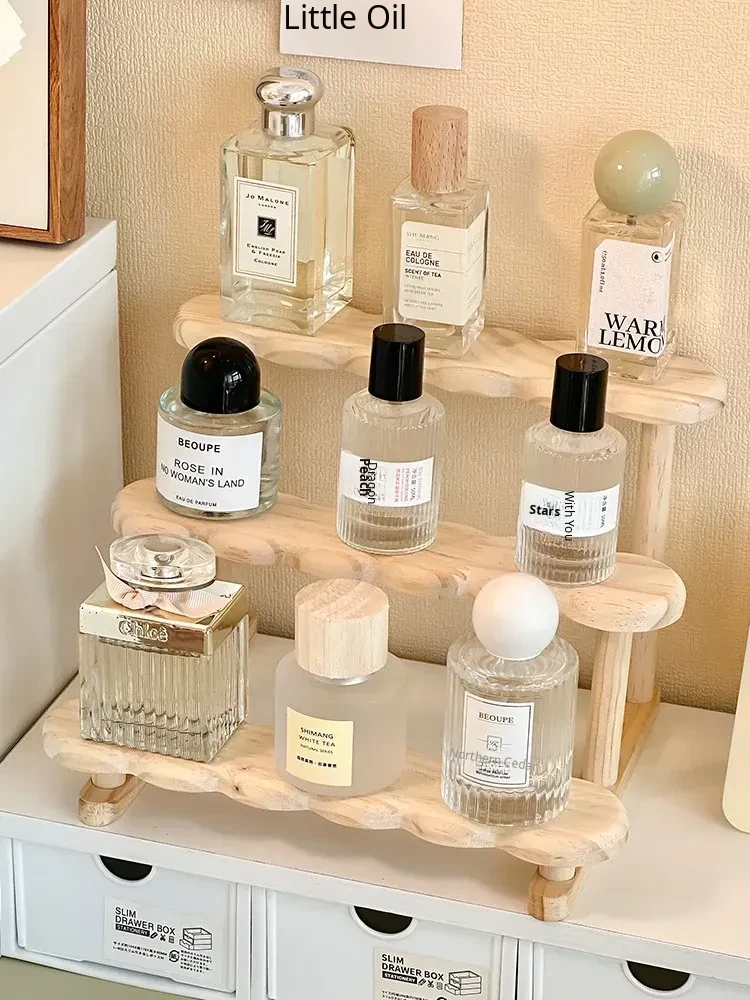 Multi-Tiered Wooden Perfume Display Stand - Stylish Desktop Cosmetics Organizer, Perfect for Entryway Decor & Essential Oil Storage. Keep Your Space Organized and Beautiful!