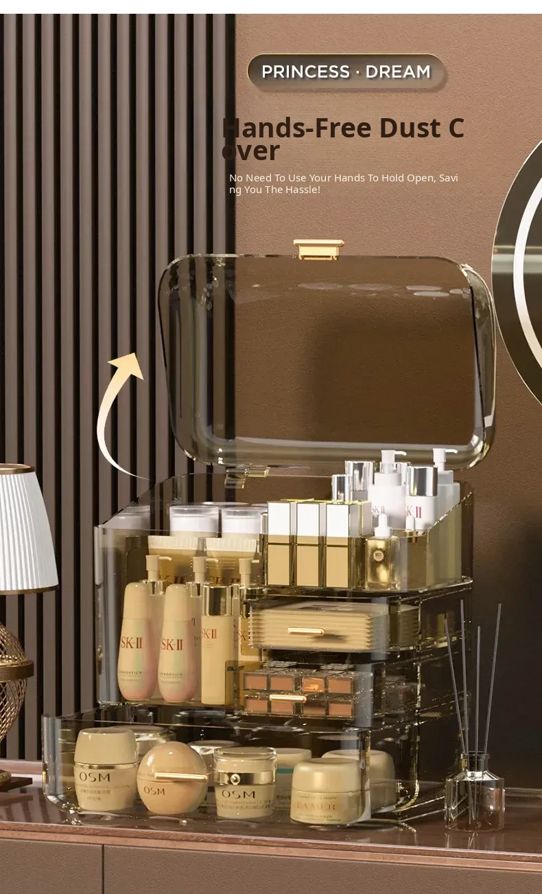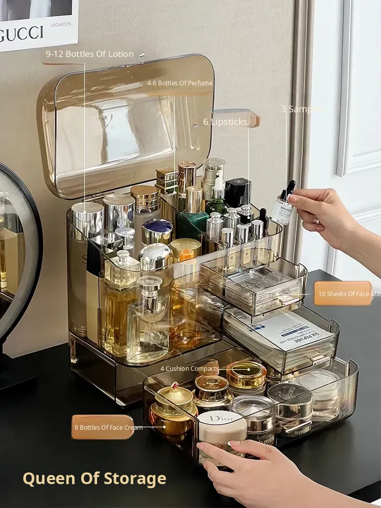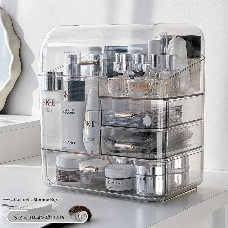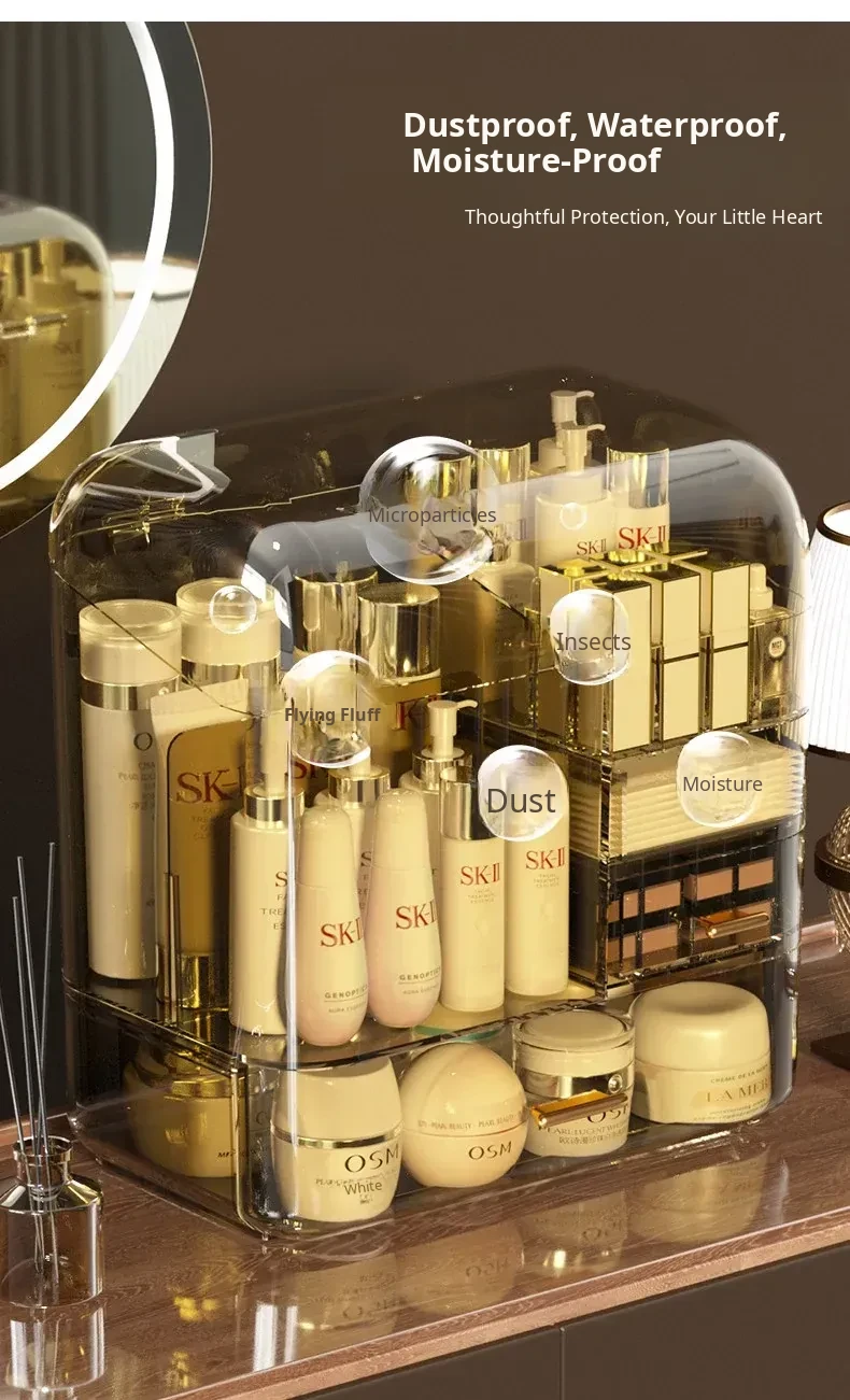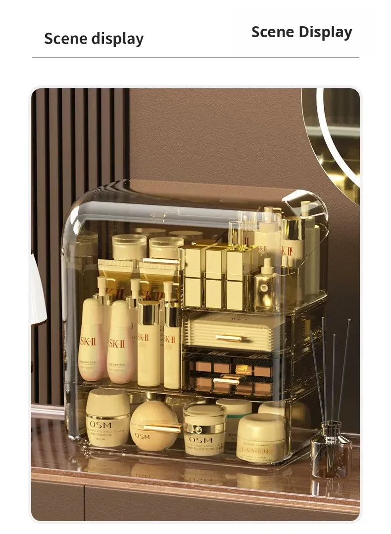 Premium Acrylic Makeup Organizer - Large Capacity Cosmetic Storage Box for Vanity, Dustproof Skincare Display Shelf, Perfect for Neat and Stylish Makeup Arrangements