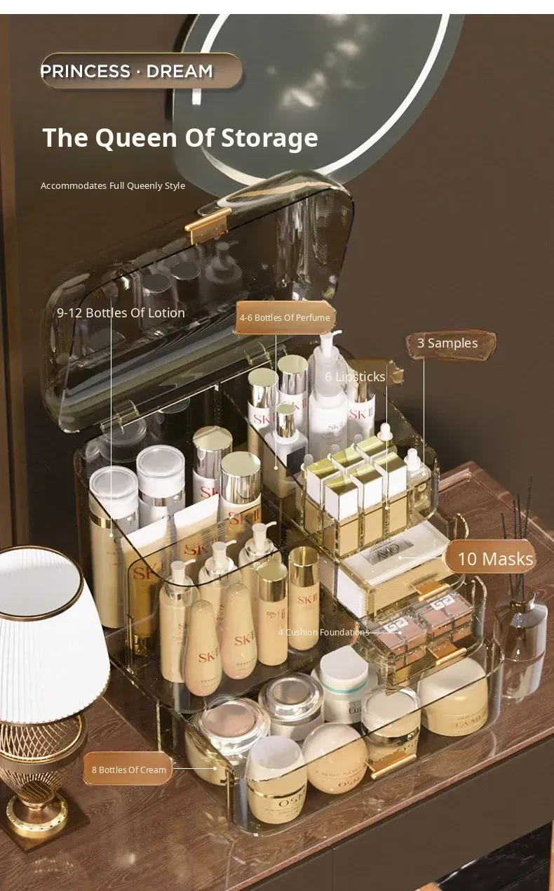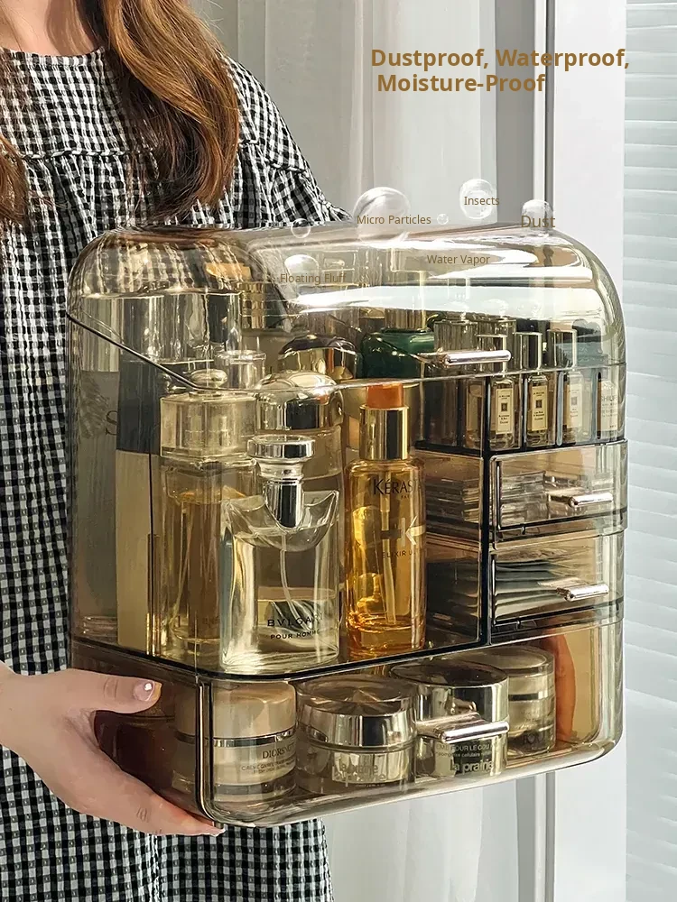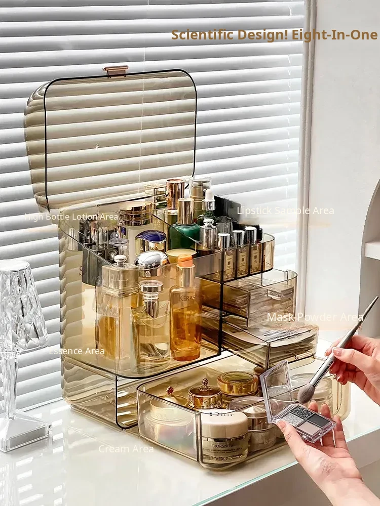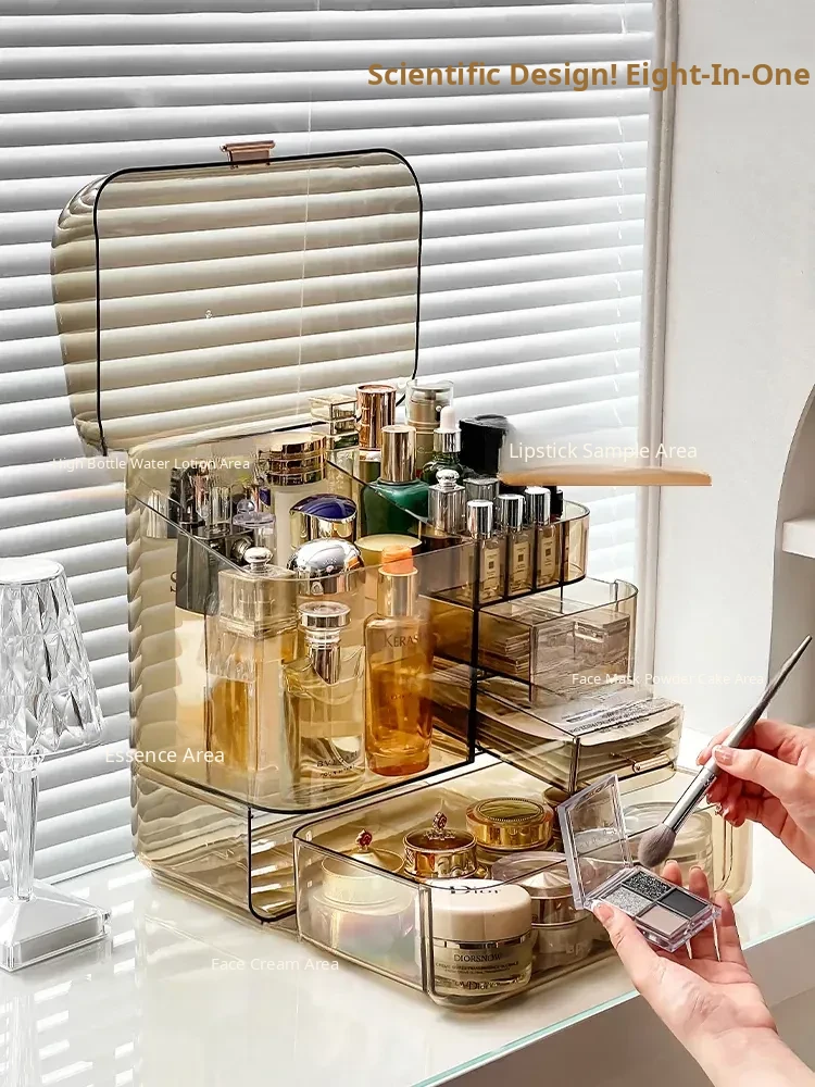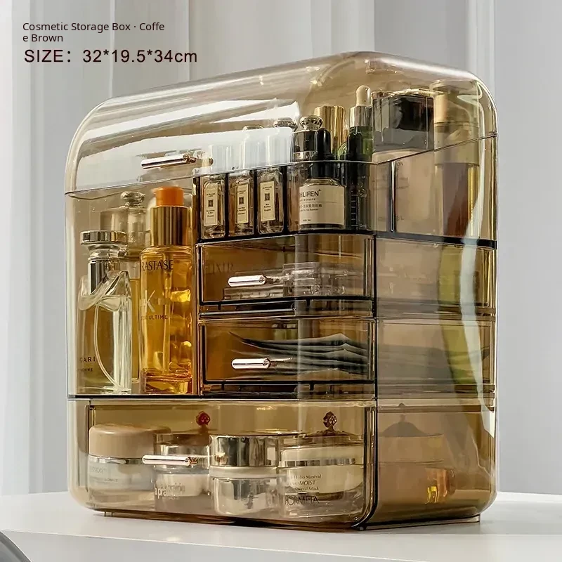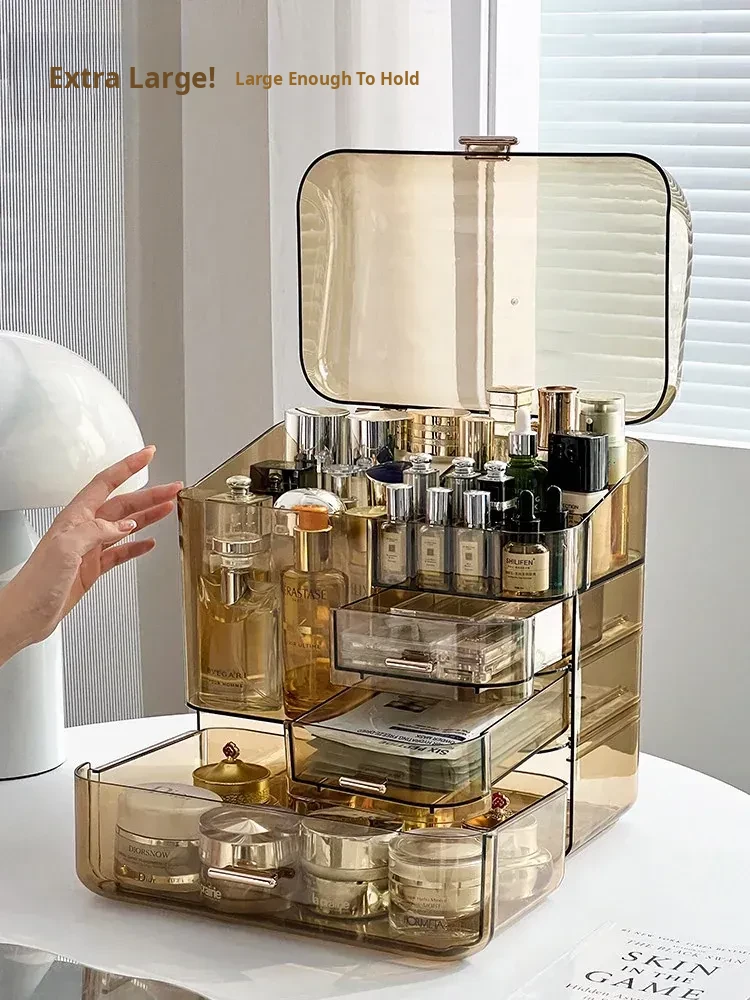 Premium Acrylic Makeup Organizer - Large Capacity Cosmetic Storage Box for Vanity, Dustproof Skincare Display Shelf, Perfect for Neat and Stylish Makeup Arrangements